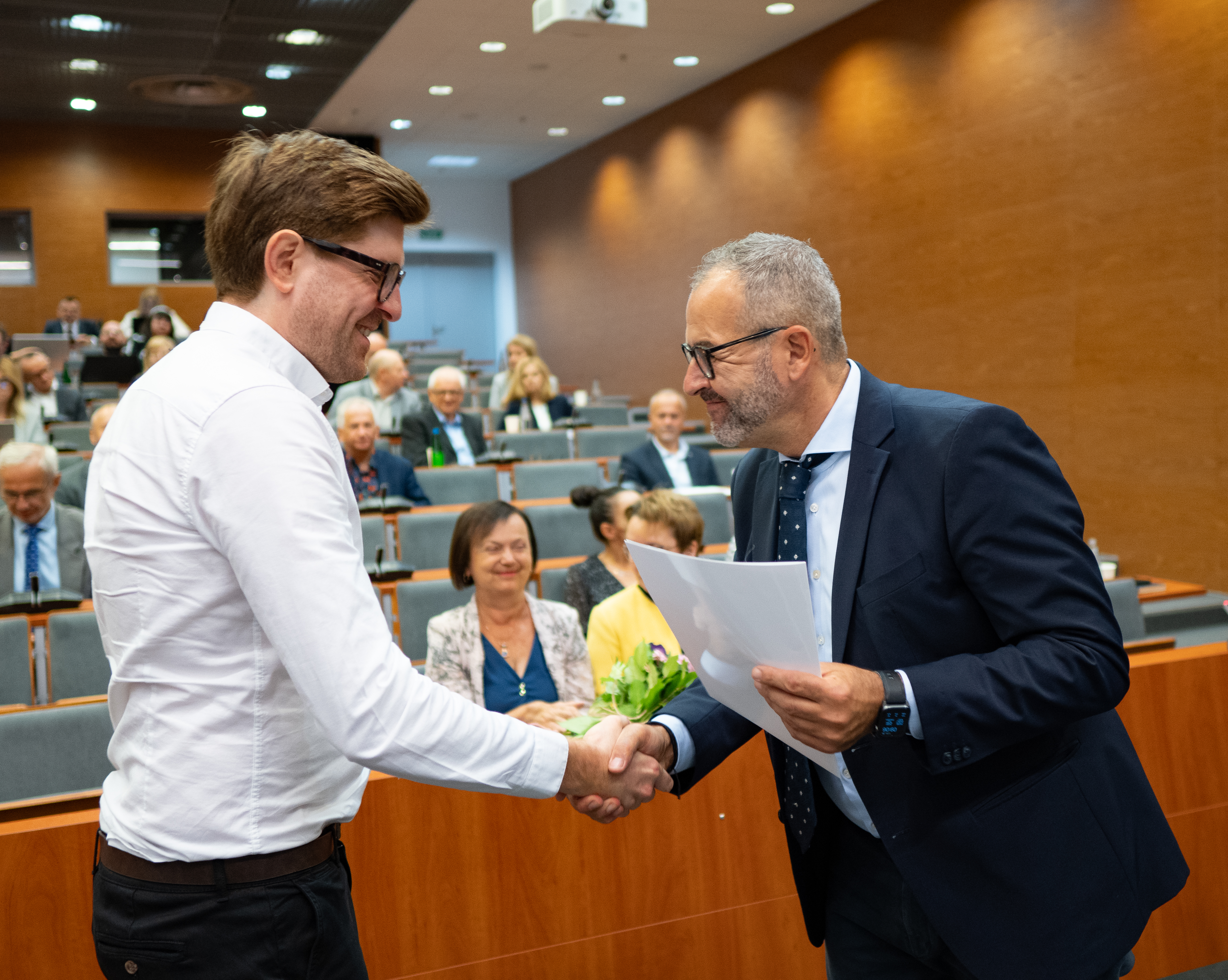 Afterwards, the Rector, accompanied by the Vice-Rector for Research, prof. dr hab. Wiesław Laskowski presented outstanding young scientists with diplomas from the Minister of Education and Science. The laureates were Mateusz Cwaliński, Cezary Kucewicz, Agata Motyka-Pomagruk, Artur Sawicki, Piotr Śliż and Bartosz Wcisło.