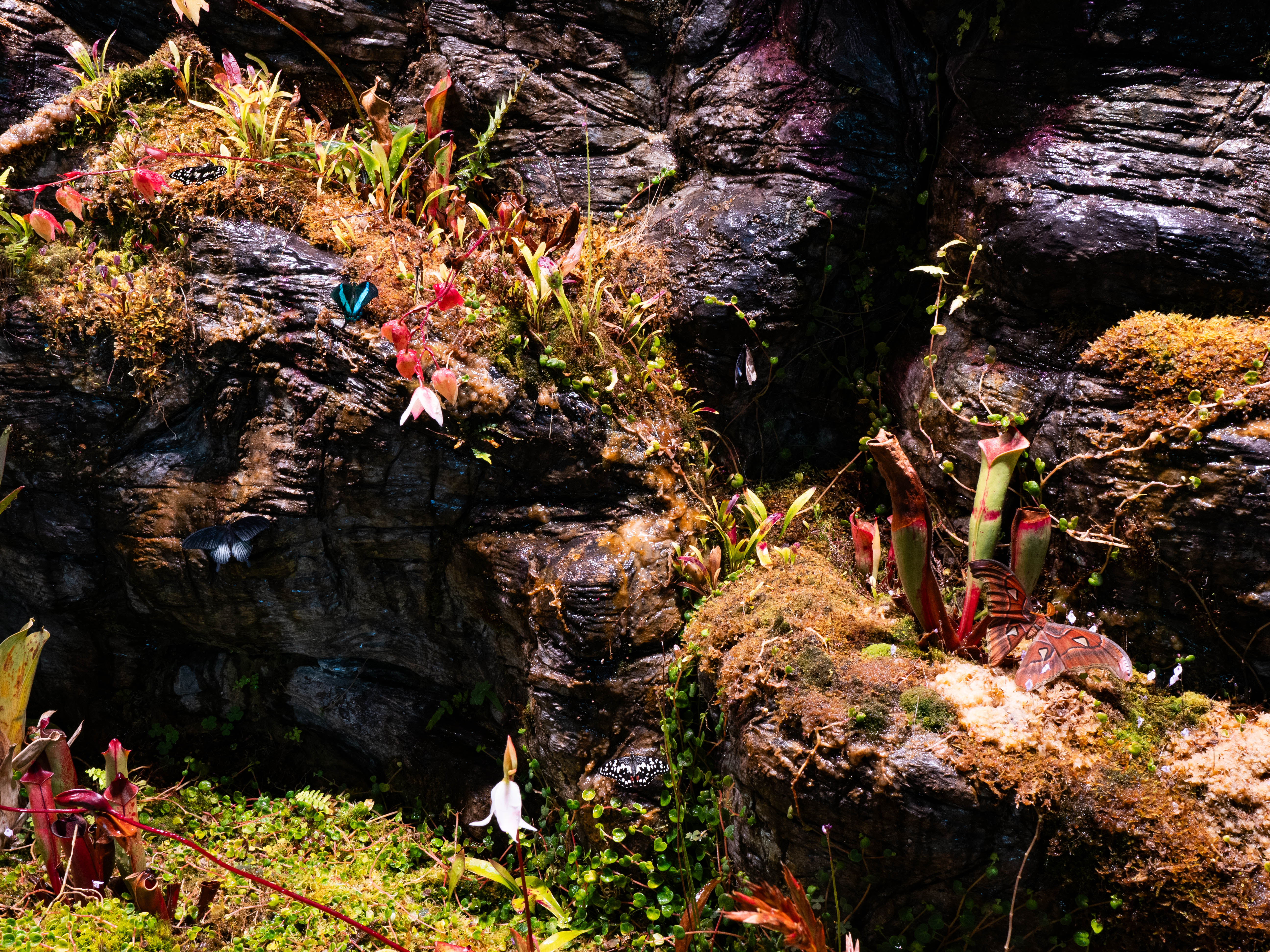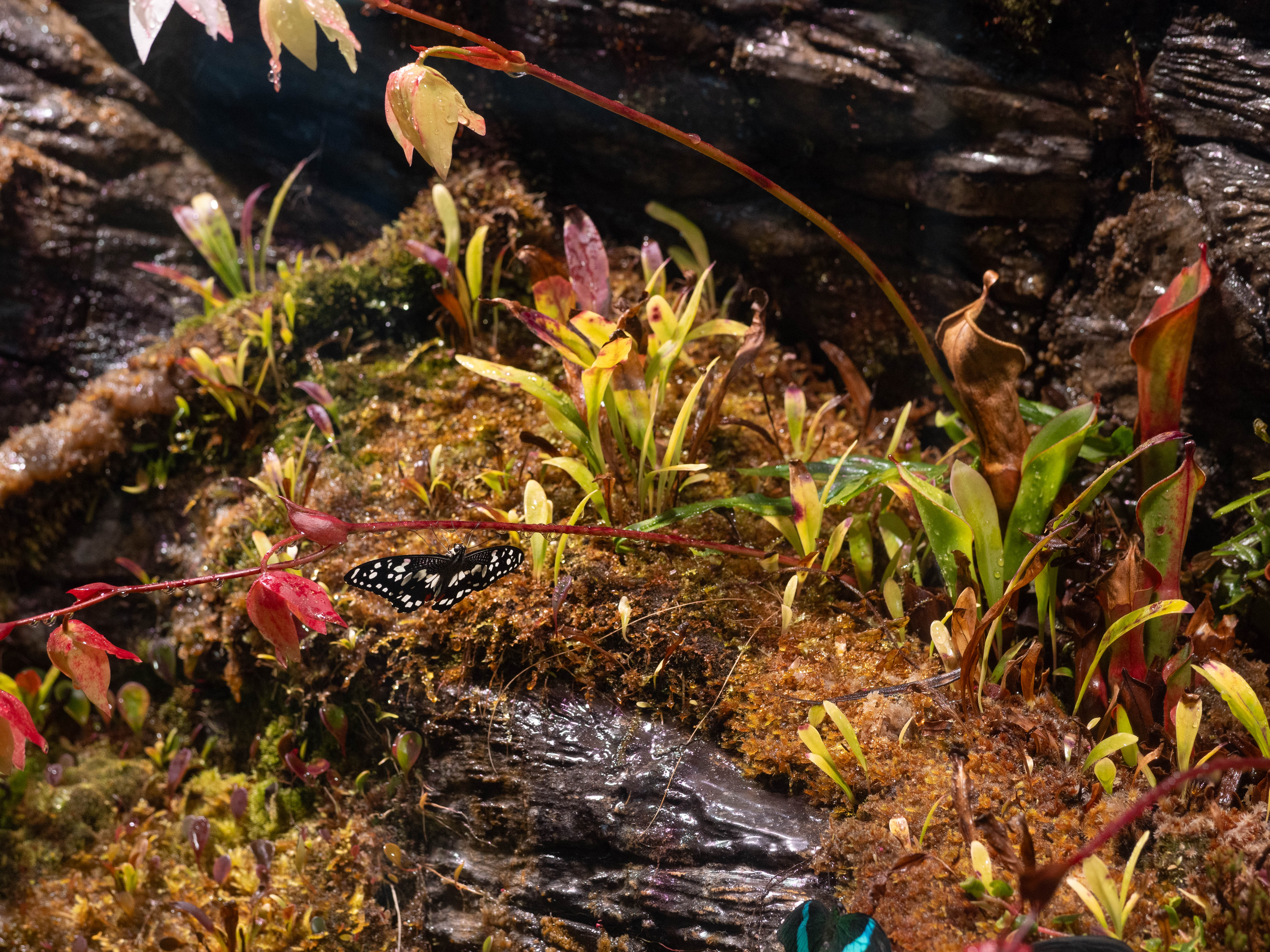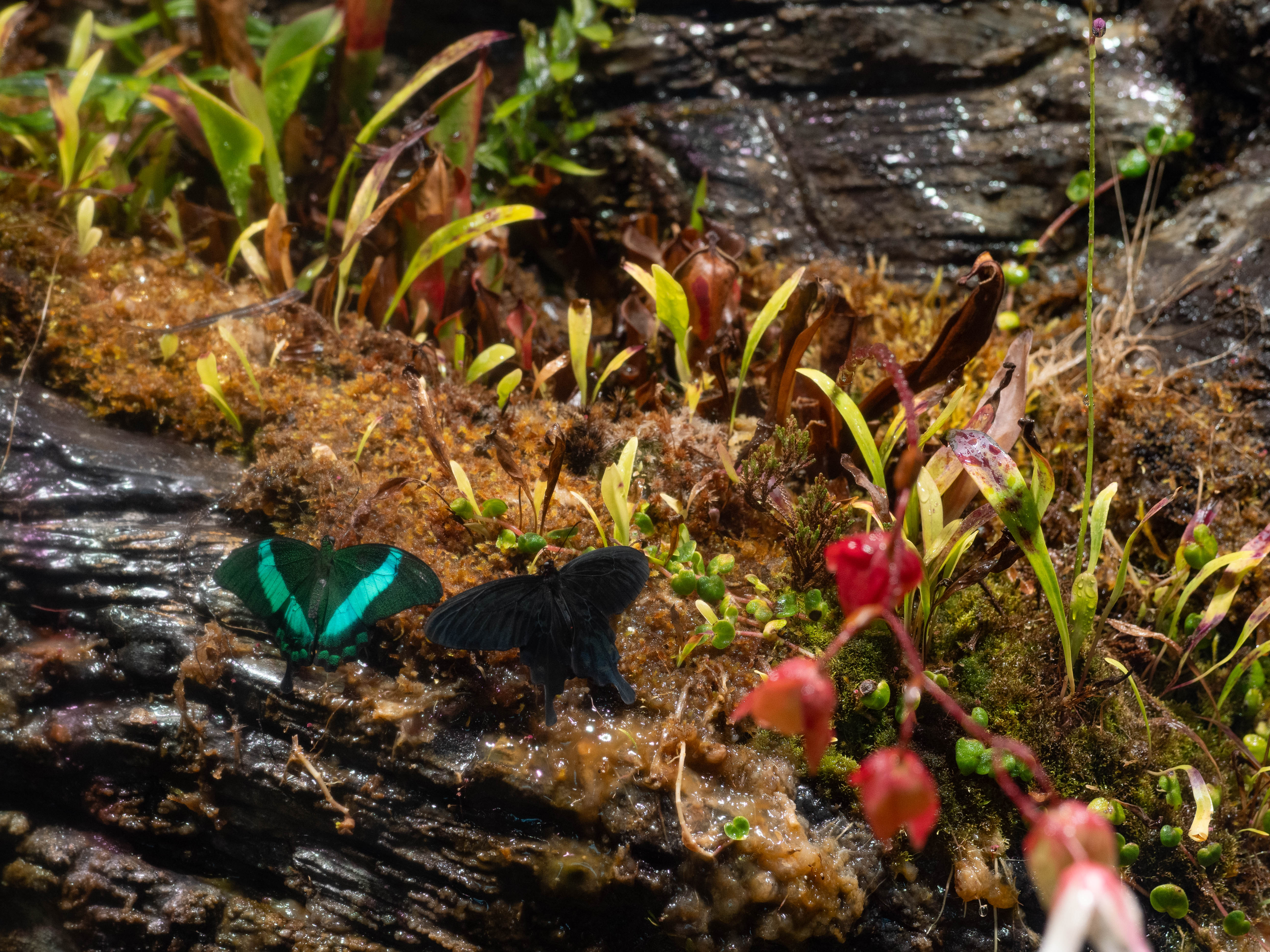 The paludarium on the first floor of the Faculty of Biology is a suitable space for butterflies. The exhibition opened on March 18, 2019, and is intended to mimic the environmental conditions of the Tepui Mountains in the Guiana Highlands of South America. Recreating this site requires providing the plants with adequate light (a long and sunny day of at least 14 hours) and nighttime temperature drops, for example, by using an air conditioner.