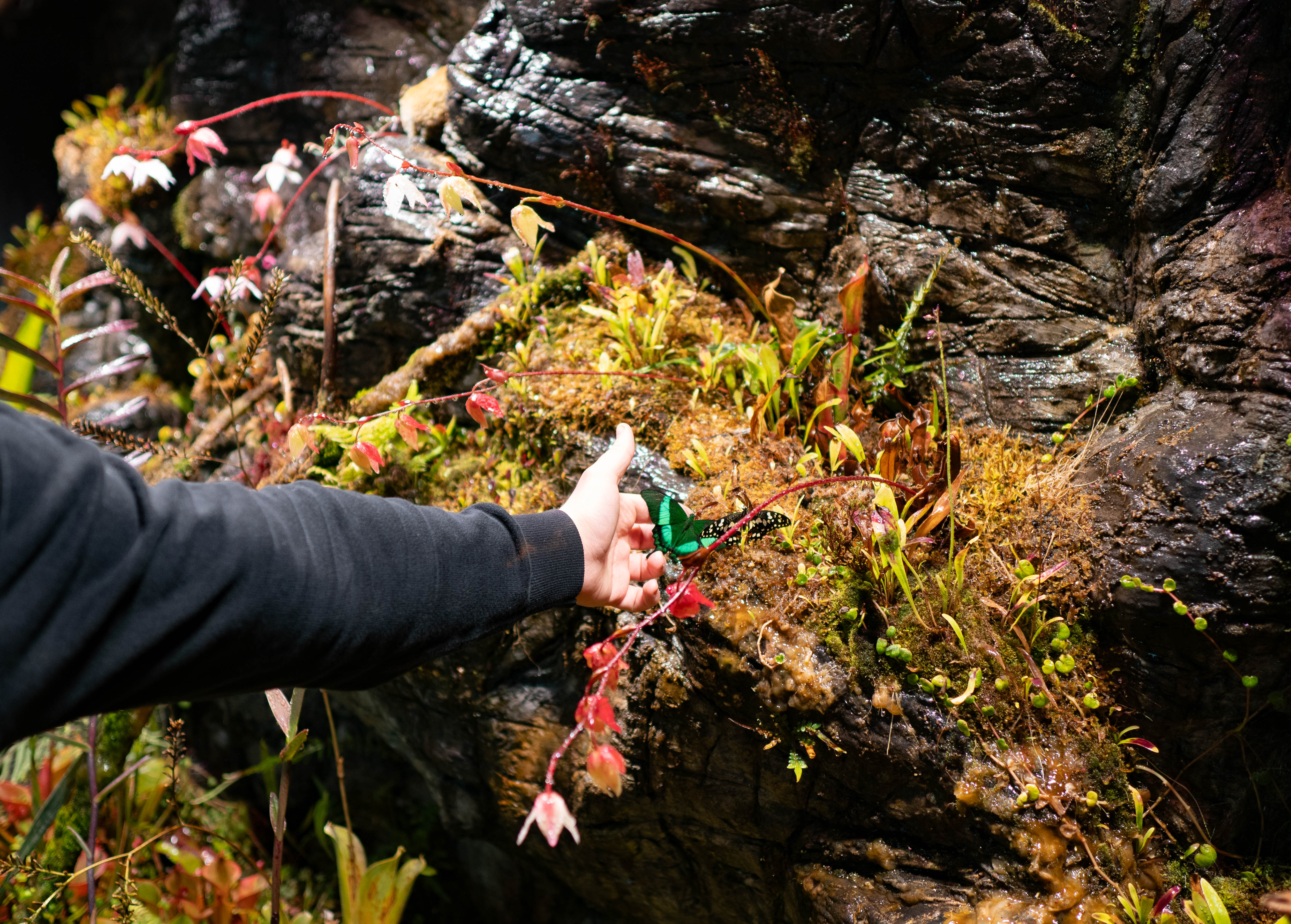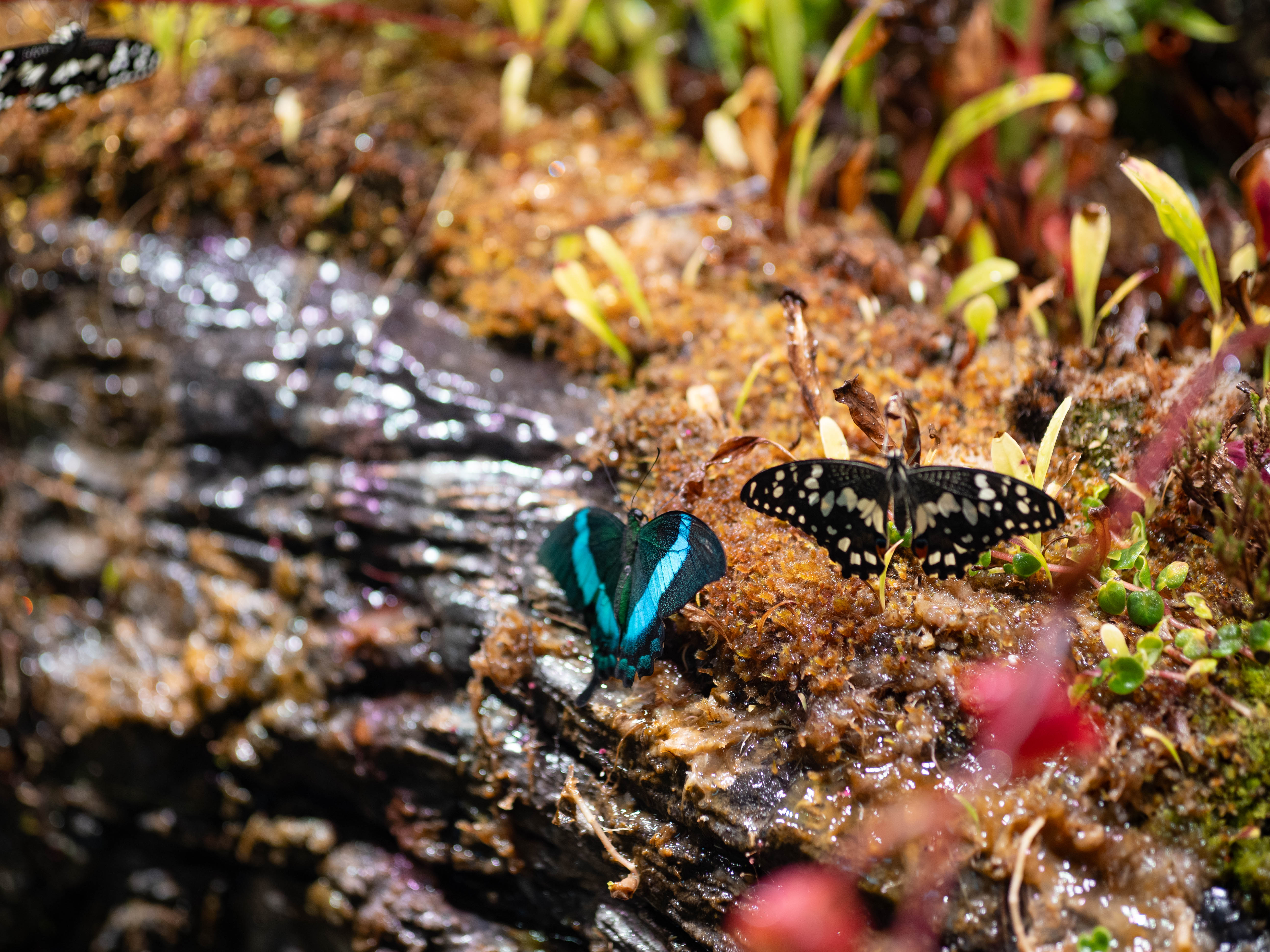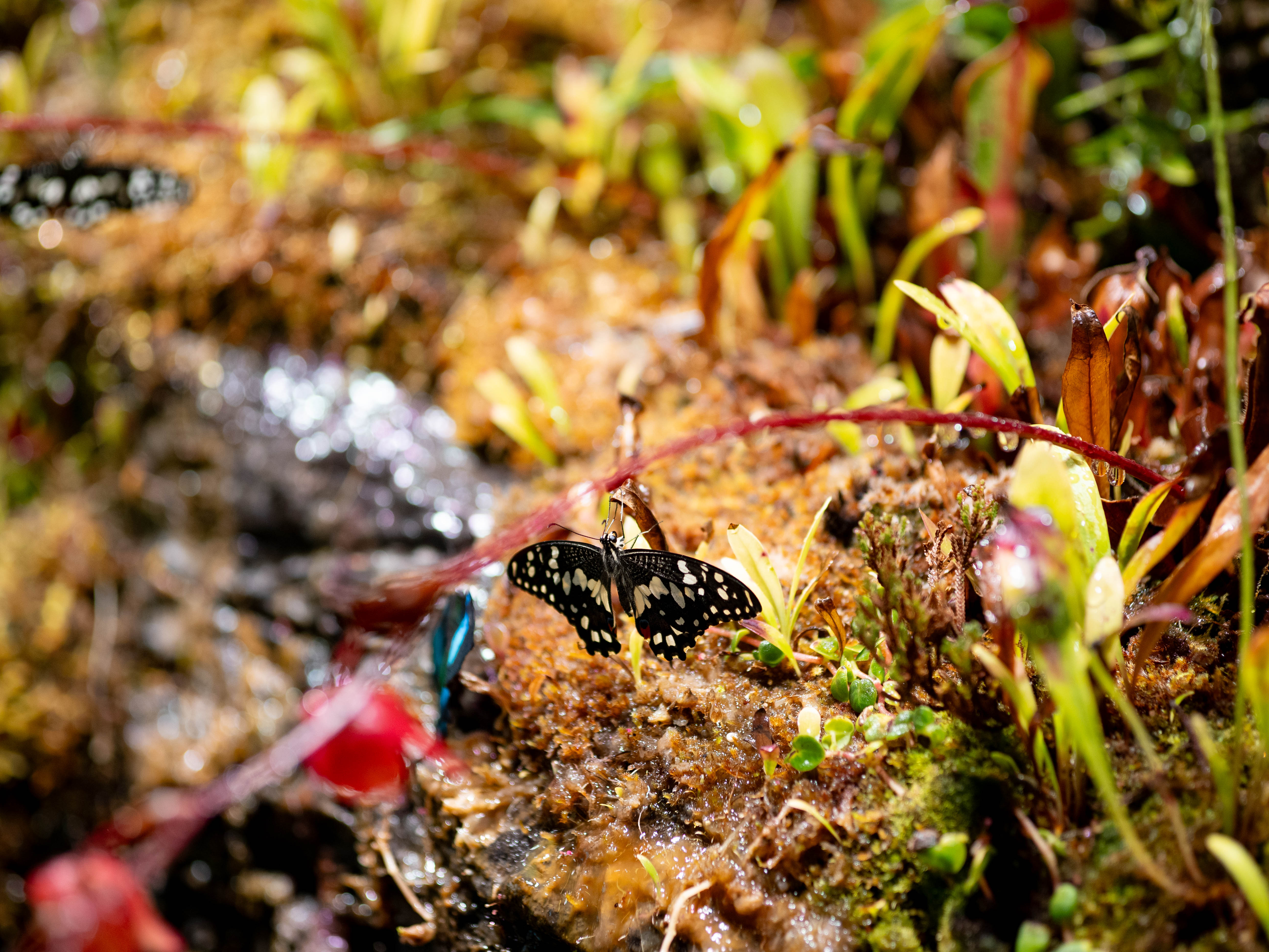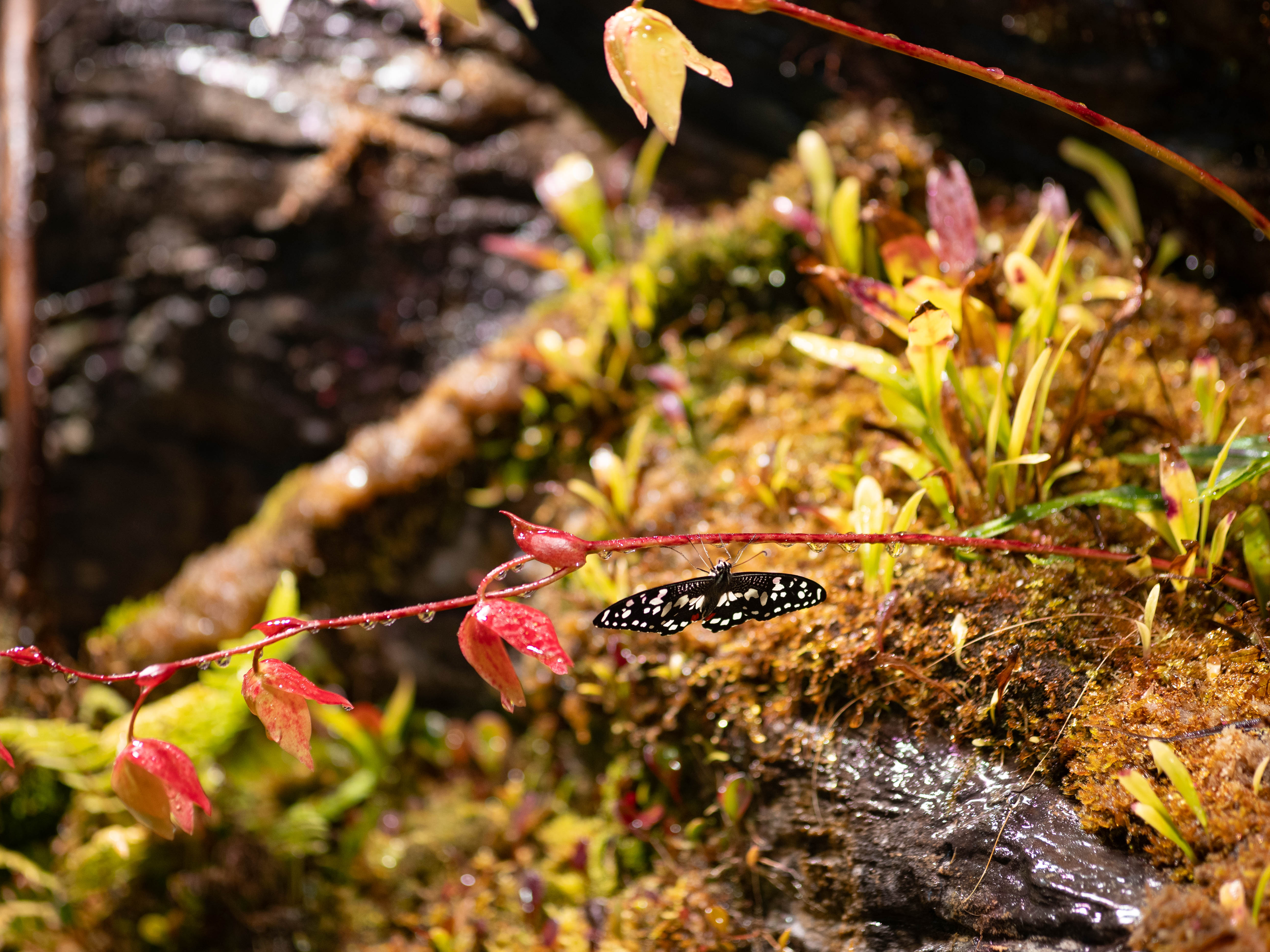 The paludarium on the first floor of the Faculty of Biology is a suitable space for butterflies. The exhibition opened on March 18, 2019, and is intended to mimic the environmental conditions of the Tepui Mountains in the Guiana Highlands of South America. Recreating this site requires providing the plants with adequate light (a long and sunny day of at least 14 hours) and nighttime temperature drops, for example, by using an air conditioner.