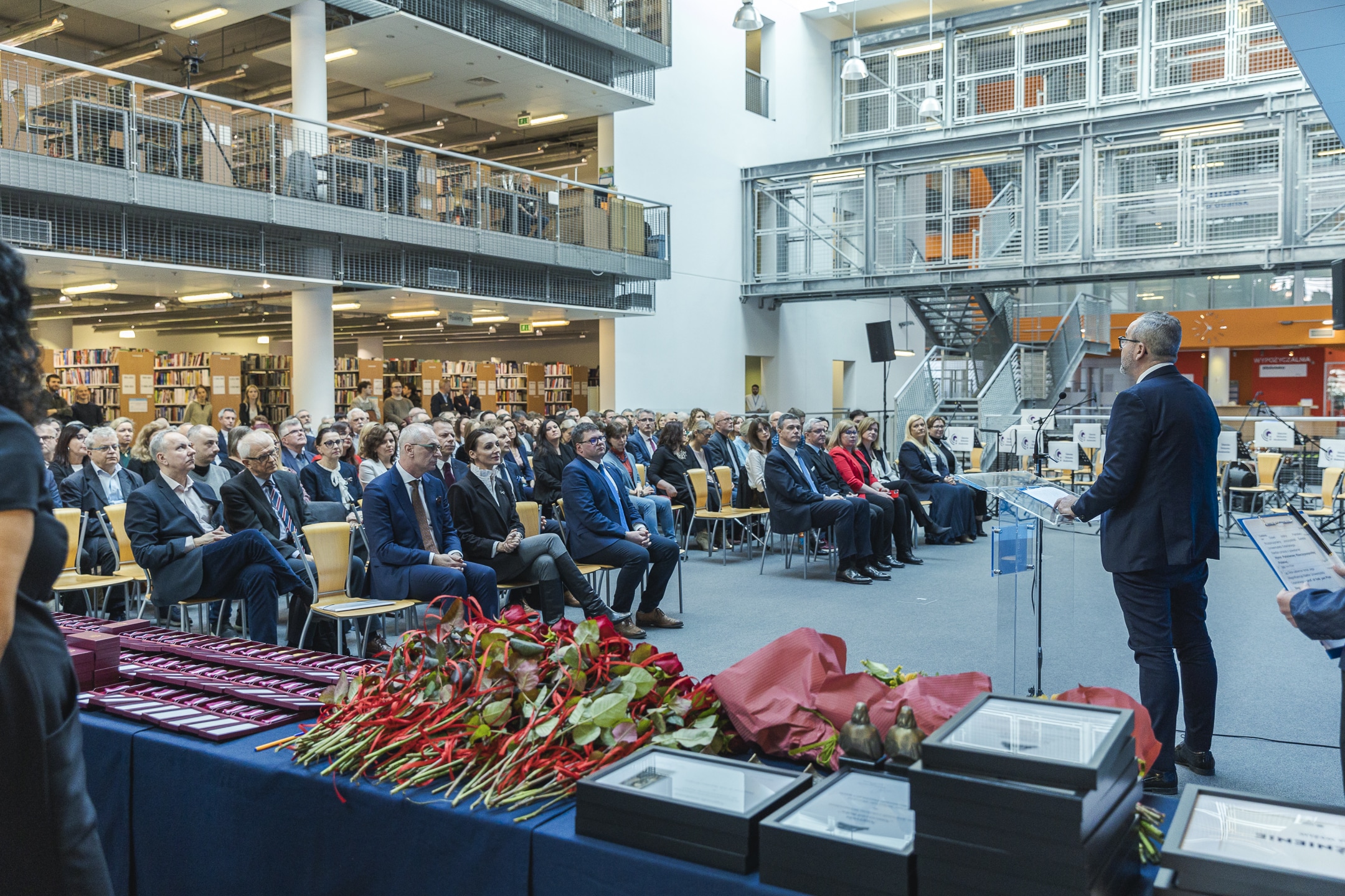 ‘Science is infinite. Each of us scientists carries within us questions that are the leaven for research. We get involved in discussions and polemics that build cooperation or direct us on specific scientific paths,’ with these words, Rector prof. dr hab. Piotr Stepnowski opened the first part of the celebrations of the 54th anniversary of the establishment of the University of Gdańsk. At the University of Gdańsk Library on February 29, state distinctions, the Prof. Karl Taylor Scientific Awards, the Krzysztof Celestyn Mrongowiusz Teacher of the Year Awards and the Young Fahrenheit Competition Awards were presented.