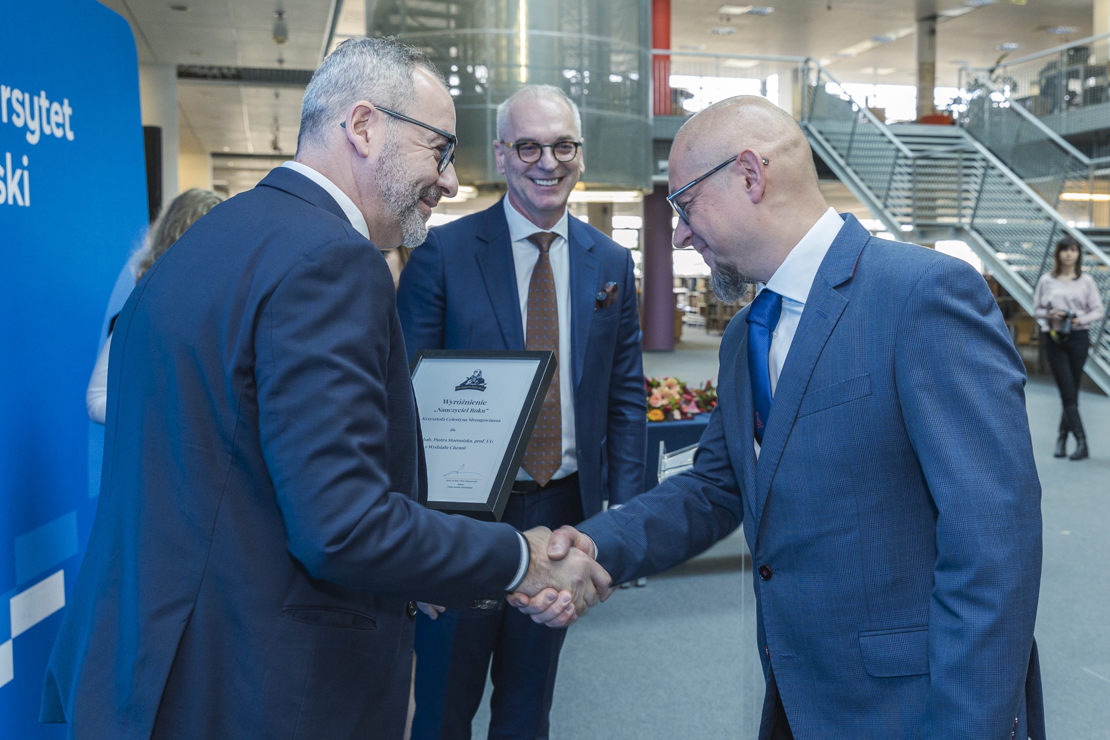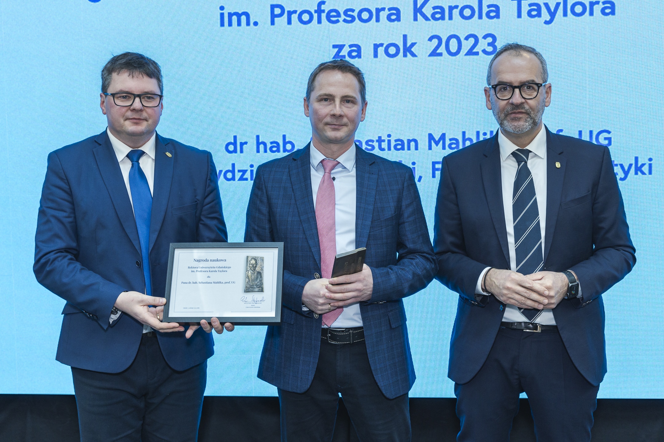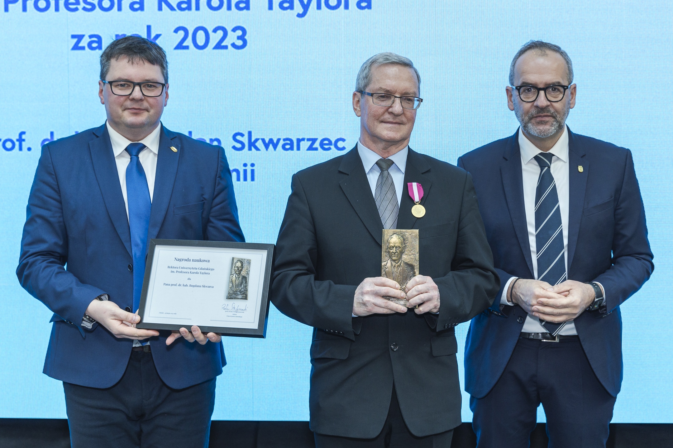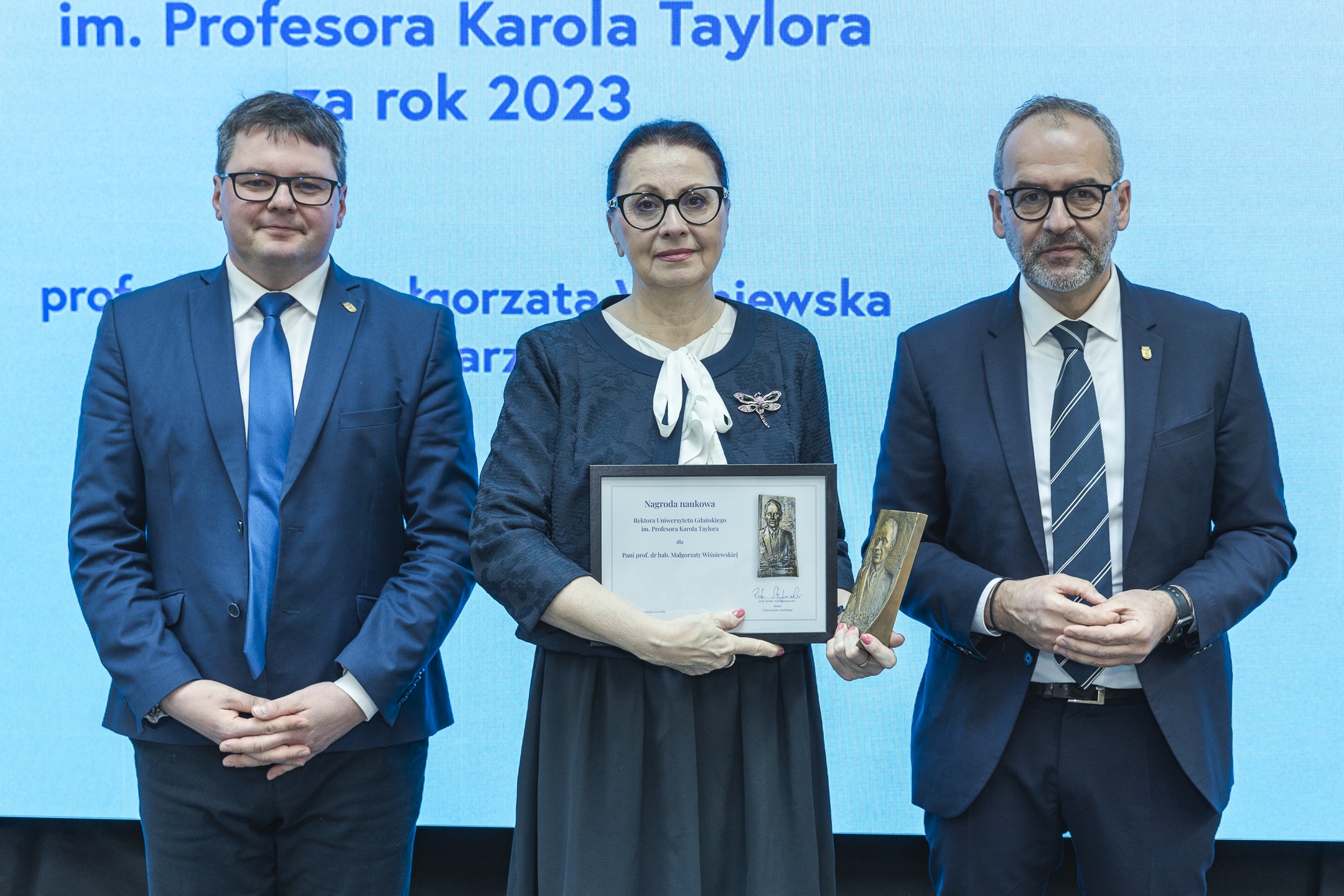 The Prof. Charles Taylor Scientific Awards from the hands of the Vice-Rector for Research, prof. dr hab. Wiesław Laskowski, and the Rector, prof. Piotr Stepnowski were received by:
