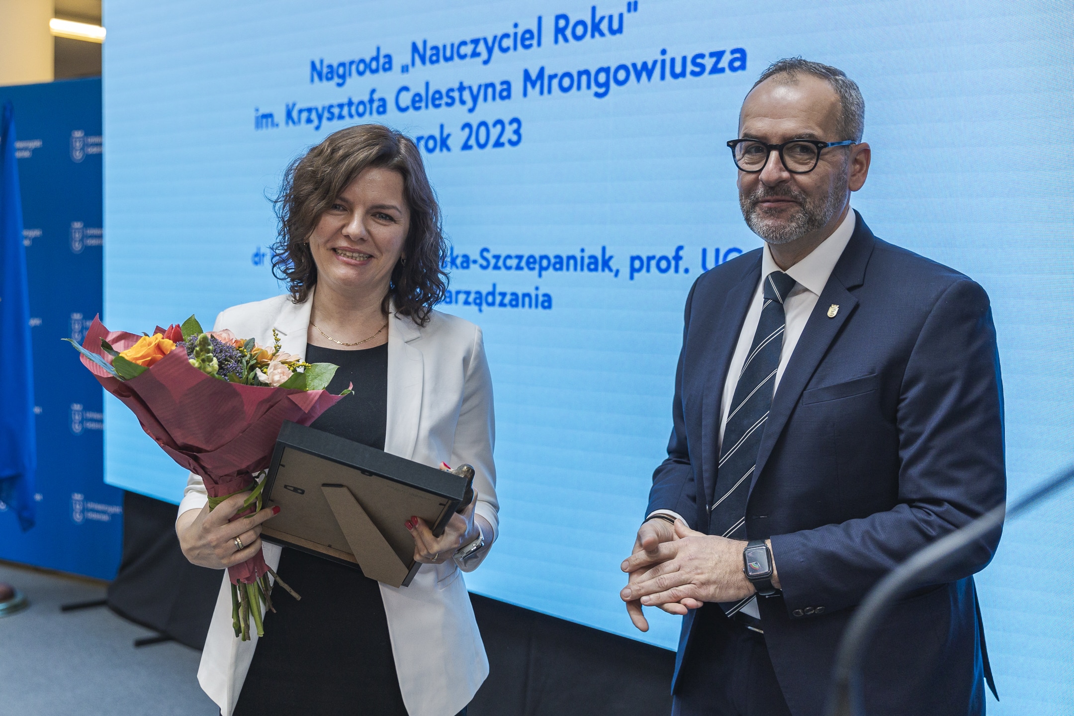 The Krzysztof C. Mrongowiusz Awards for 2023 from the hands of the Vice-Rector for Student Affairs and Education Quality dr hab. Arnold Kłonczyński, prof. UG and Rector prof. Piotr Stepnowski were received by: