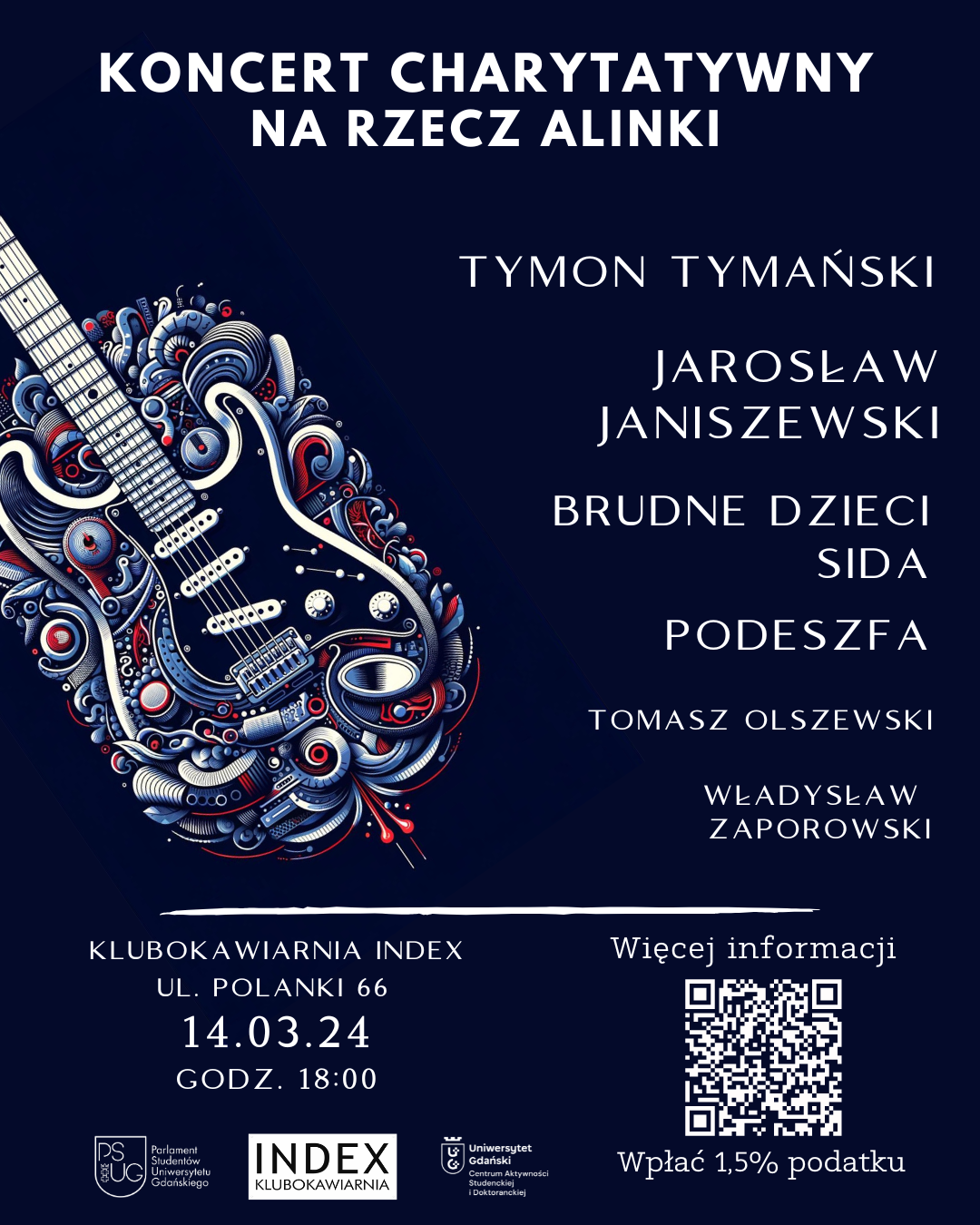 The Center for Student and Doctoral Student Activity UG and the Student Parliament would like to invite you to a special charity concert, which will take place on March 14 (Thursday) at Klubokawiarnia Index, 66 Polanki St. Start at 6:00 p.m.