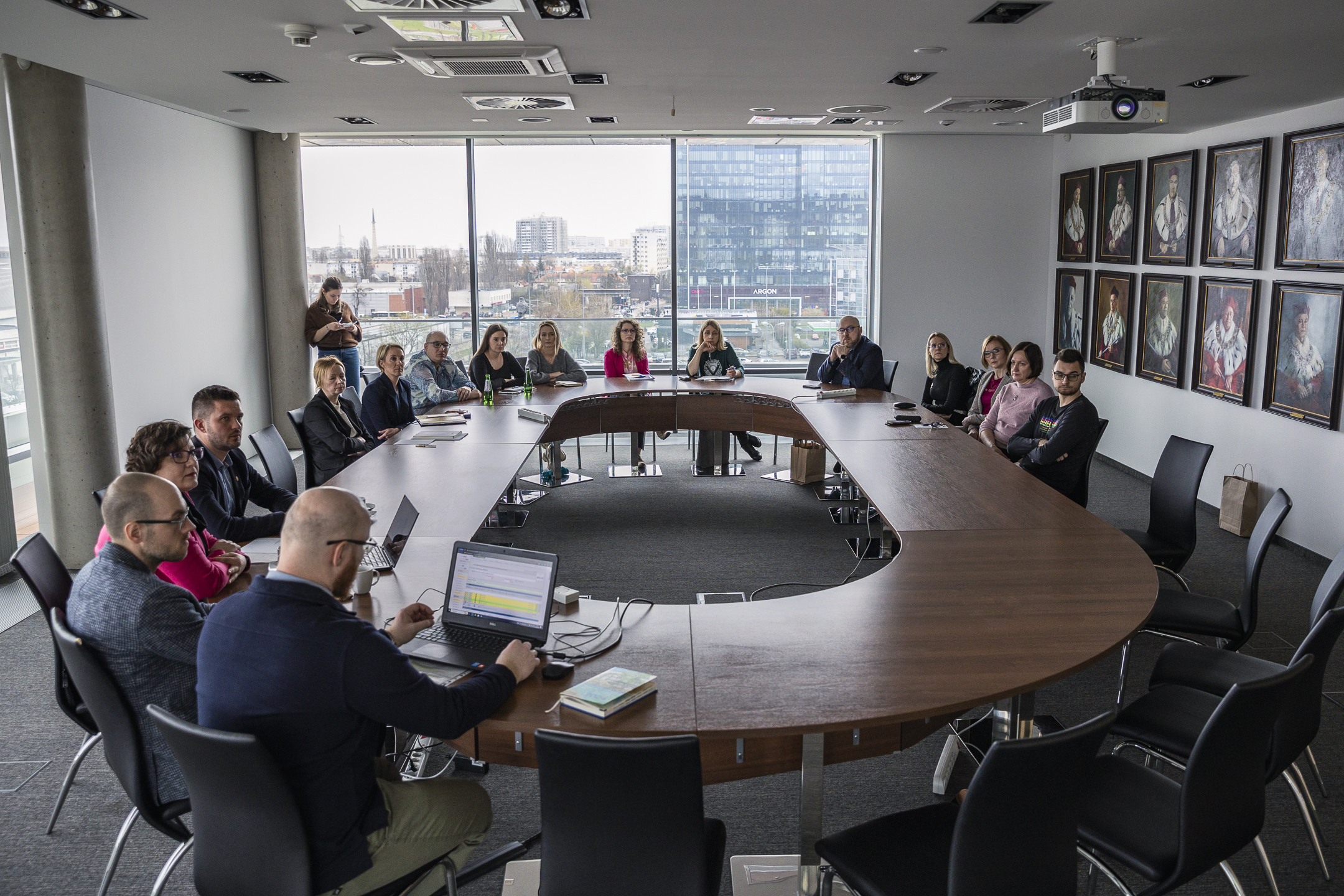 The University of Warmia and Mazury was represented by Vice-Chancellor for Administrative Affairs Adriana Faraś-Bąk, Bursar Agnieszka Choma-Meus, Deputy Bursar for Finance and Accounting Beata Wolak, Chancellery Coordinator Katarzyna Kuźmińska, Rector's Office Manager Weronika Turolska and employee Paulina Borcun. representatives of the UWM Archives: Anna Wójcicka and Barbara Dąbkowska-Sówka, and representatives of the UWM Information Centre: Andrzej Rydzewski, Marcin Grabowski, and Dawid Podhajski.