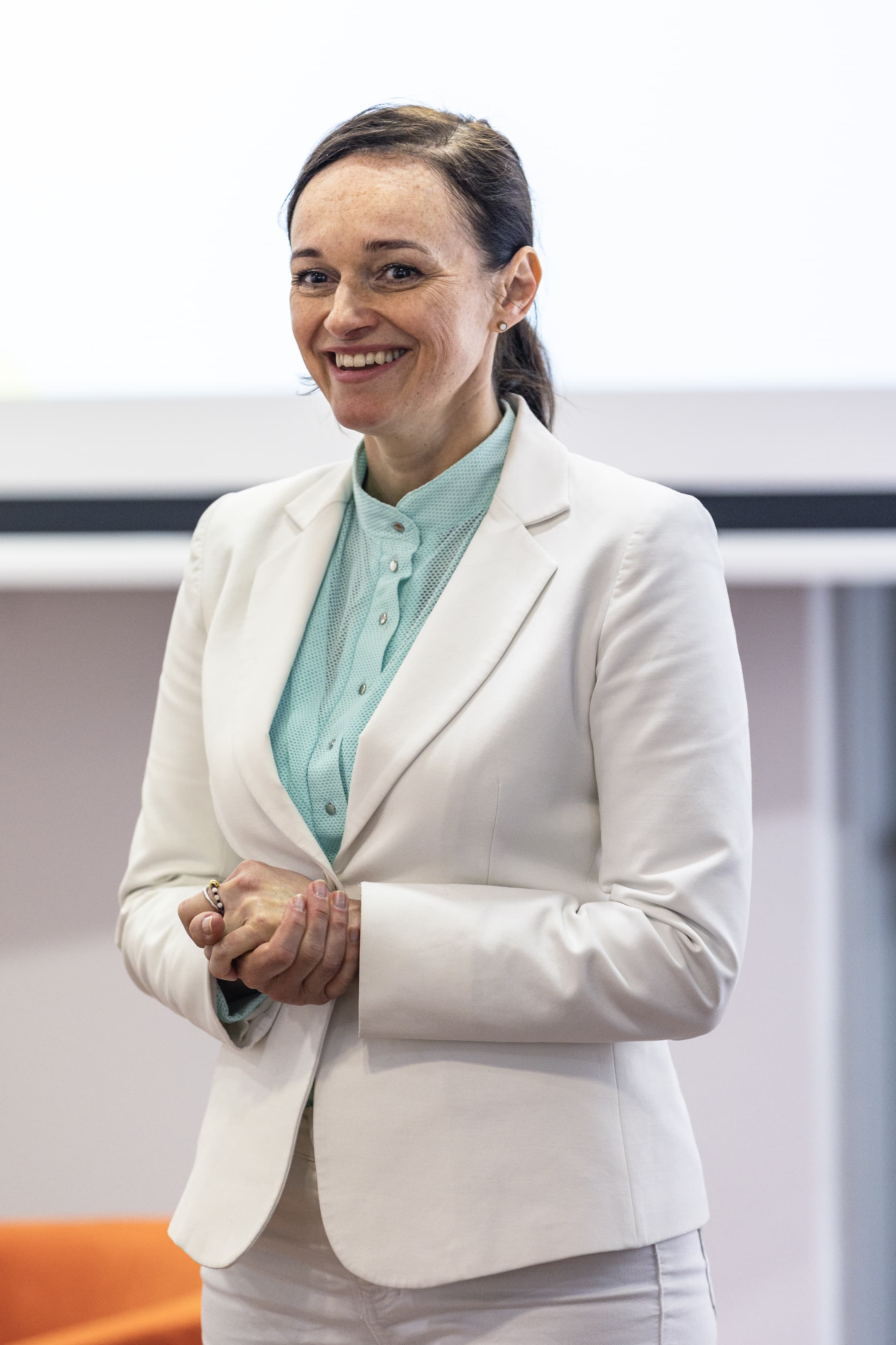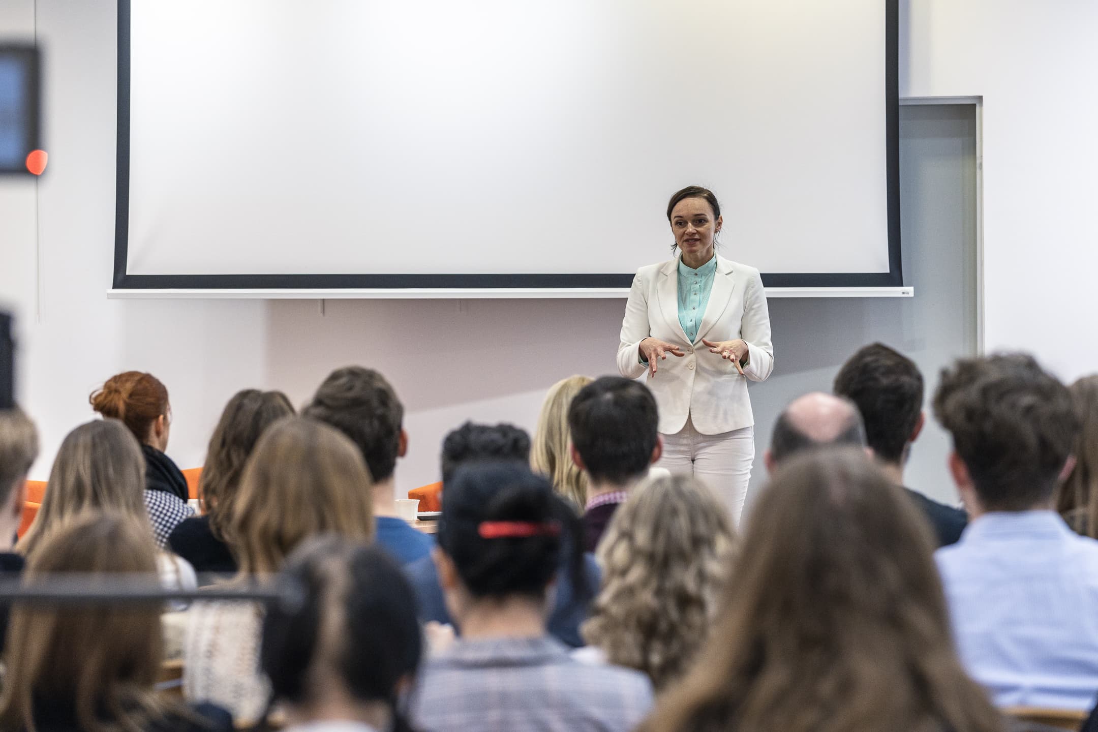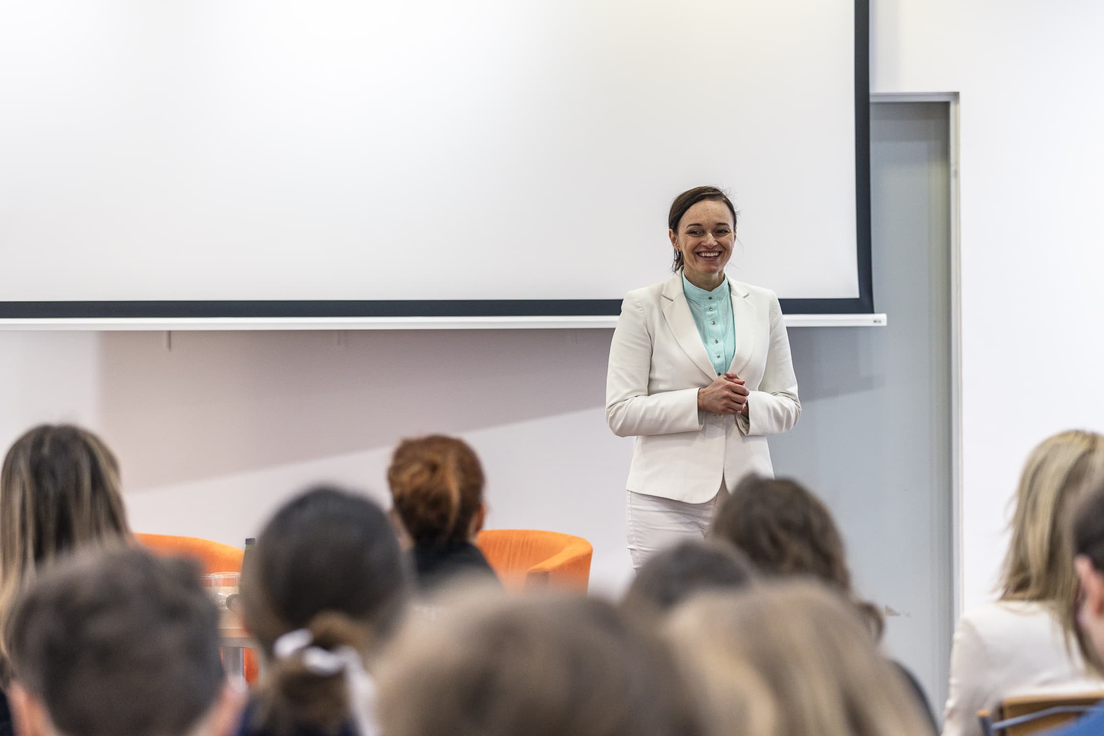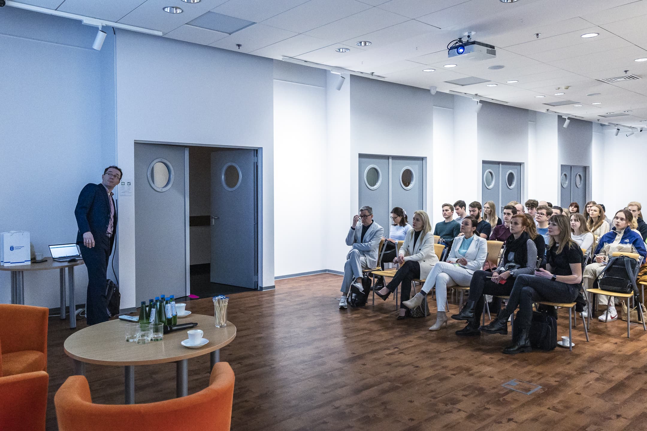 The Vice-Rector for Cooperation and Development, dr hab. Sylwia Mrozowska, prof. UG, spoke first. ‘Today's event is a kind of kick-off meeting for a new initiative at the University, coordinated by Ms Izabela Disterheft. Namely, we would like to stimulate the entrepreneurial spirit of our students and bring them into contact with people who have a wealth of experience in entrepreneurship already at the university level. At today's meeting, we have quite a diverse group of speakers, precisely so that we can get to know your expectations as well. We would like to hear from you and we would like you to tell us what you are most interested in after the presentations. We want you to learn how to build your career, CV or portfolio of competencies so that you end up in the labour market where you dream of being,’ said dr hab. Sylwia Mrozowska, prof. UG, to the students. ‘We want you to listen to the speakers, listen to their stories. It seems to me that showing how varied career paths can be and what things you can do after different studies will allow you to open up to interdisciplinarity,' she added.