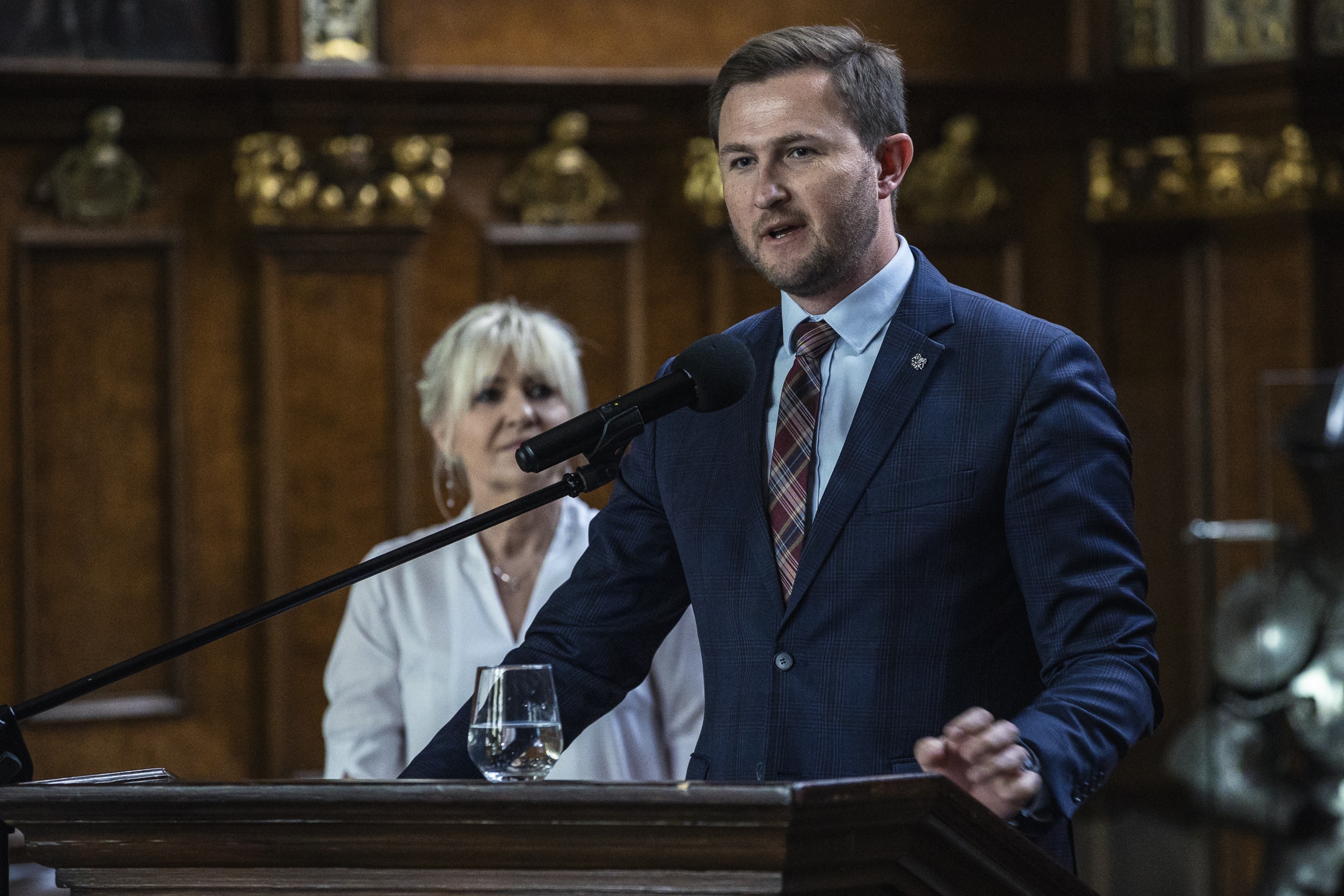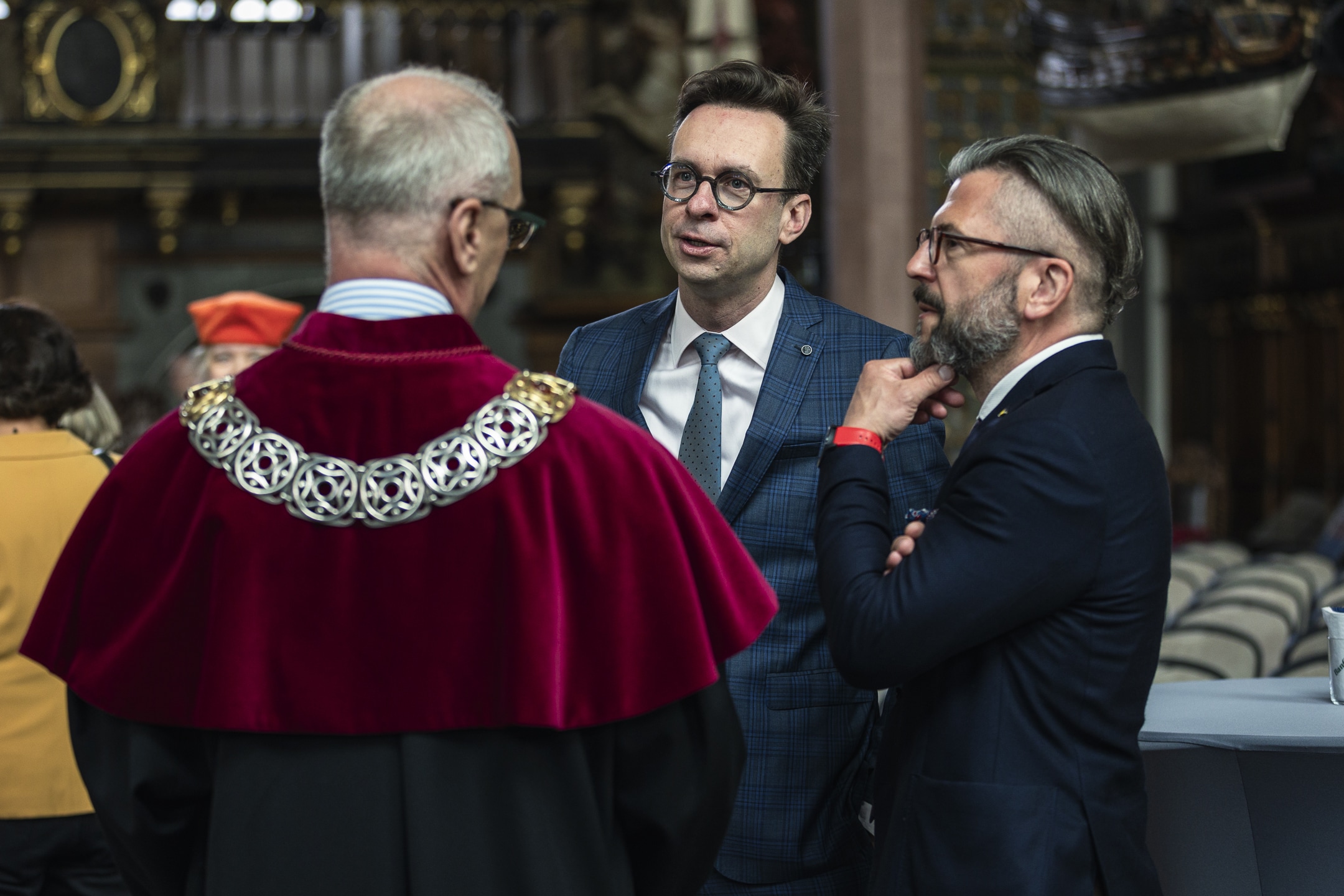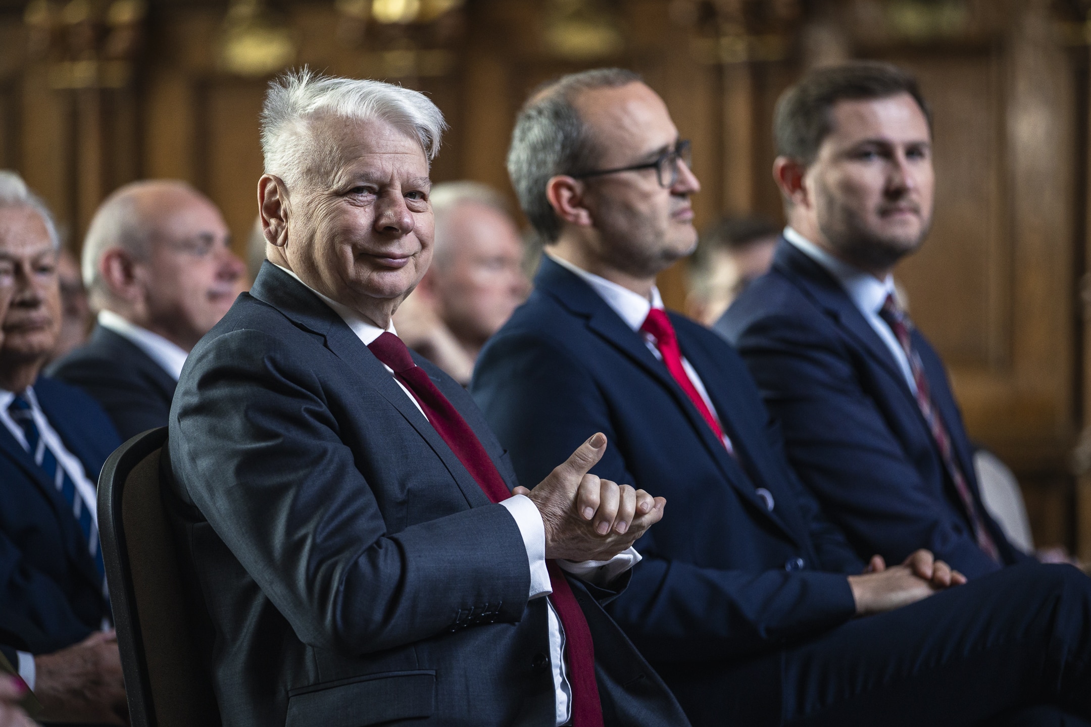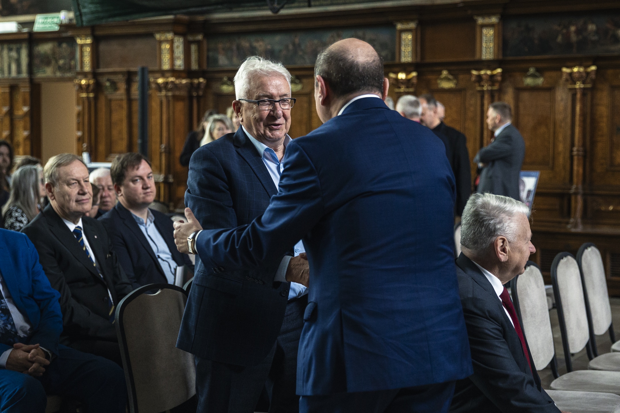 On behalf of the Mayor of the City of Gdańsk, Aleksandra Dulkiewicz, her deputy Piotr Grzelak congratulated the new doctor honoris causa of the University of Gdańsk. In her congratulatory letter, the Mayor expressed particular thanks for the professor's promotion of European values and the project of a common Europe. Then, on behalf of the Pomeranian Voivode Beata Rutkiewicz, the floor was taken by the Deputy Voivode Emil Rojek, who thanked prof. Krzysztof Pomian for all his scientific, teaching, and museum activities.