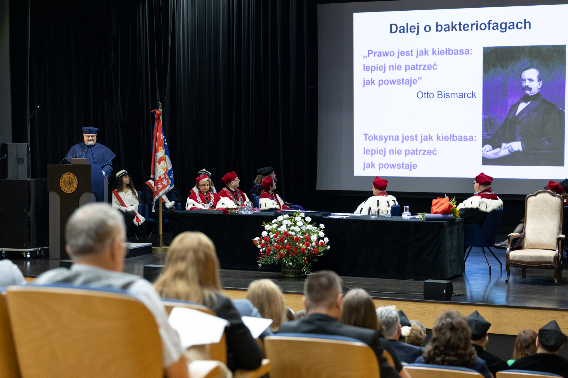 Prof. dr hab. Grzegorz Węgrzyn has been awarded an honoris causa doctorate for the second time. This highest academic distinction was awarded to the professor by the Senate of the University of Rzeszów in recognition of his outstanding scientific achievements and his contribution to the development of science.