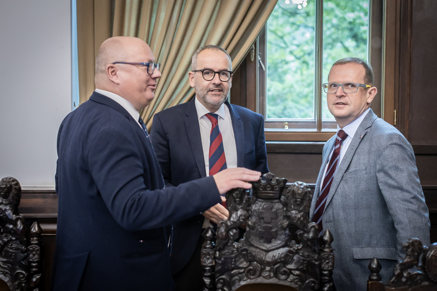 The scientific and development potential of Gdańsk universities and the increasingly close cooperation within the framework of the federalisation of Fahrenheit Universities was presented by the Rector of UG prof. dr hab. Piotr Stepnowski during a meeting in the series ‘Key development challenges of Pomerania’. On July 2nd, representatives of the Polish parliament, administrative and local authorities of the Pomeranian Voivodeship, science and industry gathered in the Senate Room of the Gdańsk University of Technology to discuss the most important initiatives for the development of the region.