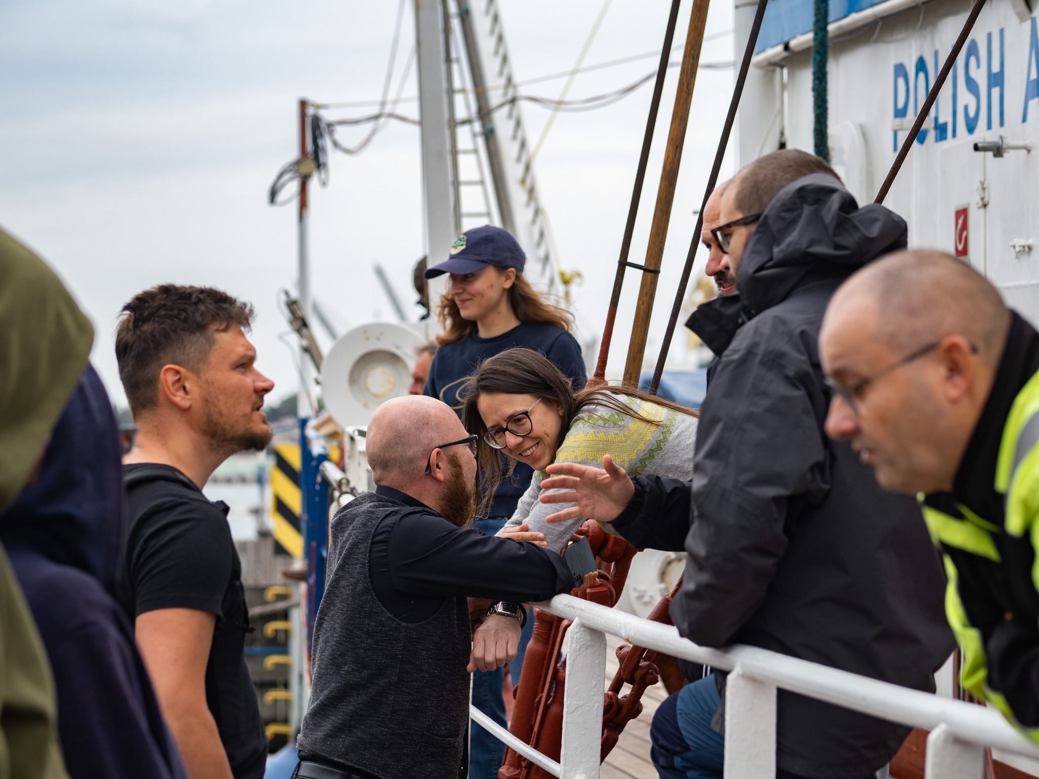 The crew and the research team from IO PAS were welcomed by, among others, dr Justyna Kobos from the Faculty of Oceanography and Geography, who participated in the BaltArctic Research Cruise. Similarly, IO PAS representatives welcomed the UG ship r/v Oceanograf, which returned from the BaltArctic Research Cruise on July 4. It is worth mentioning that the r/v Oceania carried the remaining samples needed for the international cruise's research.