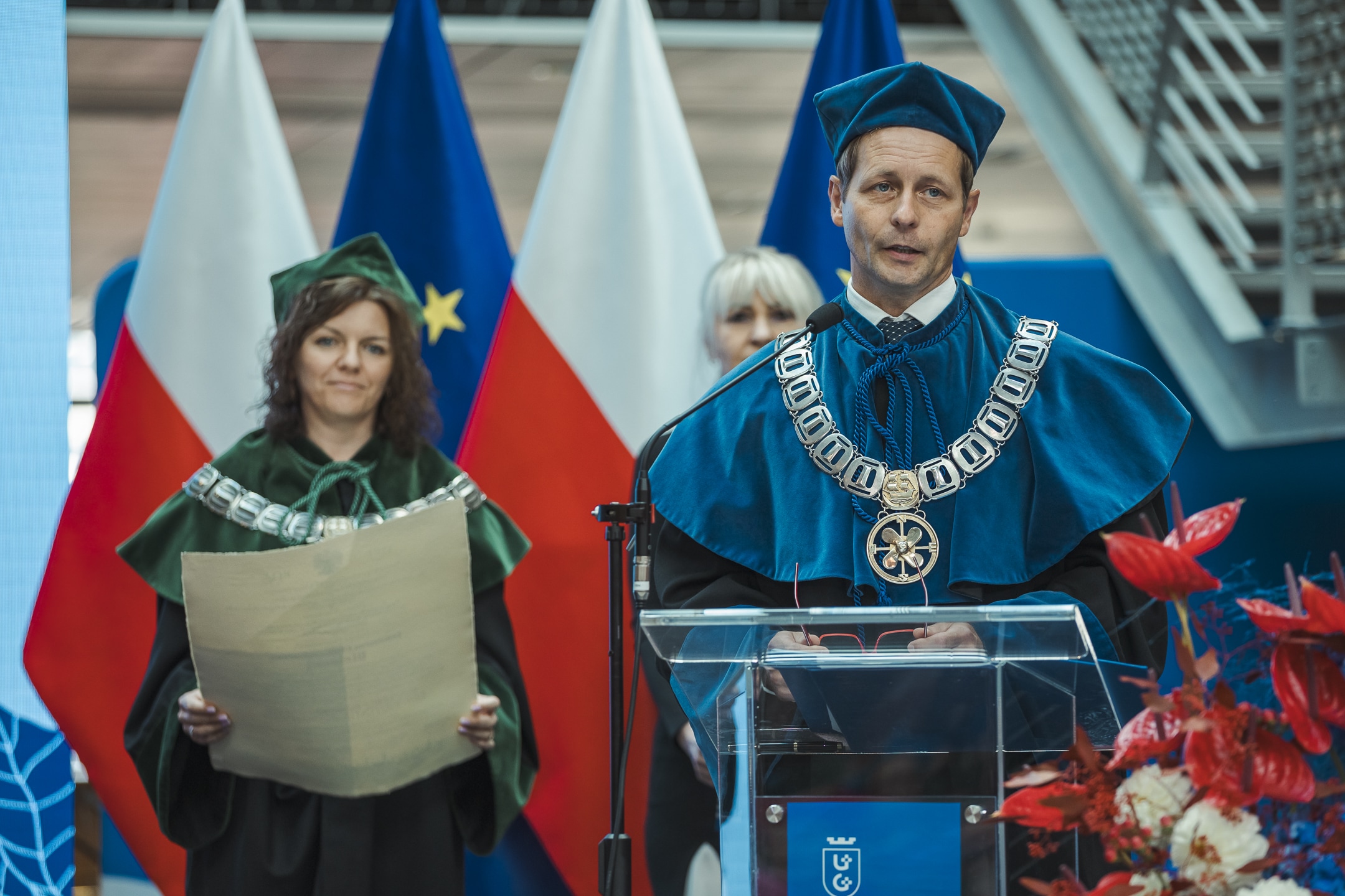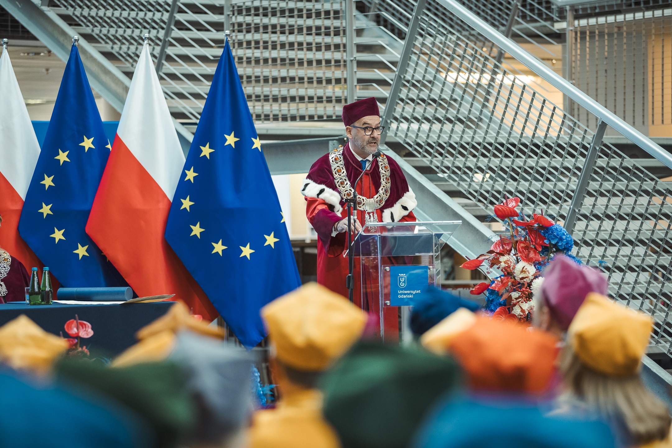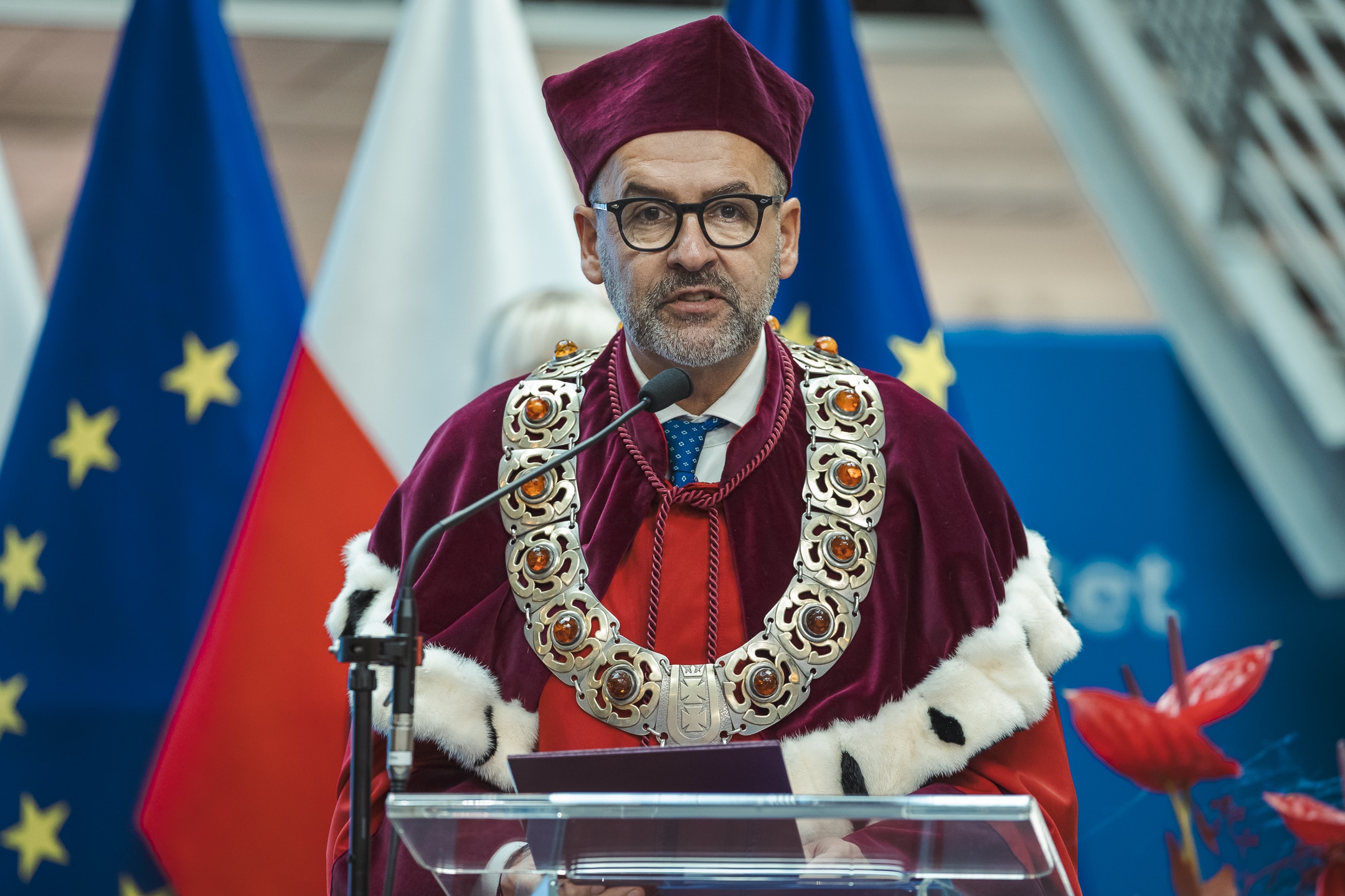 ‘I would like to open the ceremonial meeting of the Senate of the University of Gdańsk on the occasion of the inauguration of the academic year 2024/2025 - began the Rector of the University of Gdańsk, prof. dr hab. Piotr Stepnowski before he welcomed the numerous guests gathered. In his summary of the achievements of the last academic year, the Rector of the University of Gdańsk drew attention to the high position of the University of Gdańsk in national and international rankings, such as the ‘Perspektywy’ Foundation's Ranking of Higher Education Institutions and the Times Higher Education World University Rankings, which take into account, among other things, the implementation of sustainable development goals. He emphasised the role of internationalisation in the university's development strategy: ‘Without internationalisation understood in every possible aspect - joint education, joint research, academic exchange, joint faculties, international alliances binding the idea together - there are no modern, thoroughly European academic communities, no universities, no modern higher education institutions.’