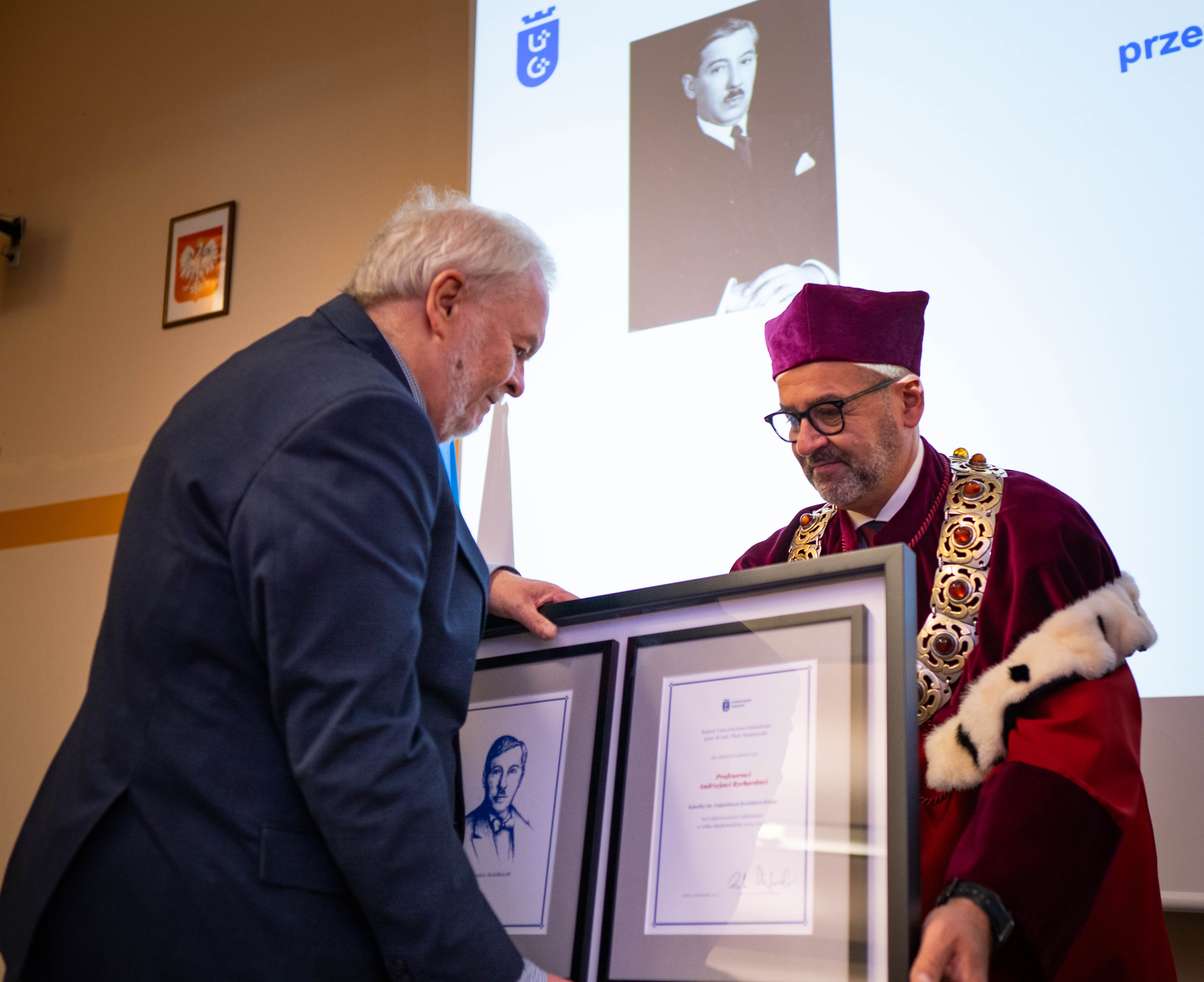 ‘I am moved because I am going back to my roots,’ expressed prof. A. Rychard moments after the ceremony of taking over the Eugeniusz Kwiatkowski Named Chair. ‘I am from here, I am from Gdańsk,' he added, citing an example of a common family place with prof. M. Harciarek. ‘Thank you for this extremely tangible expression of what I will be doing this year. I am very much counting on the academic community, which I see as extremely dynamic. There is a spirit here: the spirit of Gdańsk, as it should be.’