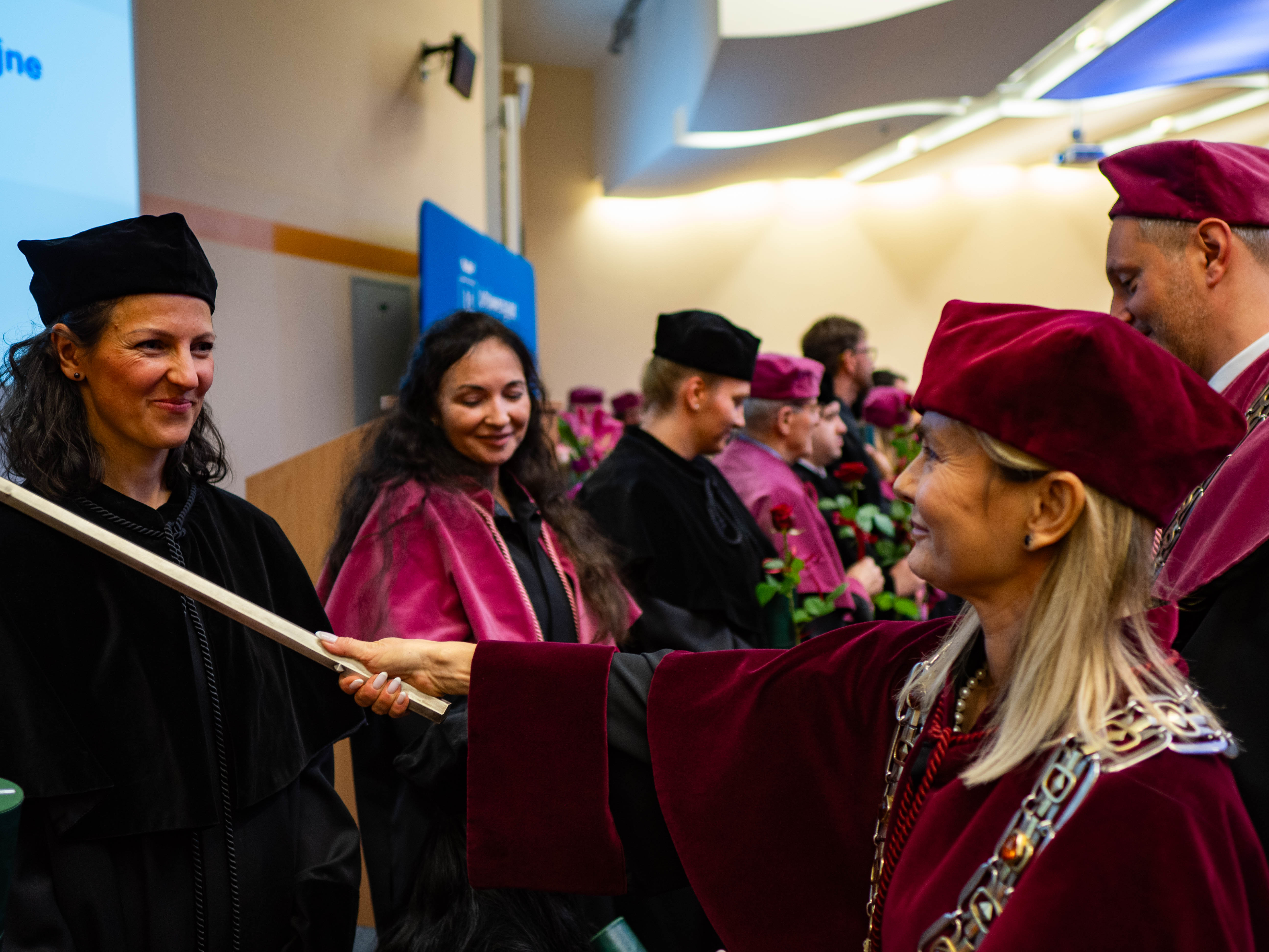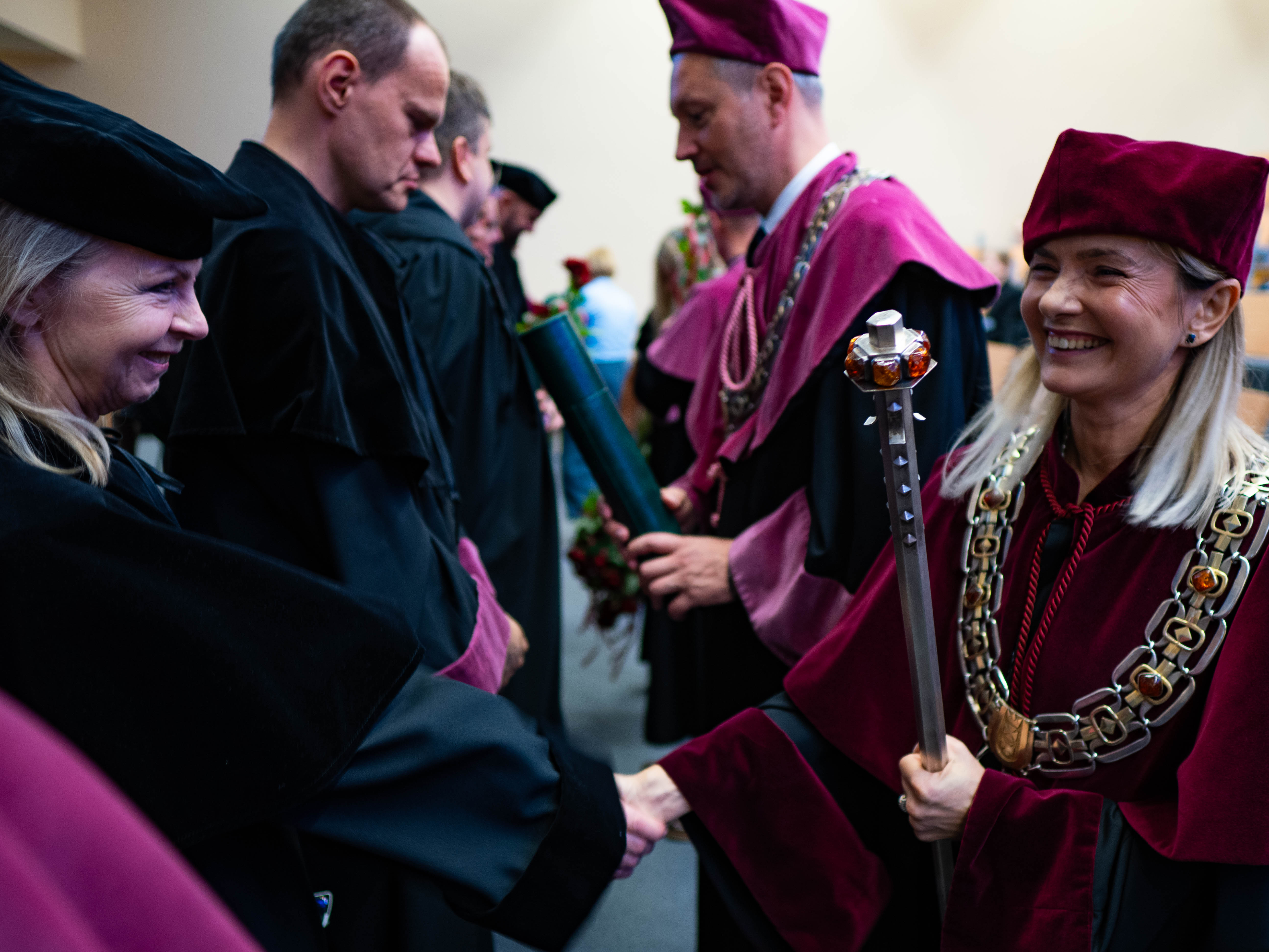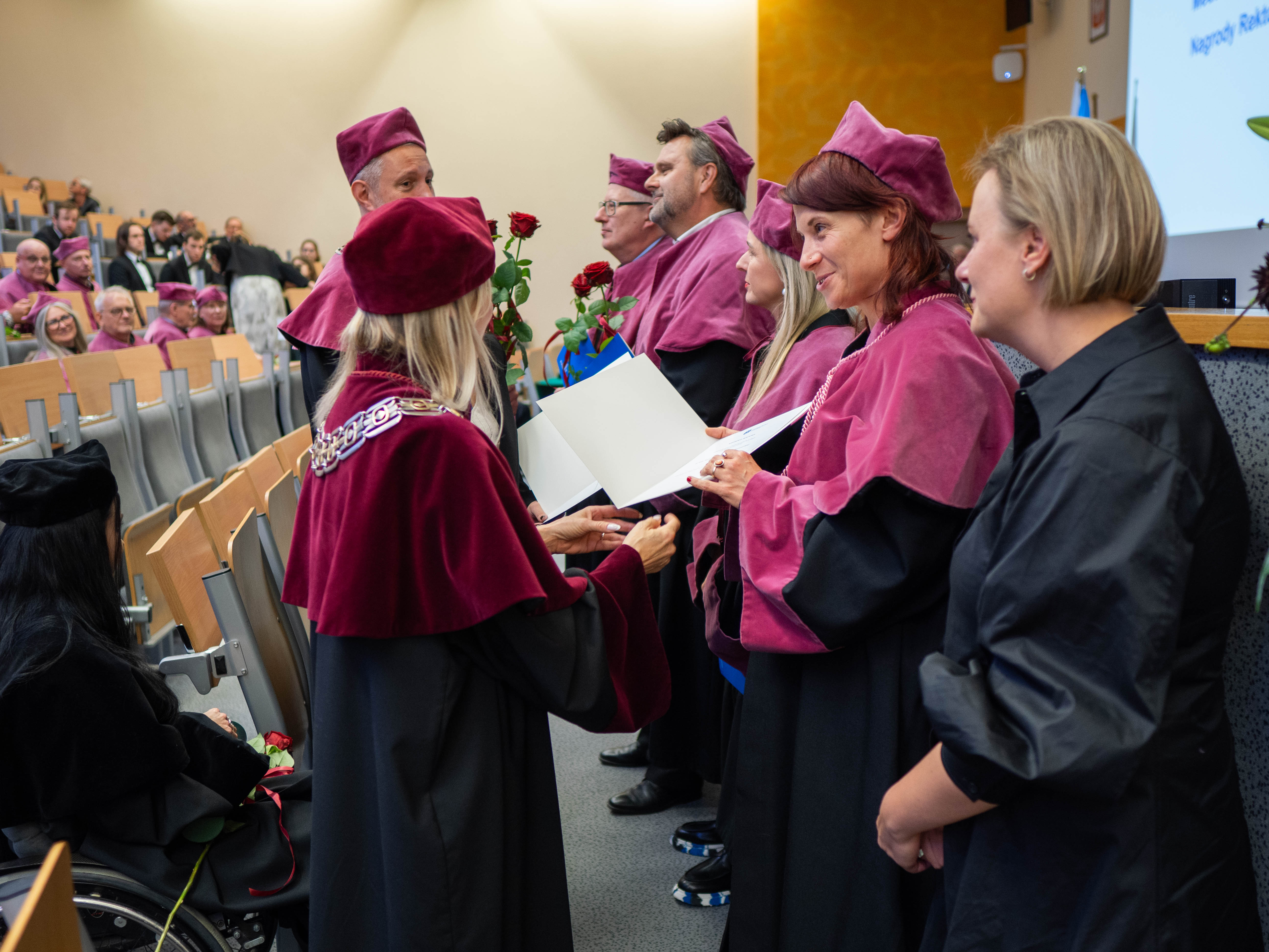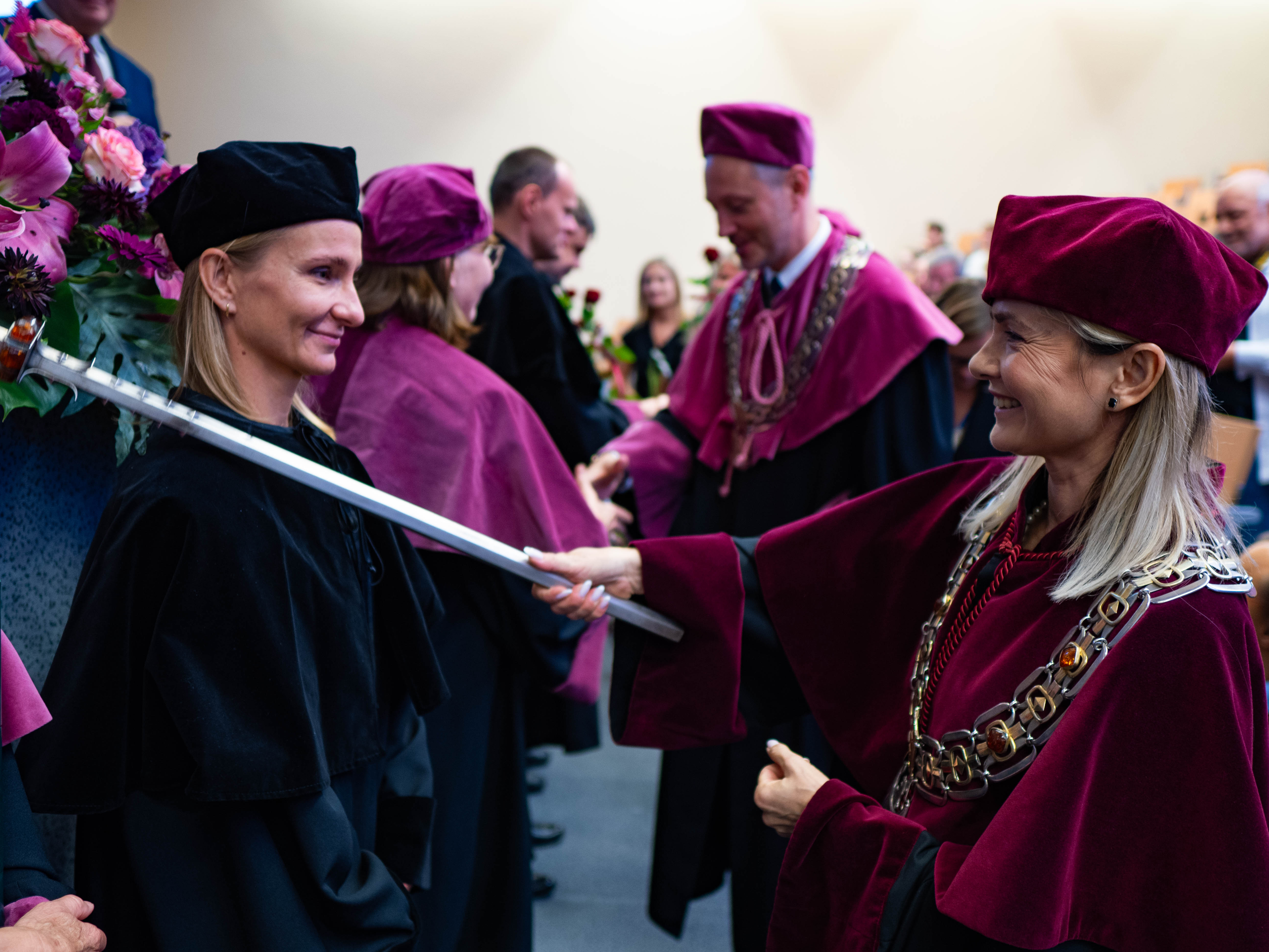 After the traditional Gaudeamus Igitur performed by the University of Gdańsk Academic Choir, prof. Michał Harciarek mentioned three professorial titles awarded to WNS researchers: prof. Danuta Plecka, prof. Monika Trojanowska and prof. Anna Maria Zawadzka. Commemorative diplomas on the occasion of the degrees were presented by the Vice-Rector for Cooperation and Internationalisation, dr hab. Anna Jurkowska-Zeidler, prof. UG. The inauguration was followed by the presentation of postdoctoral diplomas and doctoral promotions. The doctoral students then took the traditional oath before prof. A. Jurkowska-Zeidler.