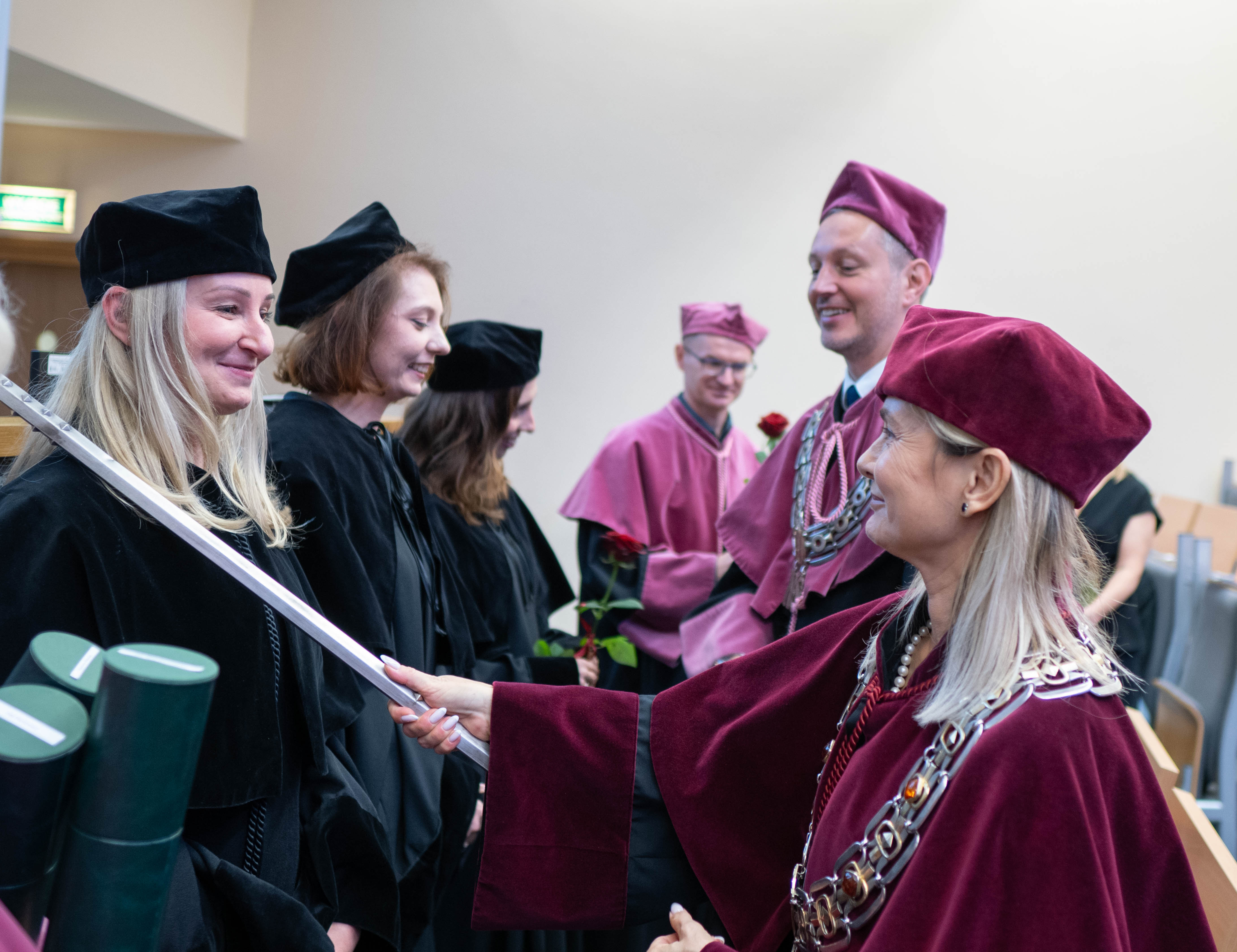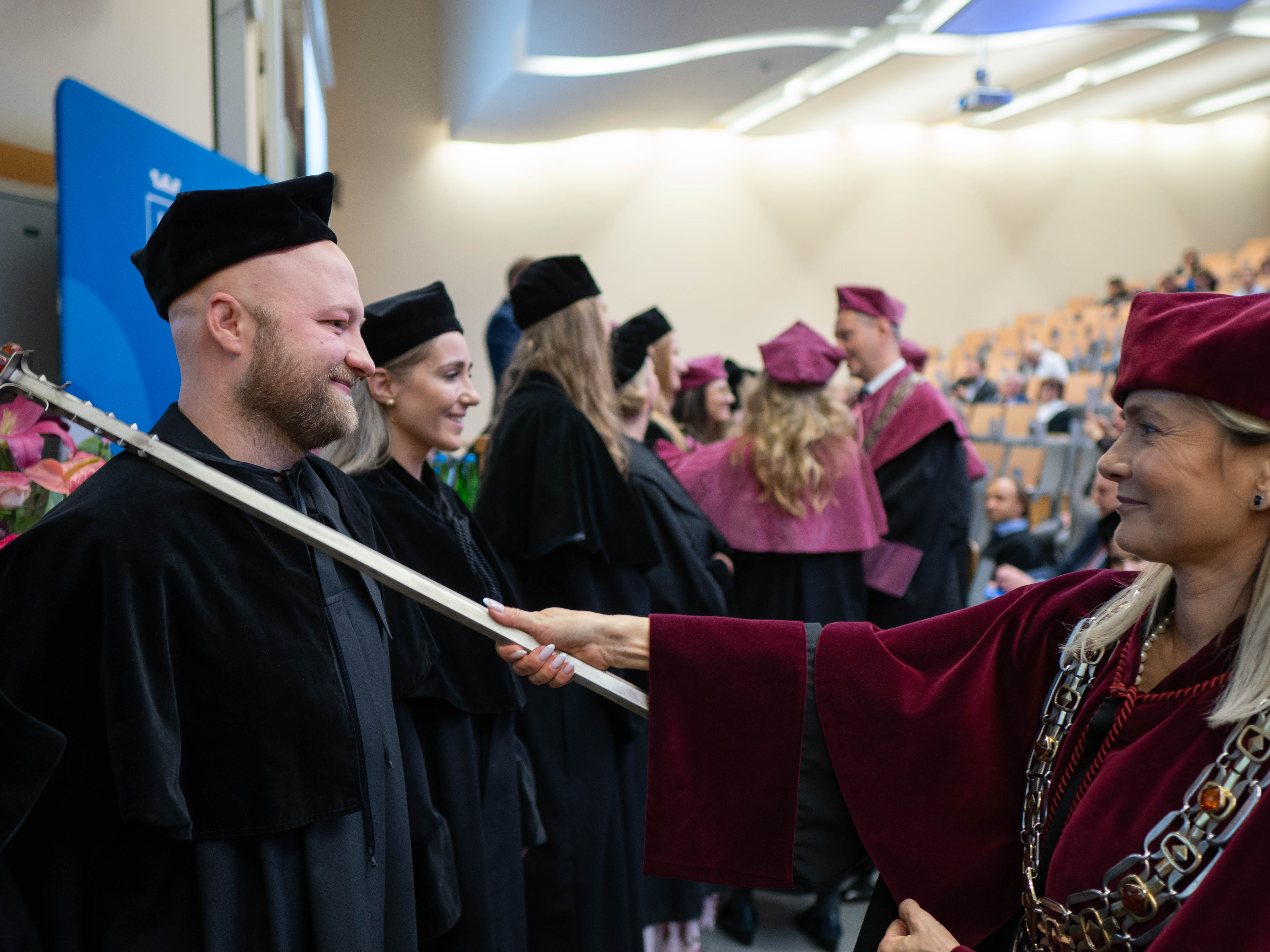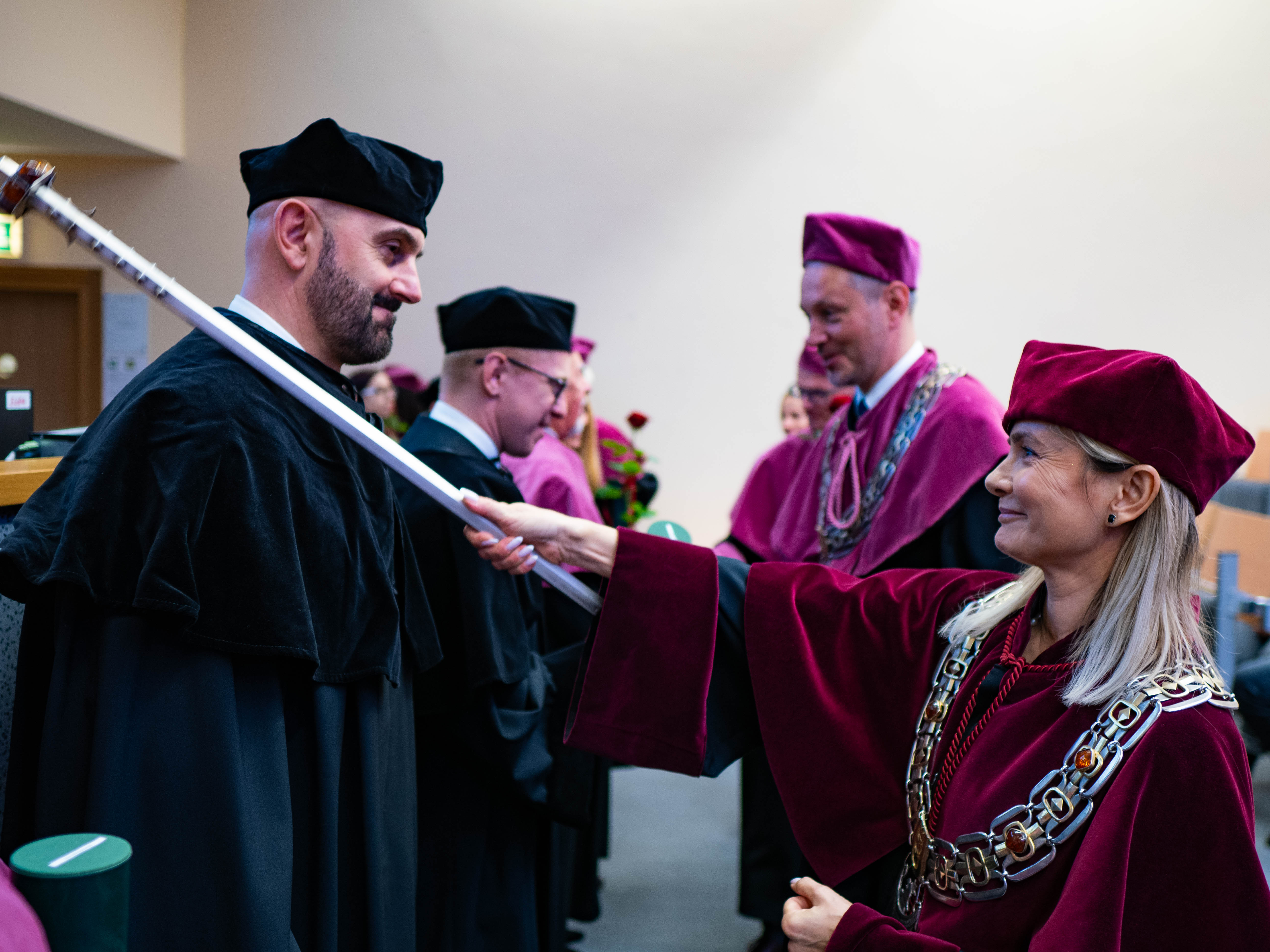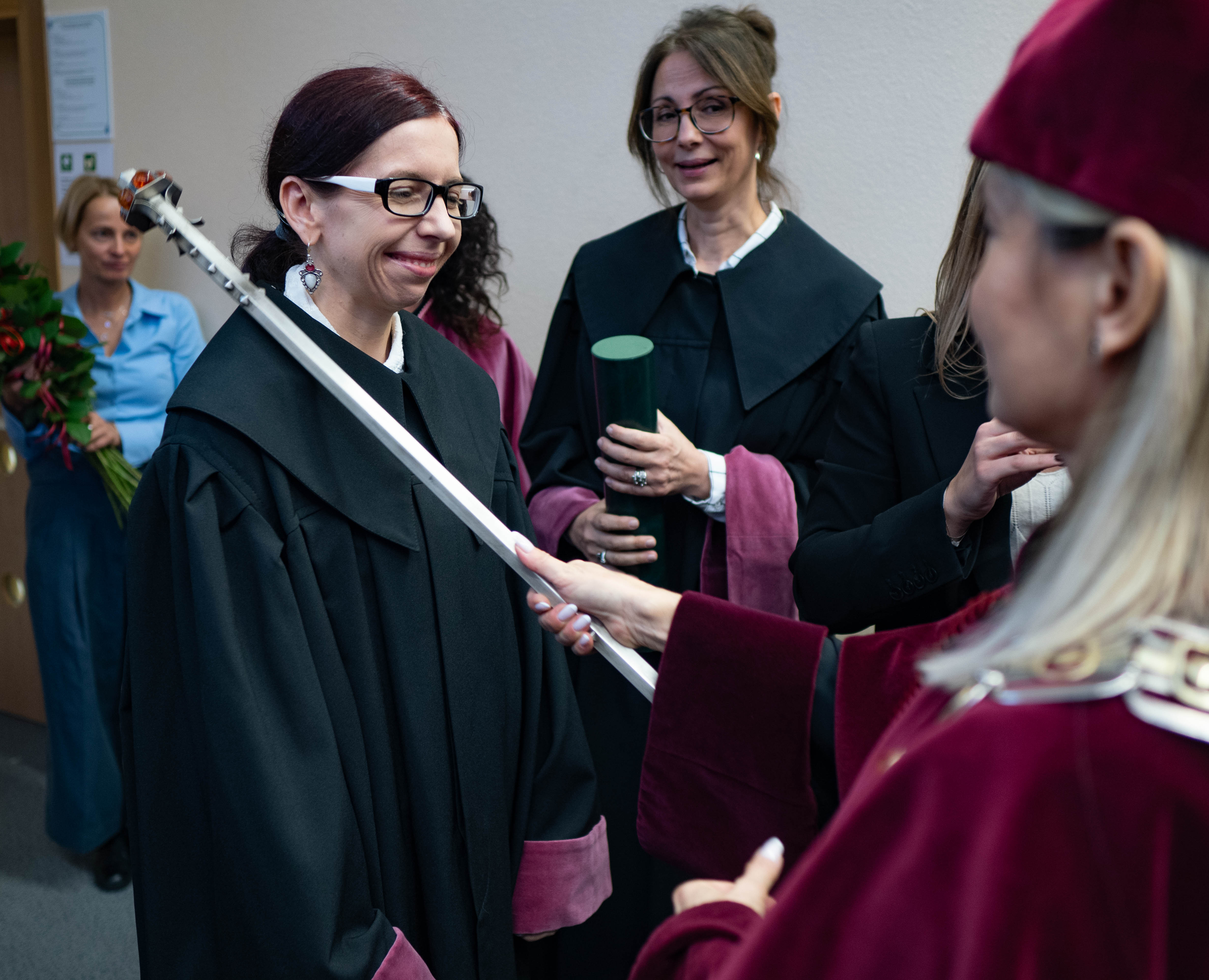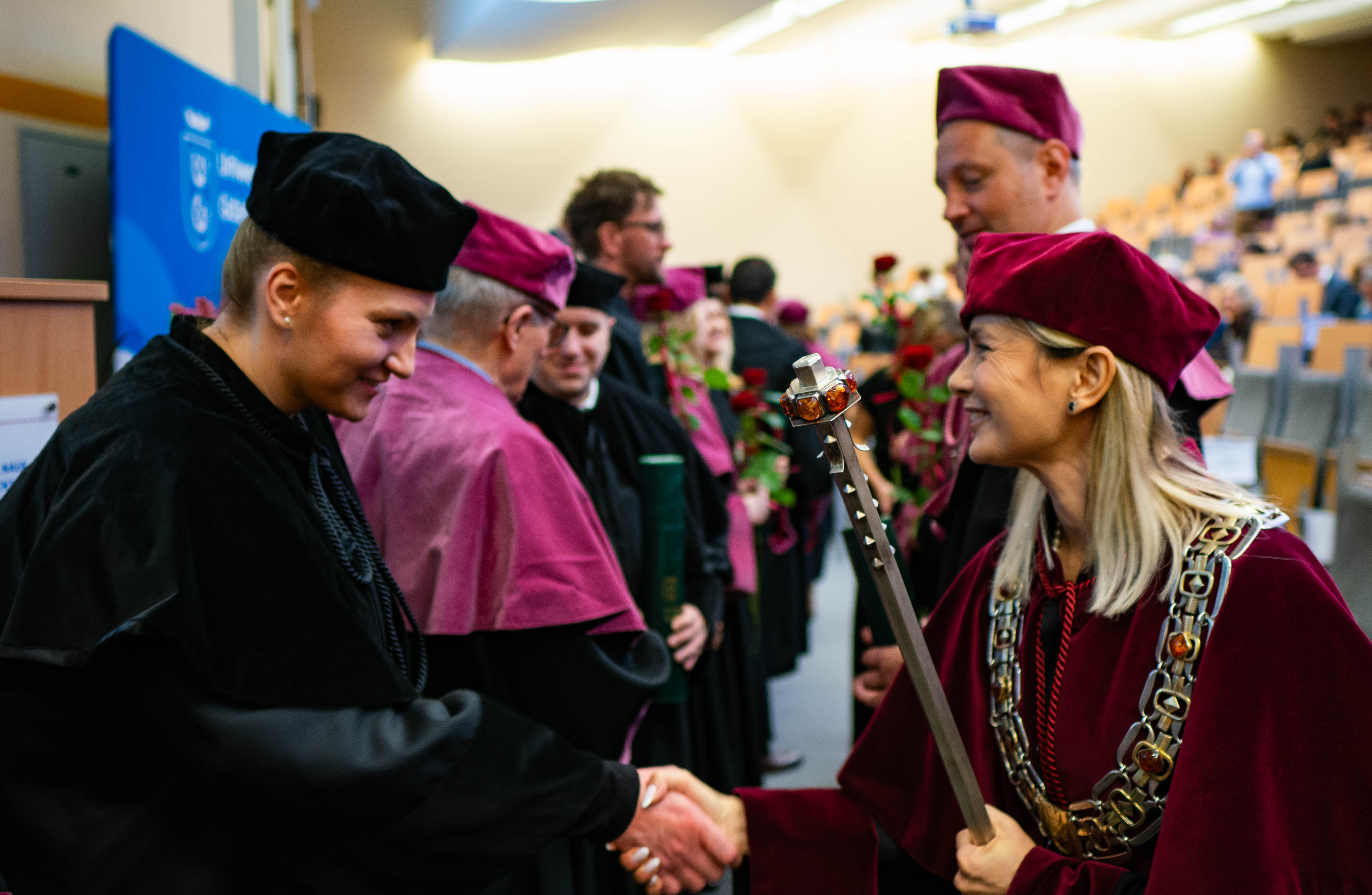 After the traditional Gaudeamus Igitur performed by the University of Gdańsk Academic Choir, prof. Michał Harciarek mentioned three professorial titles awarded to WNS researchers: prof. Danuta Plecka, prof. Monika Trojanowska and prof. Anna Maria Zawadzka. Commemorative diplomas on the occasion of the degrees were presented by the Vice-Rector for Cooperation and Internationalisation, dr hab. Anna Jurkowska-Zeidler, prof. UG. The inauguration was followed by the presentation of postdoctoral diplomas and doctoral promotions. The doctoral students then took the traditional oath before prof. A. Jurkowska-Zeidler.
