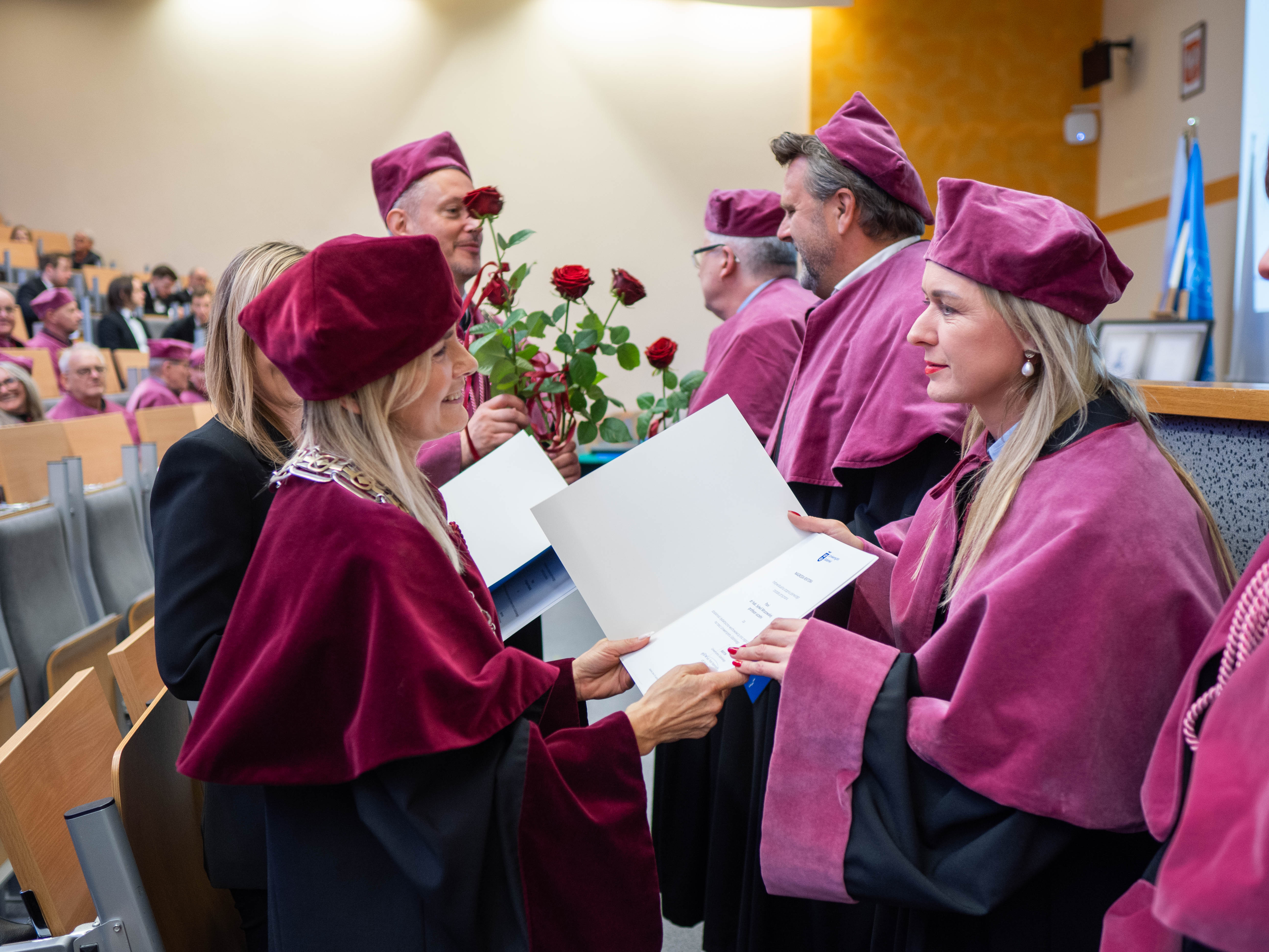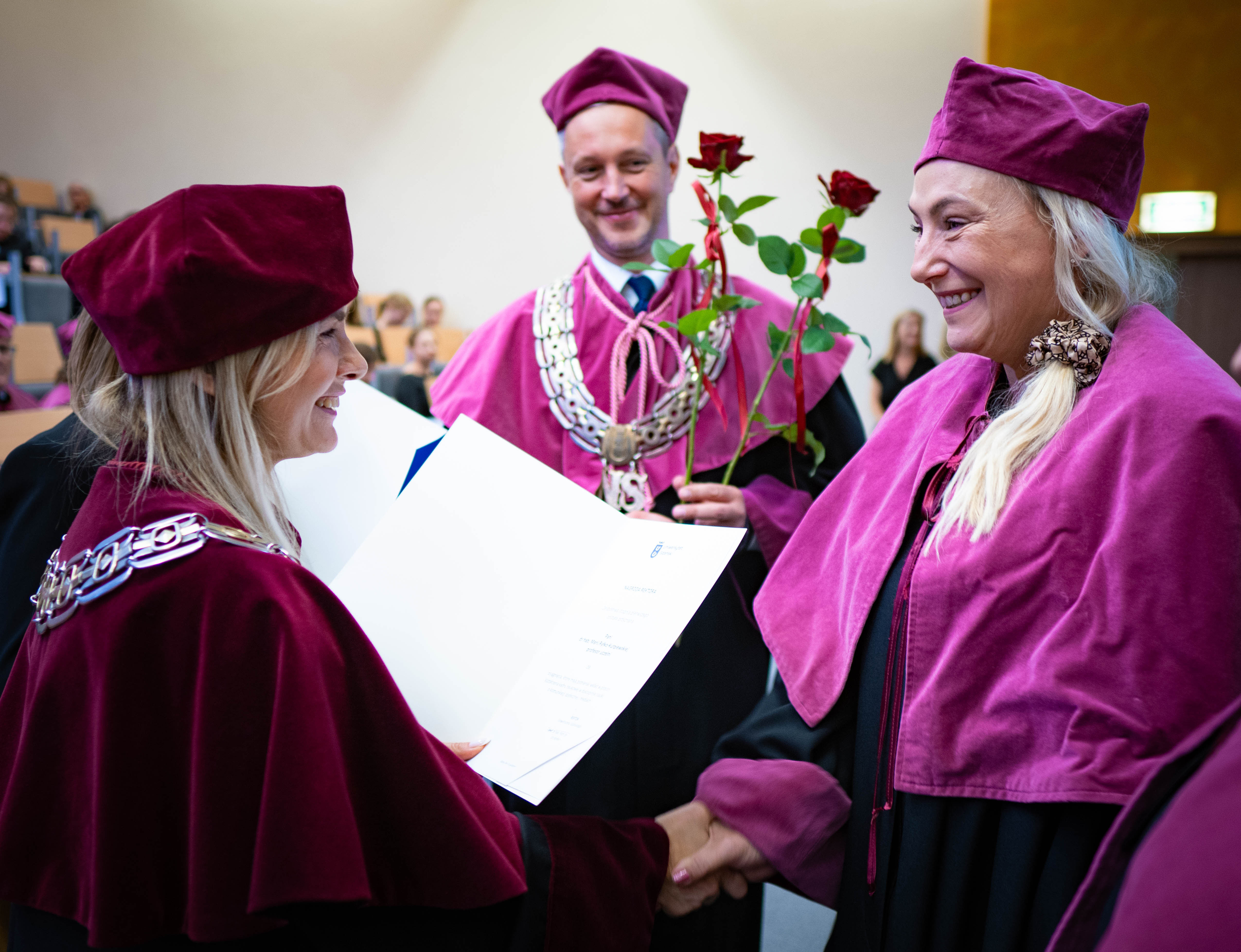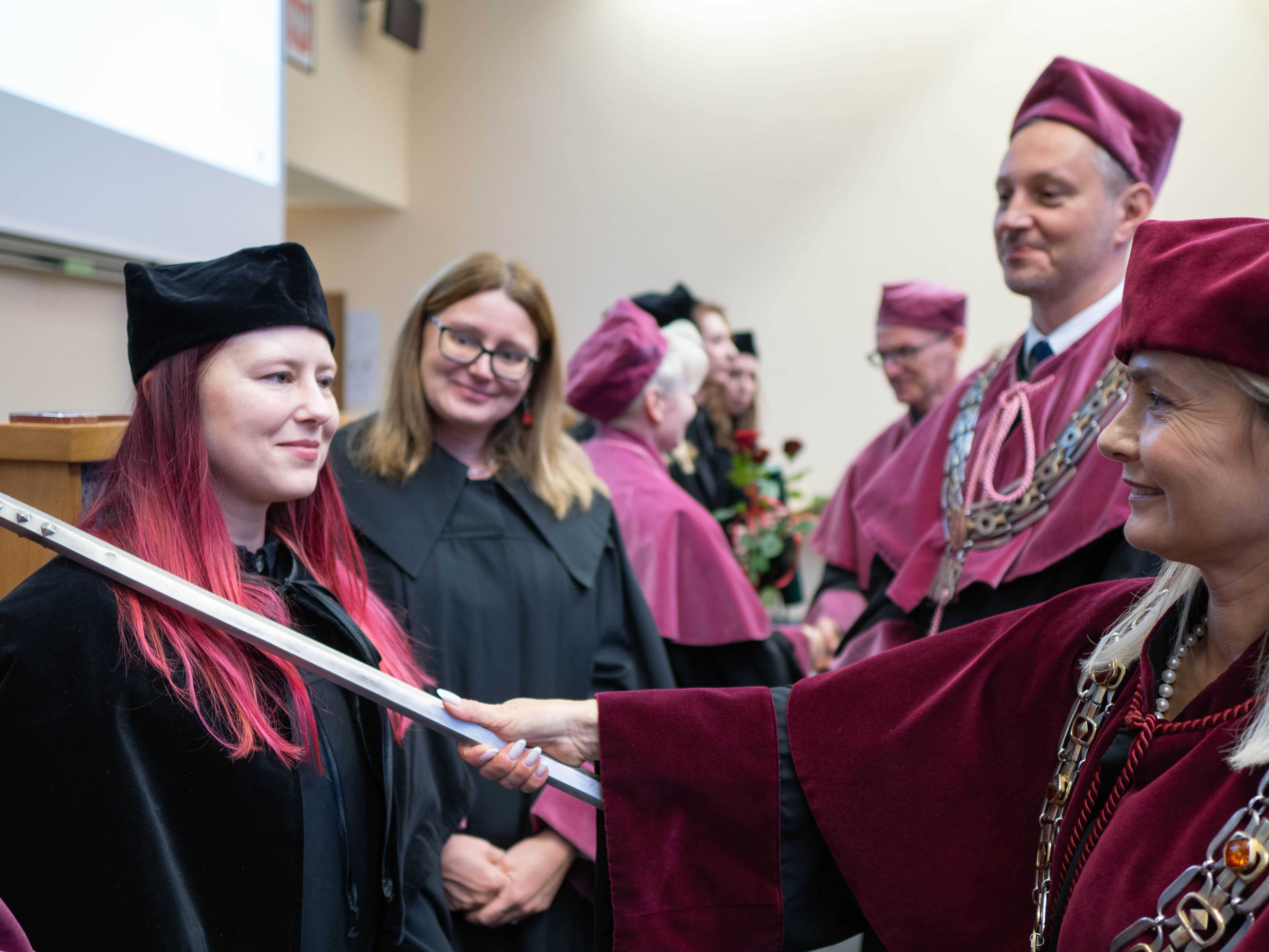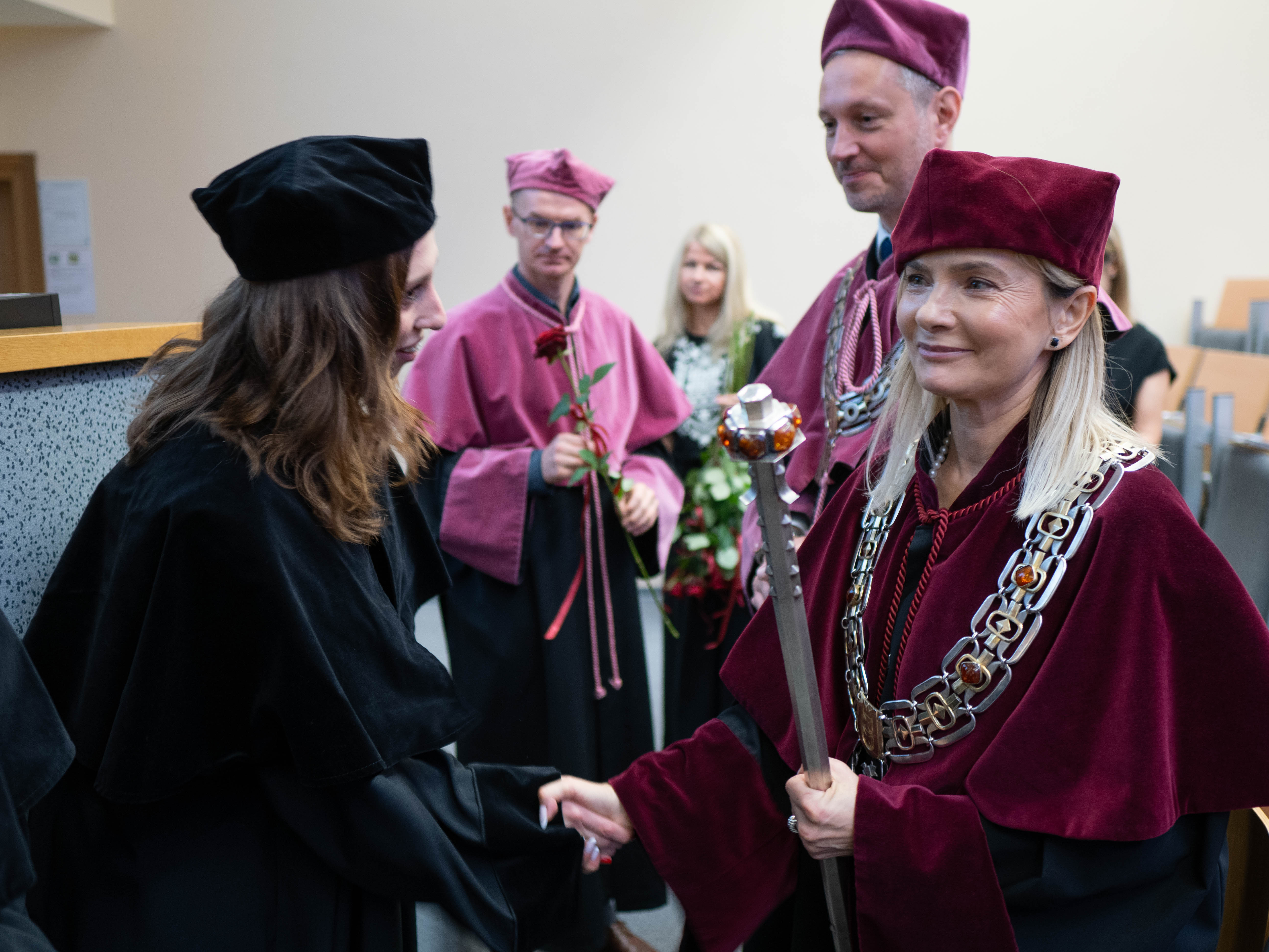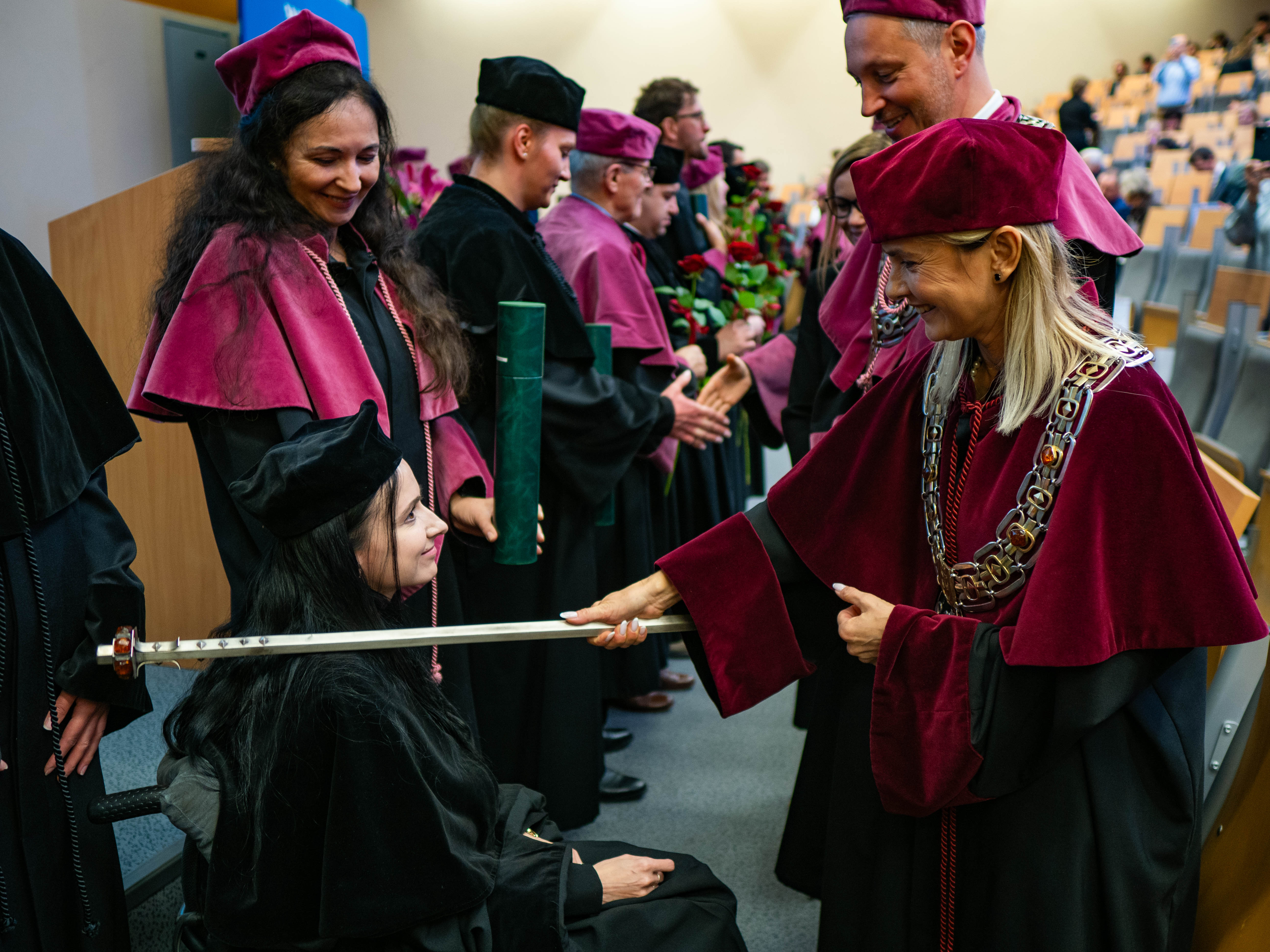 After the traditional Gaudeamus Igitur performed by the University of Gdańsk Academic Choir, prof. Michał Harciarek mentioned three professorial titles awarded to WNS researchers: prof. Danuta Plecka, prof. Monika Trojanowska and prof. Anna Maria Zawadzka. Commemorative diplomas on the occasion of the degrees were presented by the Vice-Rector for Cooperation and Internationalisation, dr hab. Anna Jurkowska-Zeidler, prof. UG. The inauguration was followed by the presentation of postdoctoral diplomas and doctoral promotions. The doctoral students then took the traditional oath before prof. A. Jurkowska-Zeidler.
