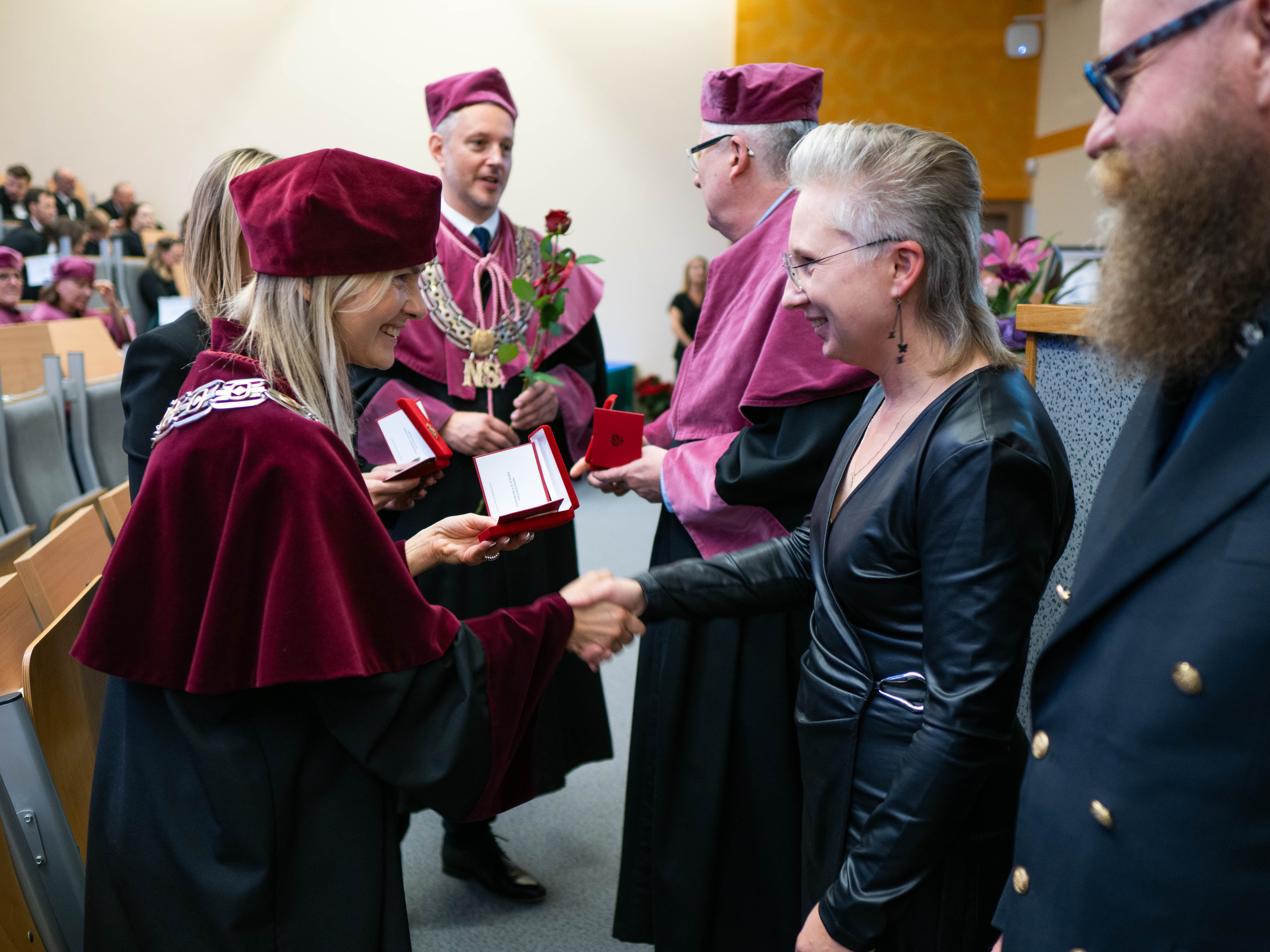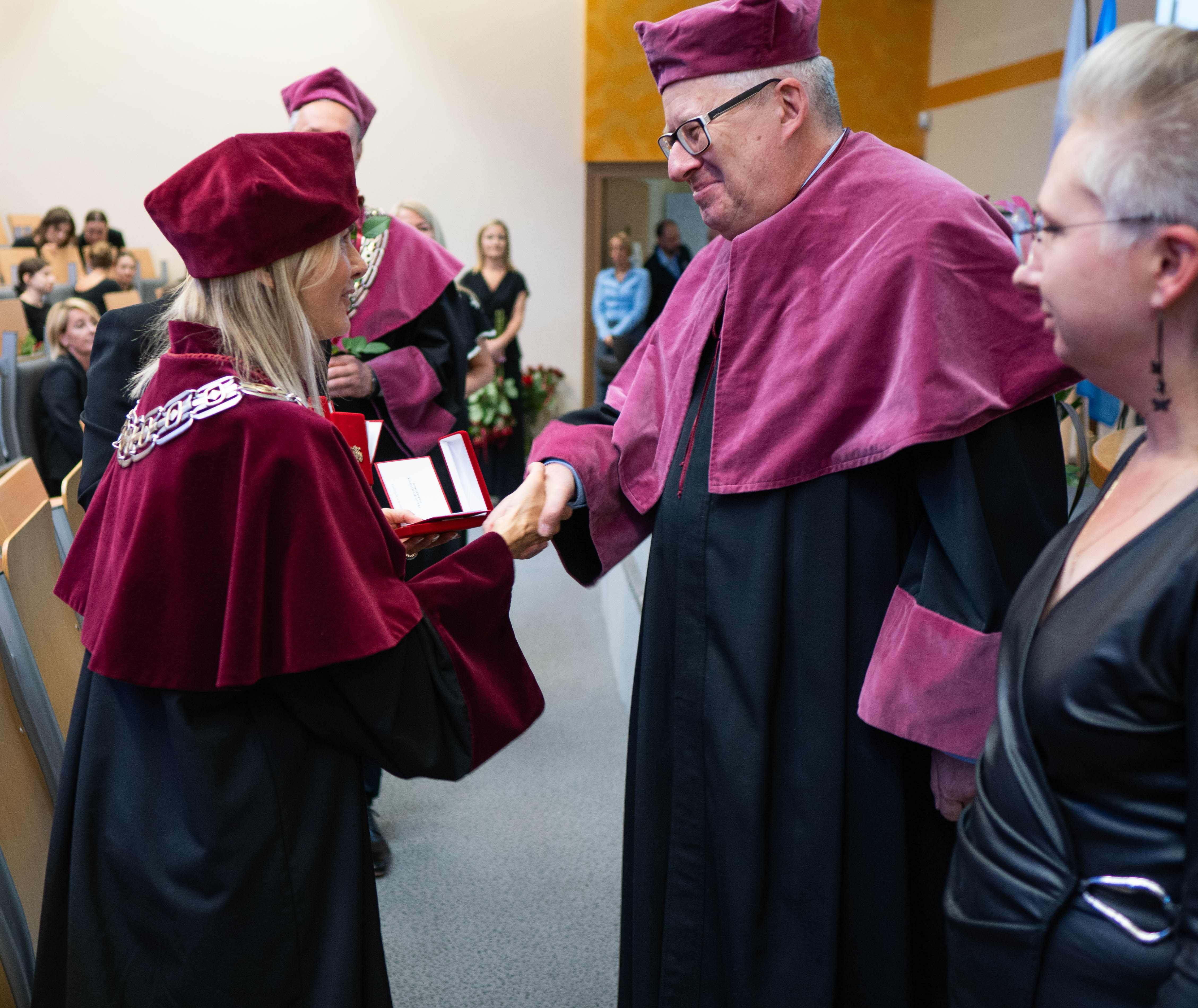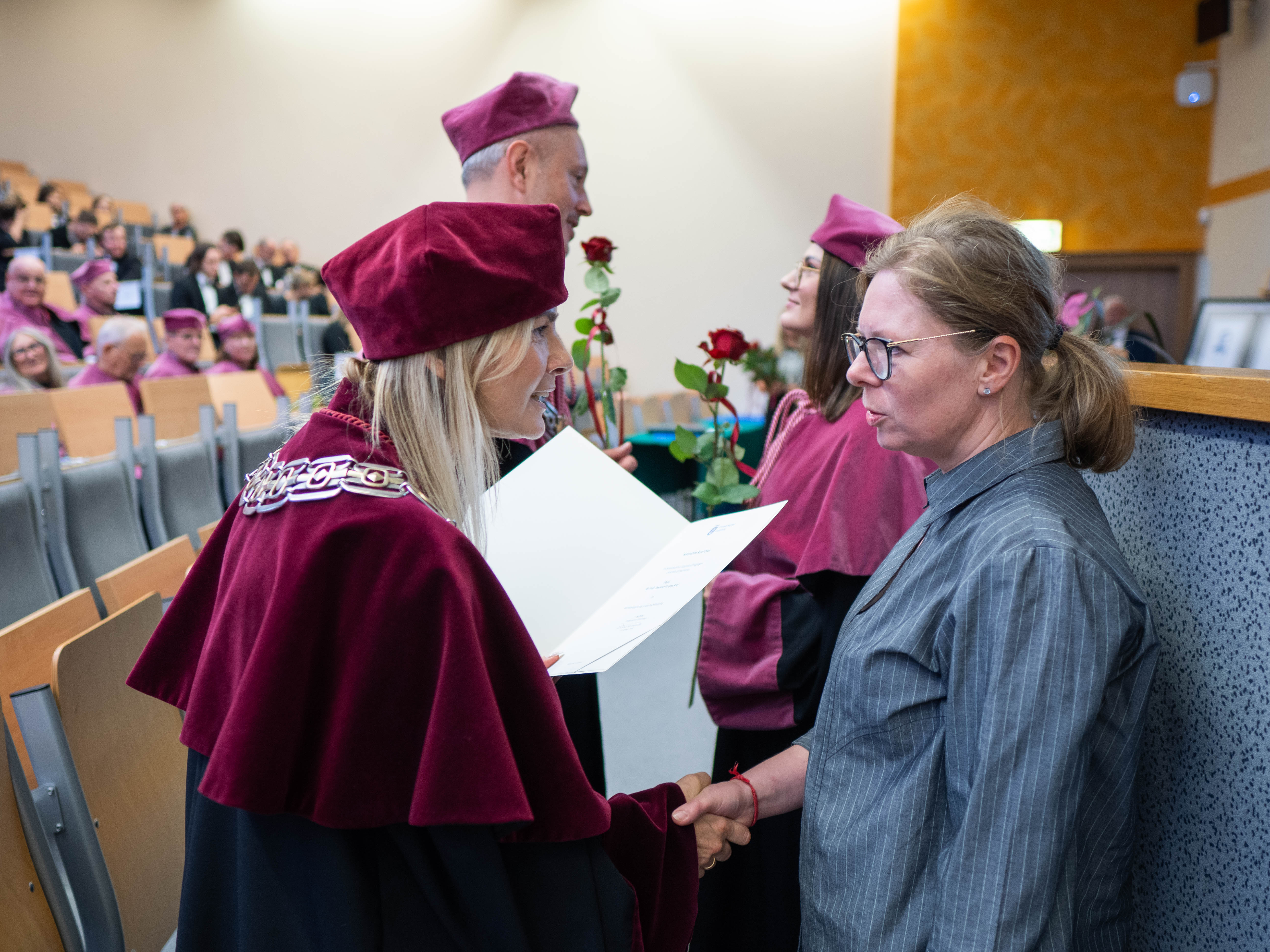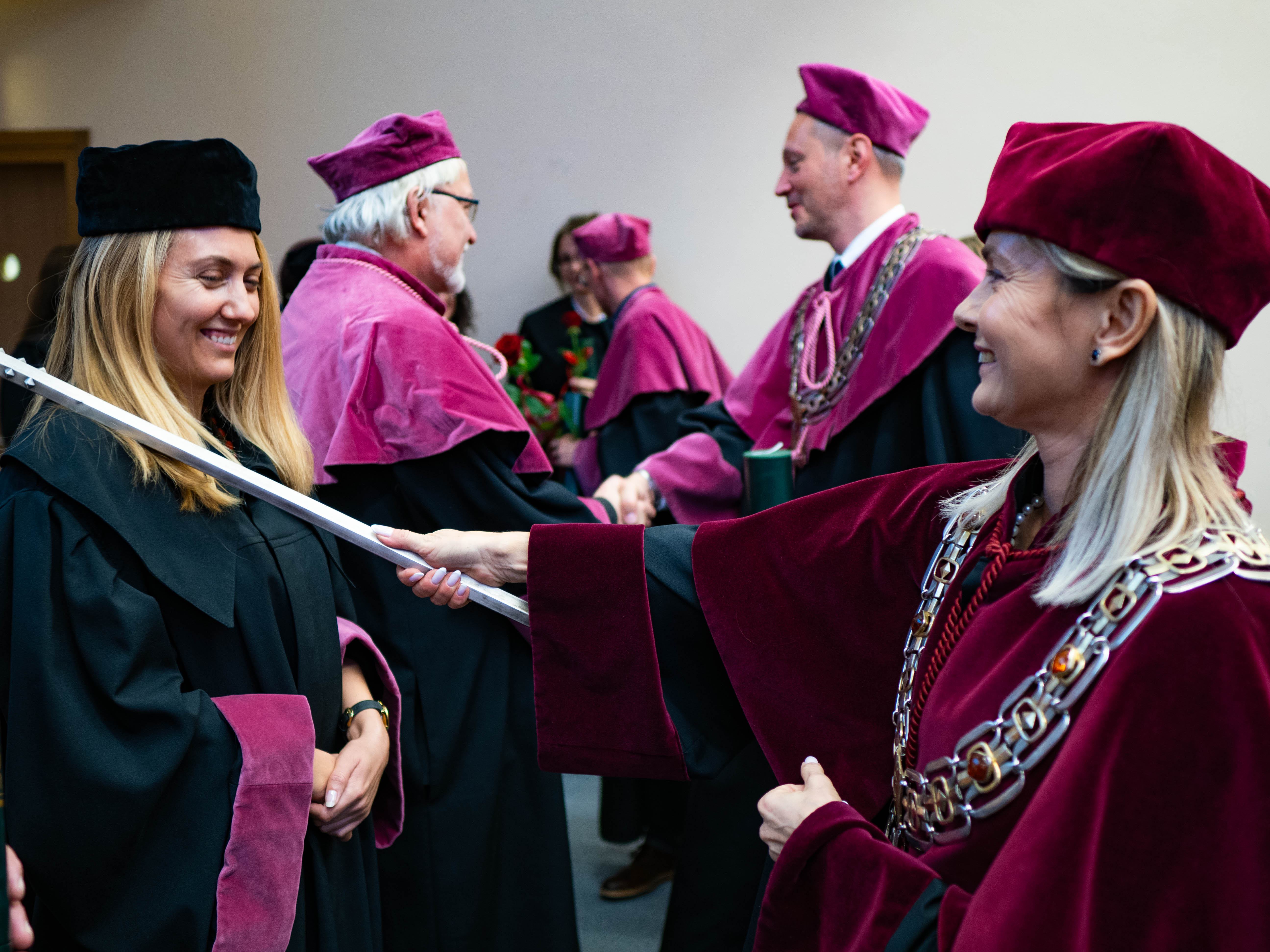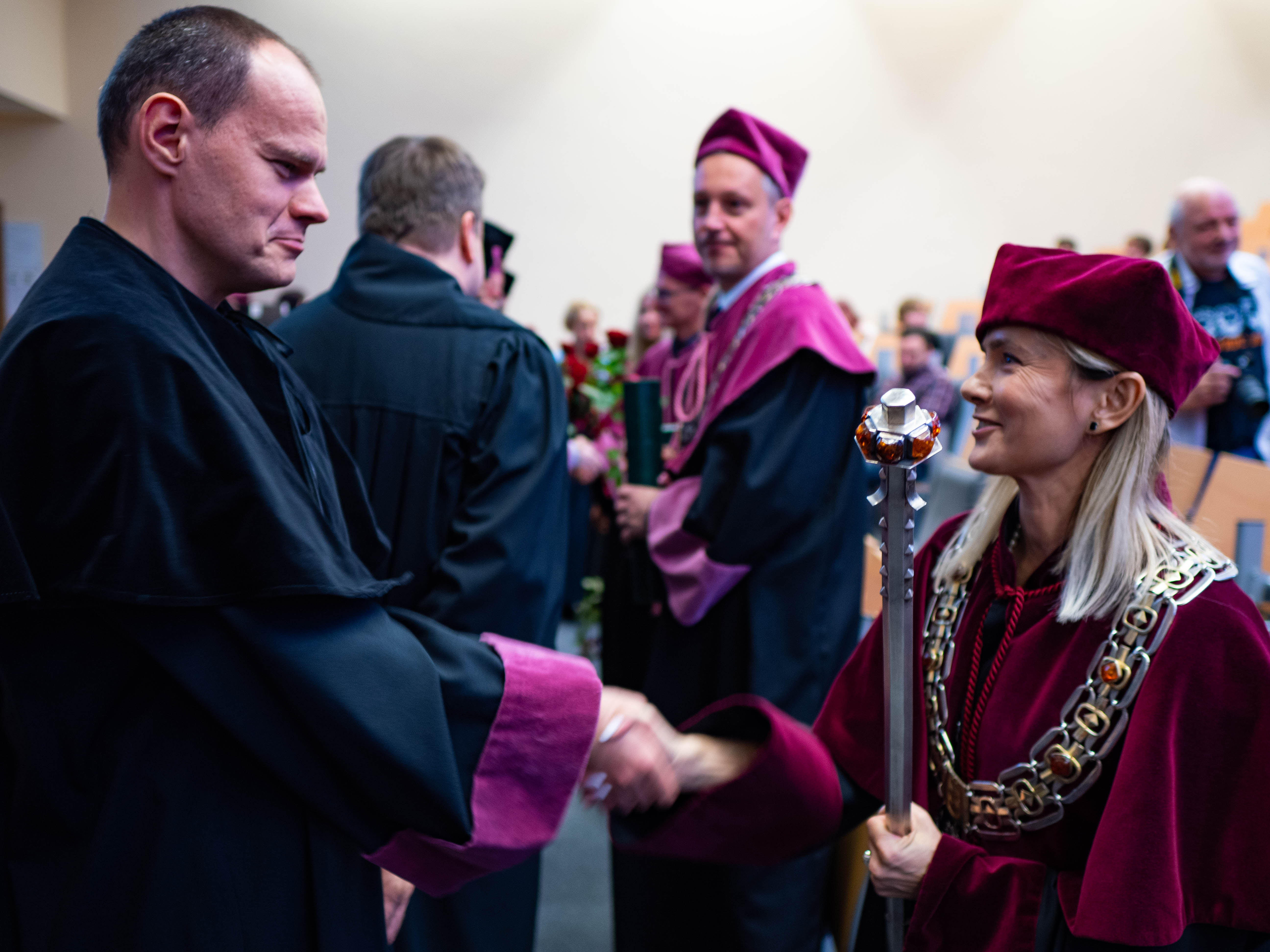 After the traditional Gaudeamus Igitur performed by the University of Gdańsk Academic Choir, prof. Michał Harciarek mentioned three professorial titles awarded to WNS researchers: prof. Danuta Plecka, prof. Monika Trojanowska and prof. Anna Maria Zawadzka. Commemorative diplomas on the occasion of the degrees were presented by the Vice-Rector for Cooperation and Internationalisation, dr hab. Anna Jurkowska-Zeidler, prof. UG. The inauguration was followed by the presentation of postdoctoral diplomas and doctoral promotions. The doctoral students then took the traditional oath before prof. A. Jurkowska-Zeidler.