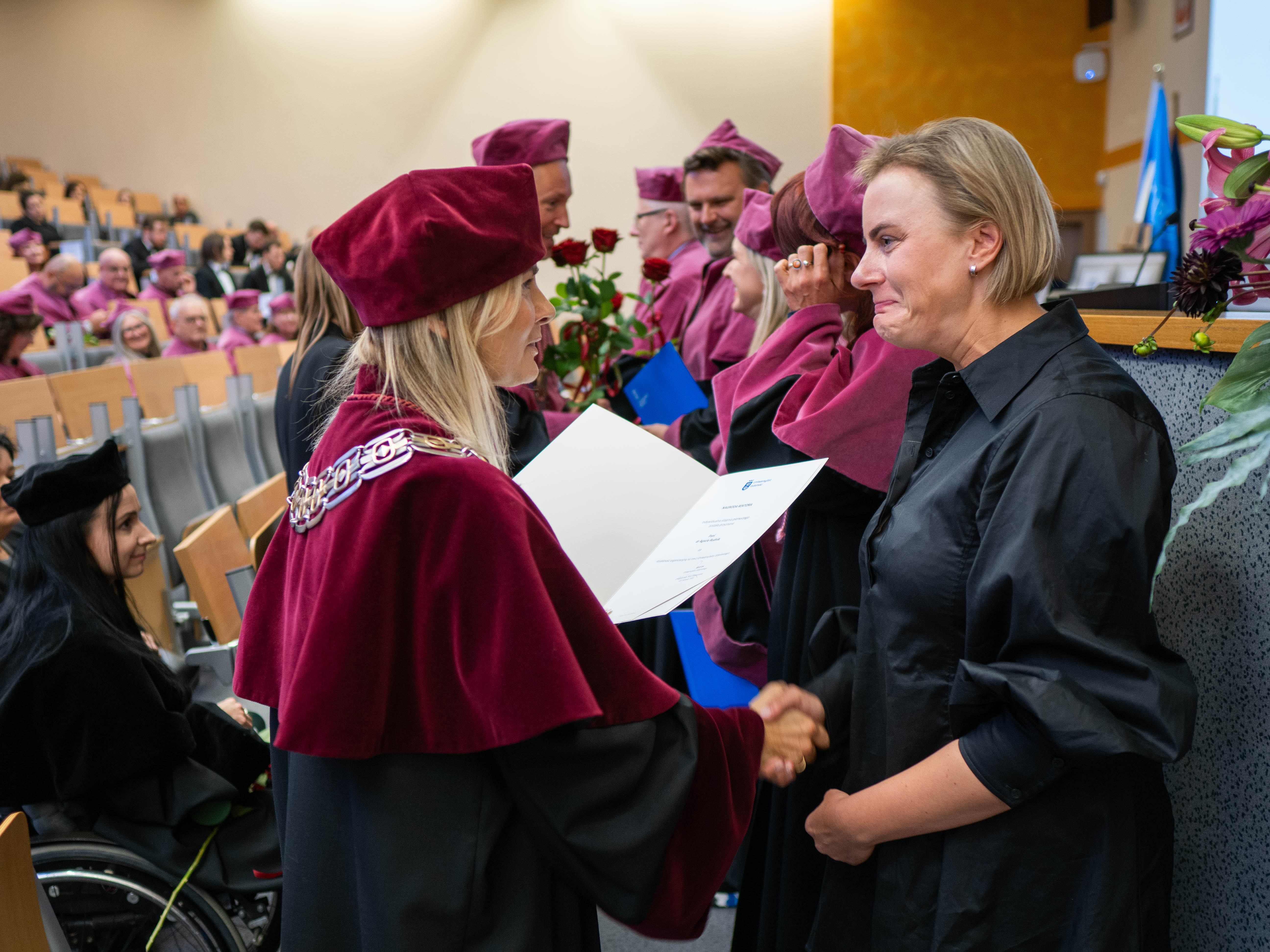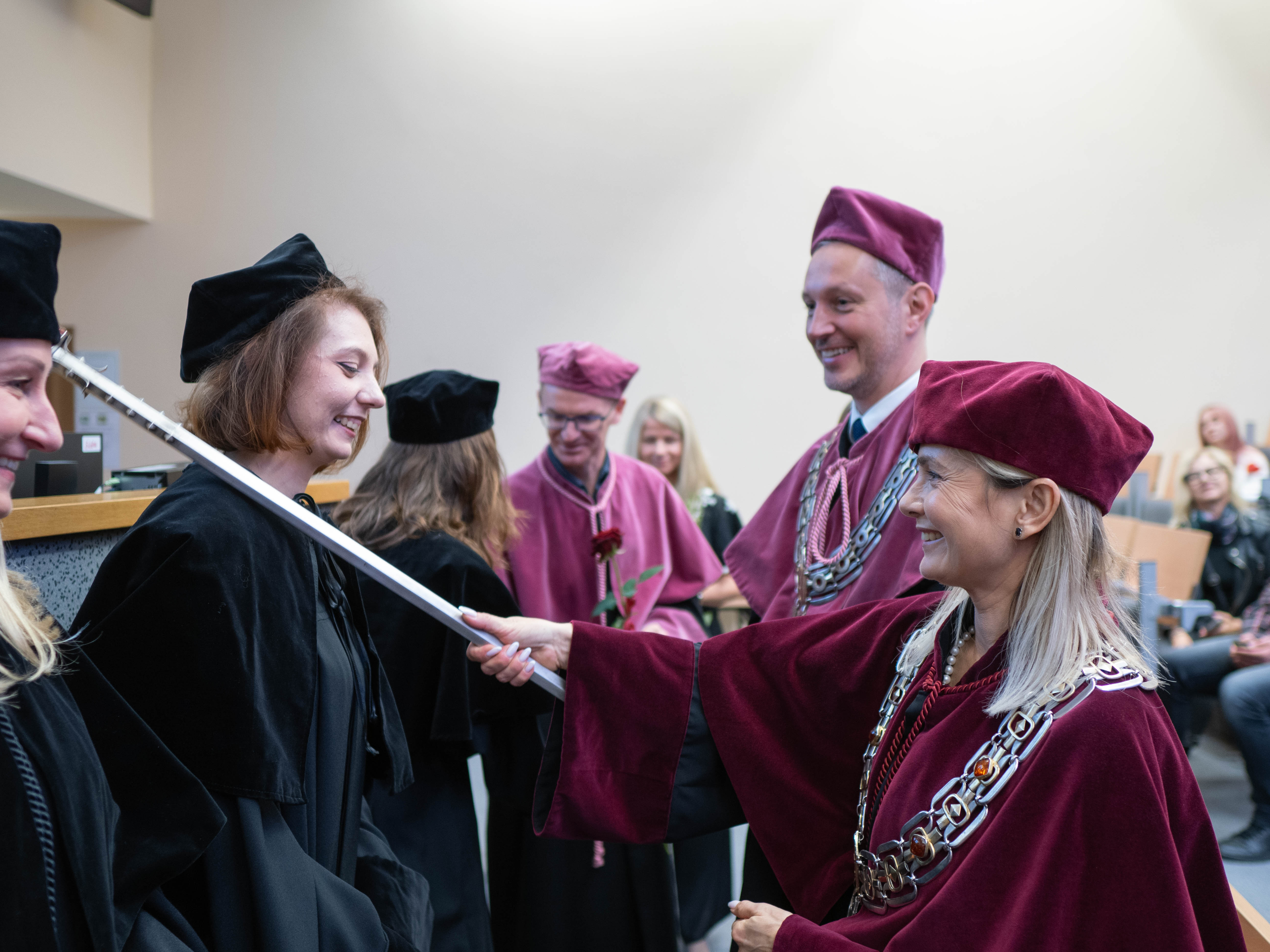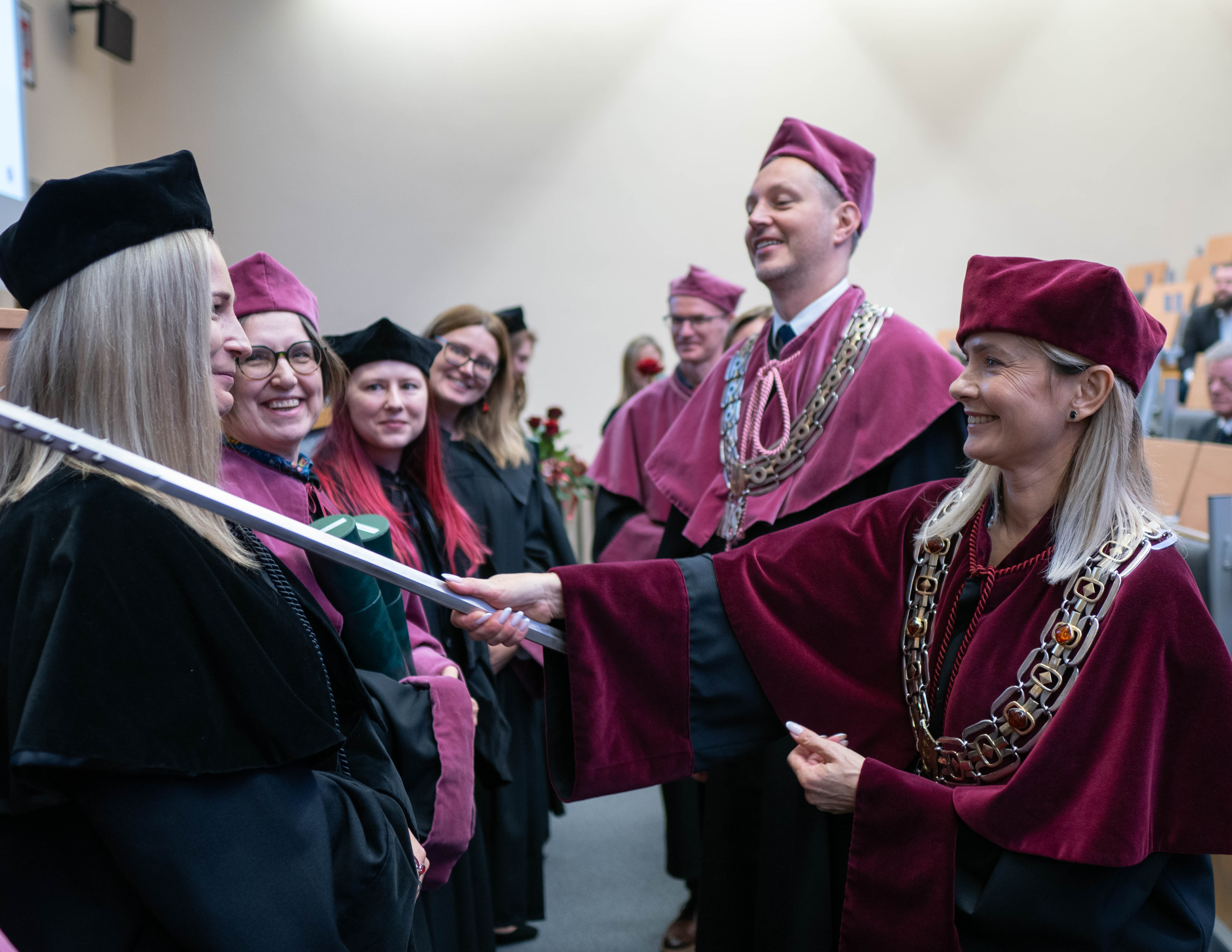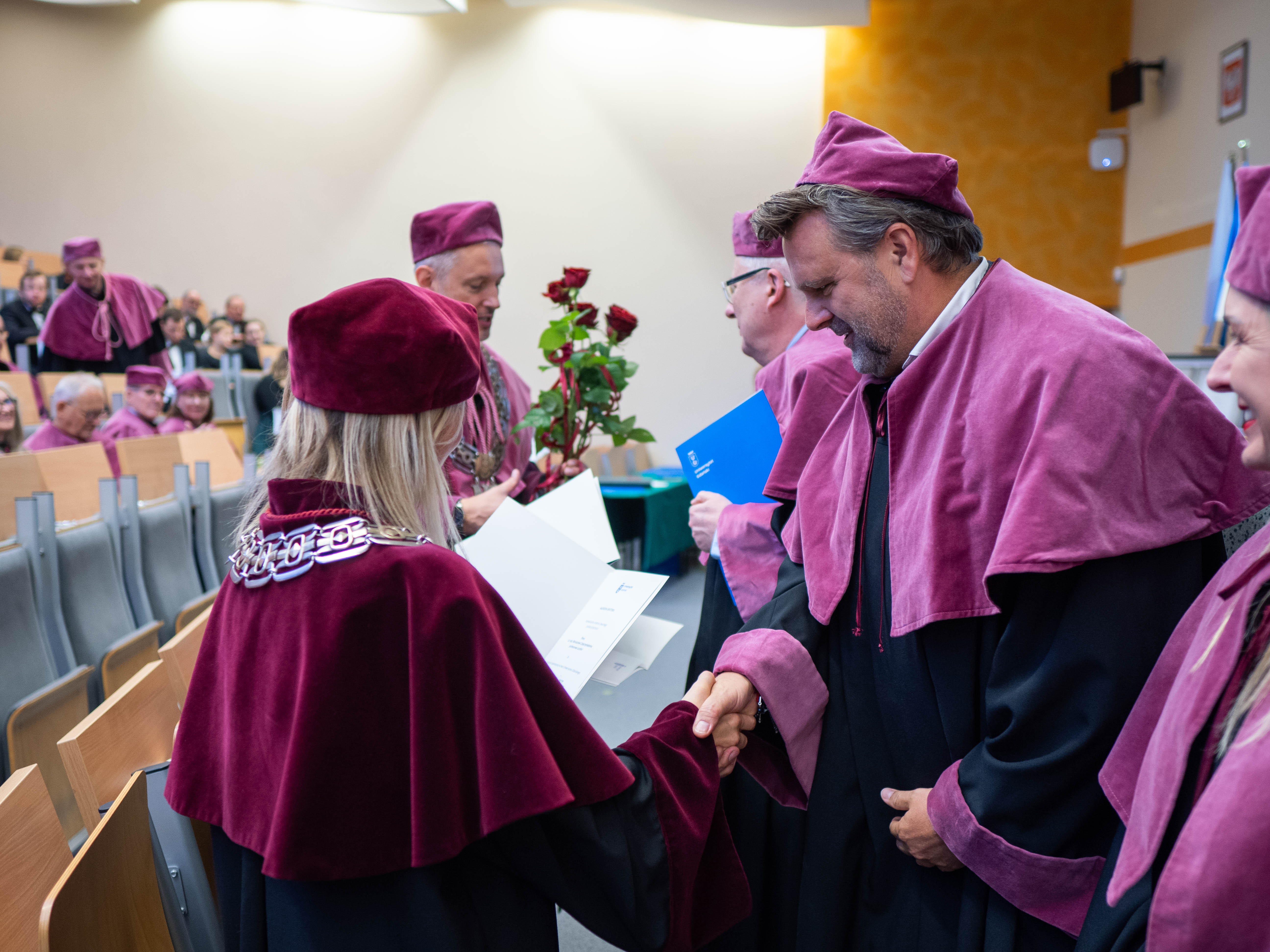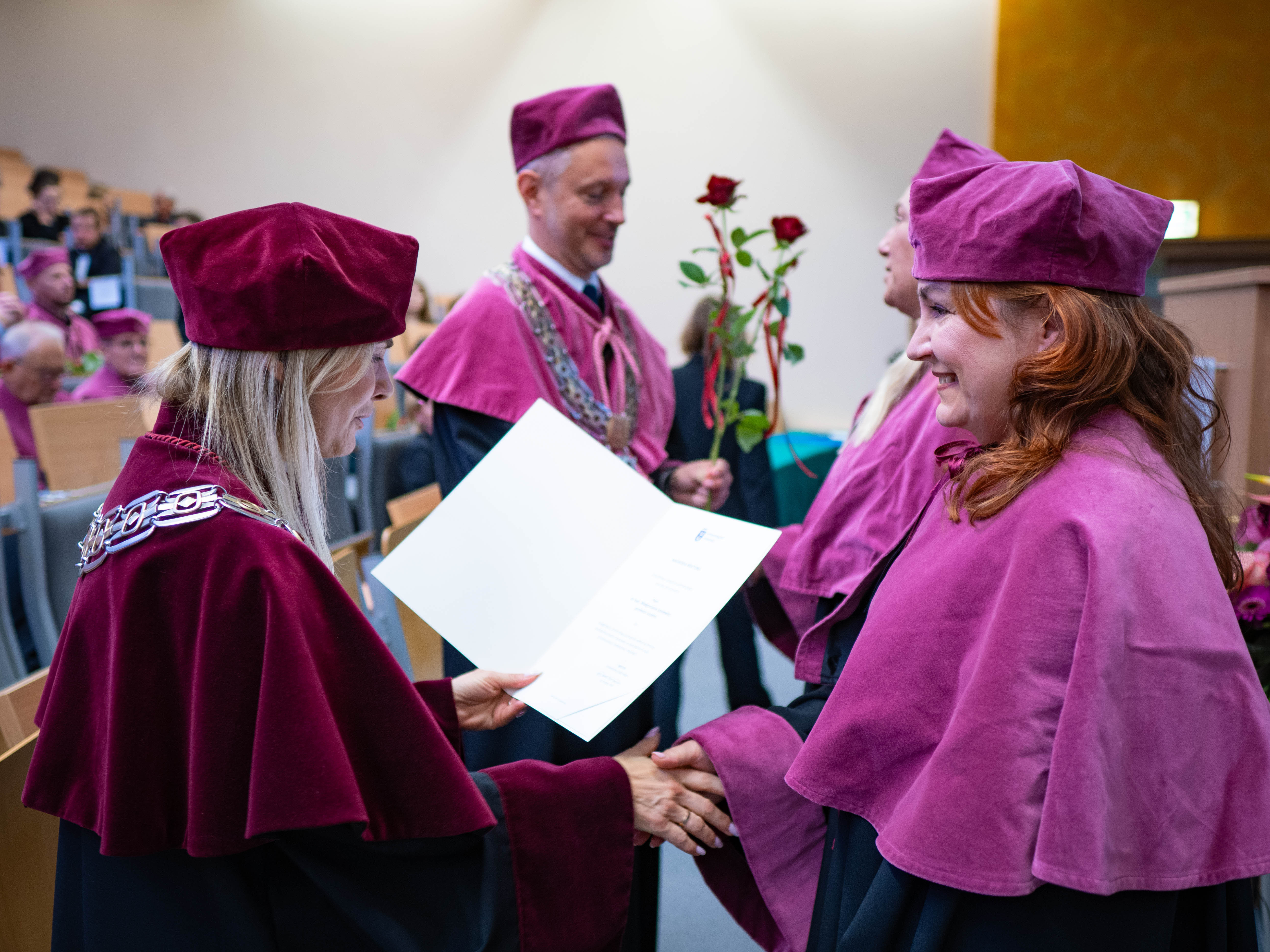After the traditional Gaudeamus Igitur performed by the University of Gdańsk Academic Choir, prof. Michał Harciarek mentioned three professorial titles awarded to WNS researchers: prof. Danuta Plecka, prof. Monika Trojanowska and prof. Anna Maria Zawadzka. Commemorative diplomas on the occasion of the degrees were presented by the Vice-Rector for Cooperation and Internationalisation, dr hab. Anna Jurkowska-Zeidler, prof. UG. The inauguration was followed by the presentation of postdoctoral diplomas and doctoral promotions. The doctoral students then took the traditional oath before prof. A. Jurkowska-Zeidler.
