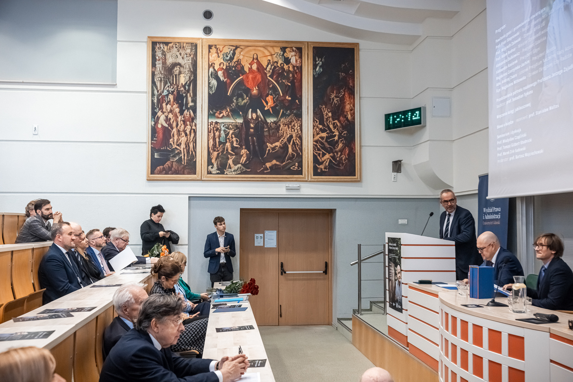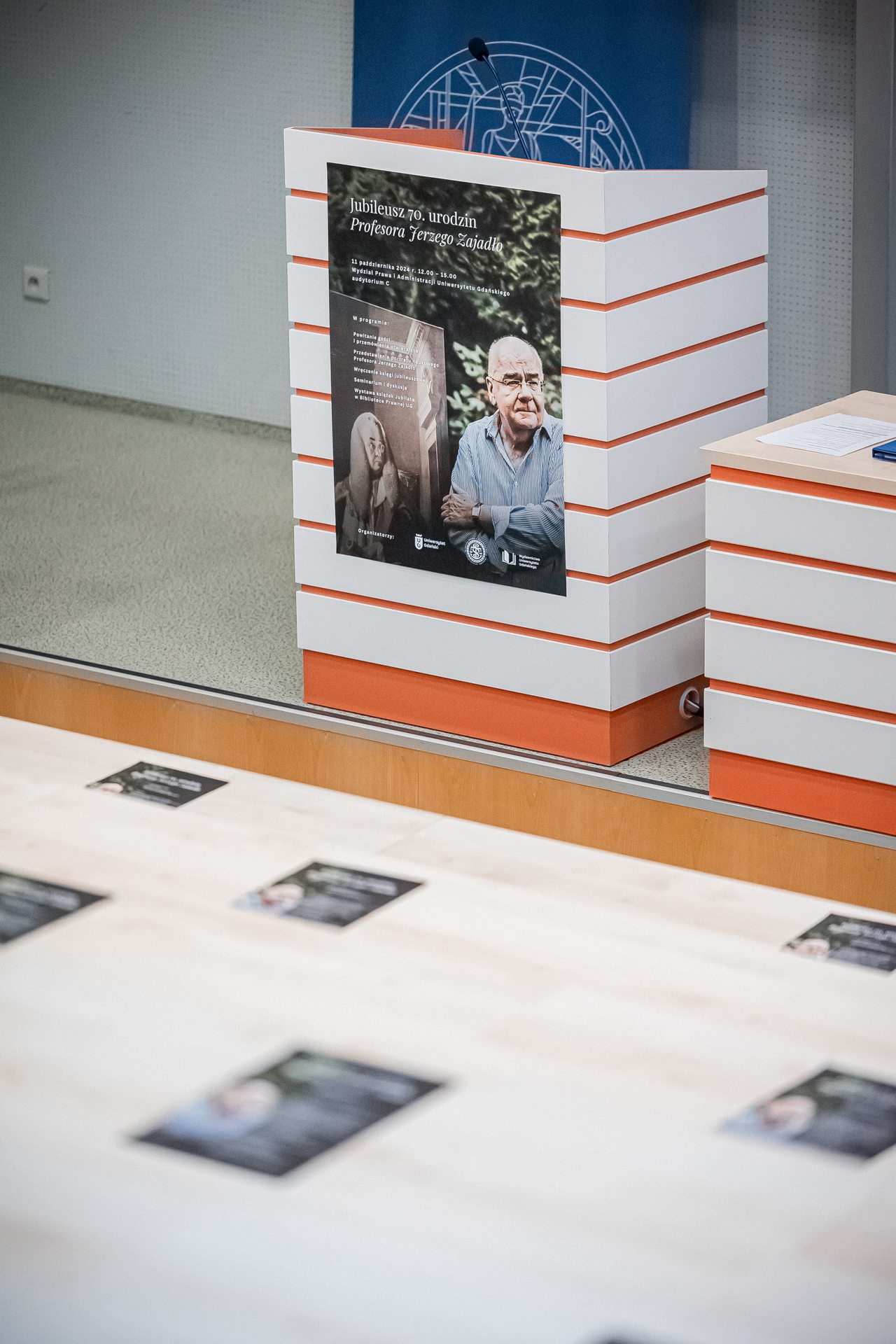 In the second part of the ceremony, a short scientific seminar was held, chaired by dr hab. Bartosz Wojciechowski, prof. of the University of Łódź, and papers were delivered by: prof. dr hab. Władysław Czapliński, prof. dr hab. Tomasz Gizbert-Studnicki and prof. dr hab. Marek Zirk-Sadowski. The jubilee was accompanied by an exhibition of books and other works by Professor Jerzy Zajadło, organised in the Library of the Faculty of Law and Administration at the University of Gdańsk.