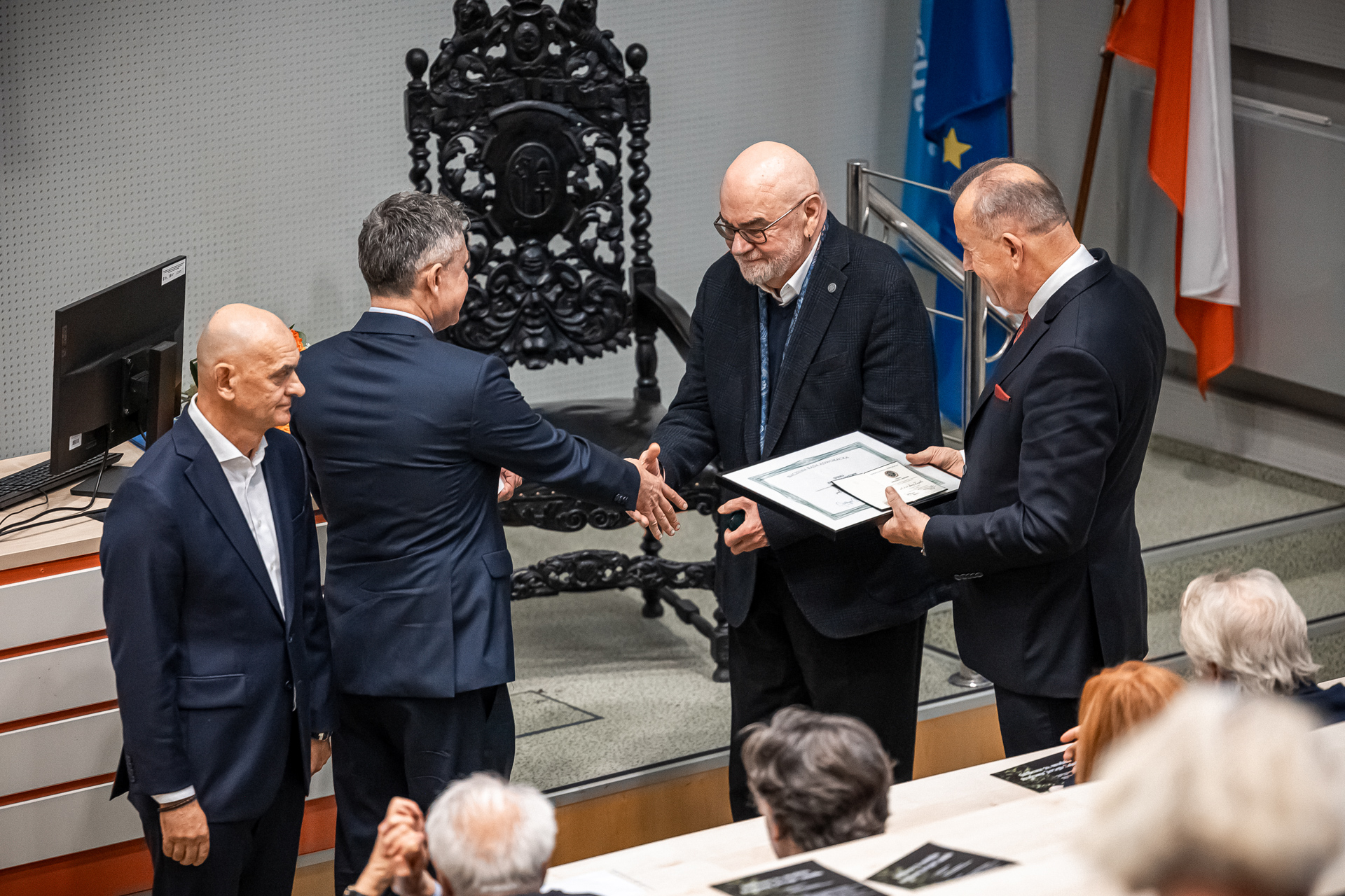 ‘Professor Zajadło is one of the most eminent and famous scholars of our University, with an incomparable record of both scientific and popularisation achievements,’ said the UG Rector prof. dr hab. Piotr Stepnowski. ‘He is extremely involved in current affairs, including matters of state importance: activity in the name of the common good, defence of constitutionalism, and building a democratic state of law. He presents the attitude of a thoroughly courageous scholar, often speaking out on important matters for a democratic state, for which I would like to thank him wholeheartedly on behalf of the entire academic community.’