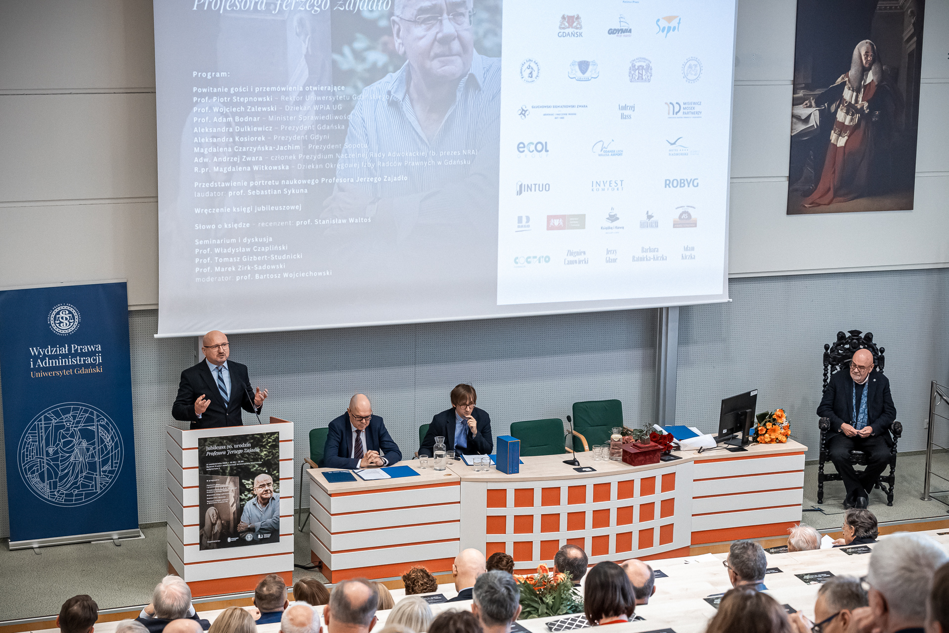 An occasional letter for the jubilarian was handed over by, among others, the Minister of Justice, prof. Adam Bodnar. Congratulations, words of appreciation and best wishes were also addressed to the professor by the Mayor of Gdańsk Aleksandra Dulkiewicz, the Mayor of Gdynia Aleksandra Kosiorek and the Mayor of Sopot Magdalena Czarzyńska-Jachim. Mayor Aleksandra Dulkiewicz, recalling prof. Jerzy Zajadło's numerous contributions to Gdańsk, including his involvement in the establishment of the Gdańsk Shakespeare Theatre, awarded him the Mayor's Medal of the City of Gdańsk.