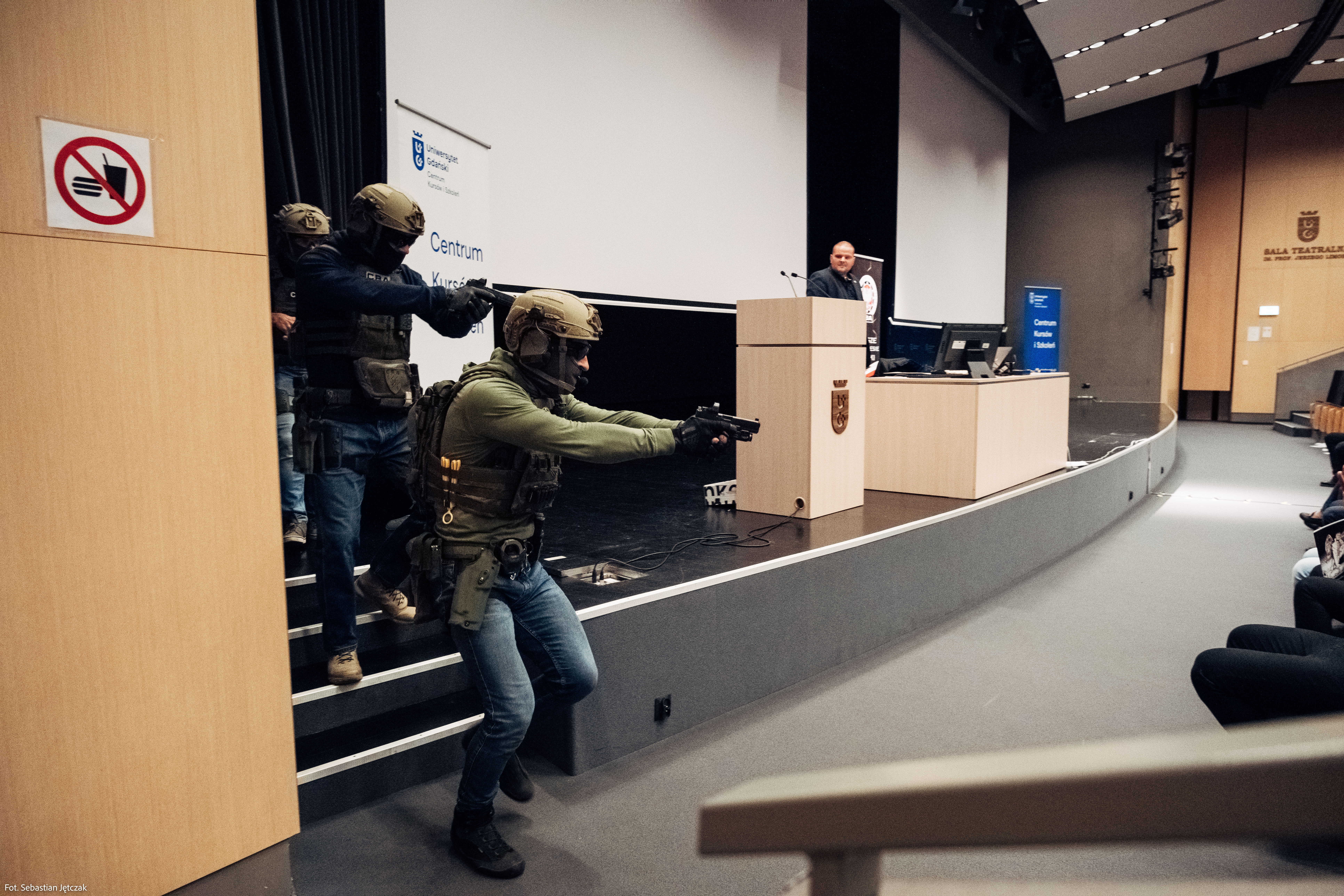 The participants were welcomed by the Director of the Centre for Courses and Training of the University of Gdańsk, dr Piotr Zieliński: ‘The cooperation between the University of Gdańsk and the Central Anti-Corruption Bureau is very important for us. It is a very great distinction for us, as a university, due to the fact that the values that guide the functioning of this office and the values of the University of Gdańsk coincide. We care about honesty, we care about justice, and we want to teach in the spirit of patriotism. I am very pleased that this auditorium was filled in such large numbers.’
