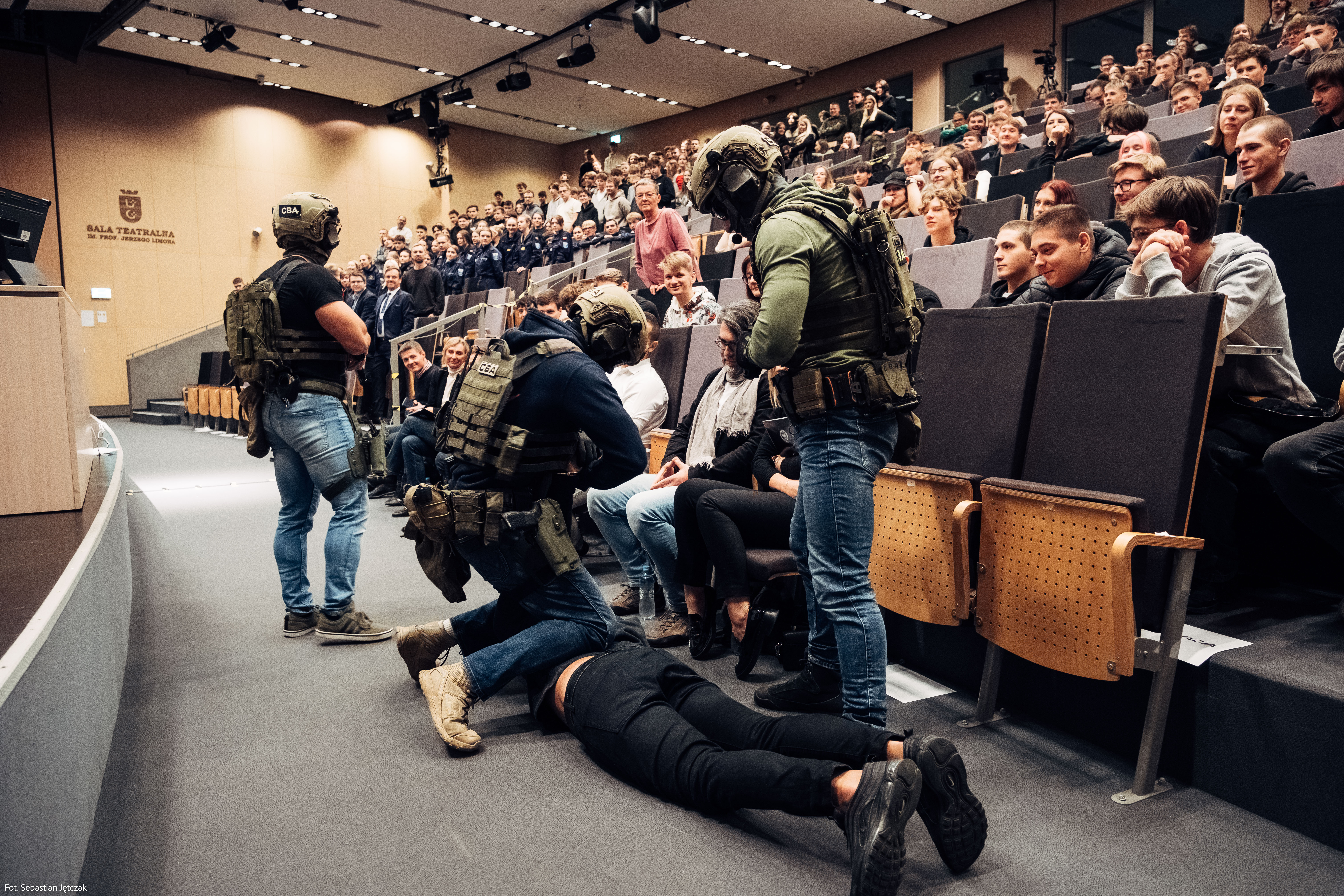 Participants in the lecture had the opportunity to see a simulation of the arrest of a suspected person, and CBA officers told what the work of the various divisions looks like: from the analytical, investigative, operational or IT divisions to the implementation division. Pupils and students also learned about the channels through which cases of corruption should be reported. Using a fictional example, a step-by-step case study on the investigation of corruption at the government level was presented.