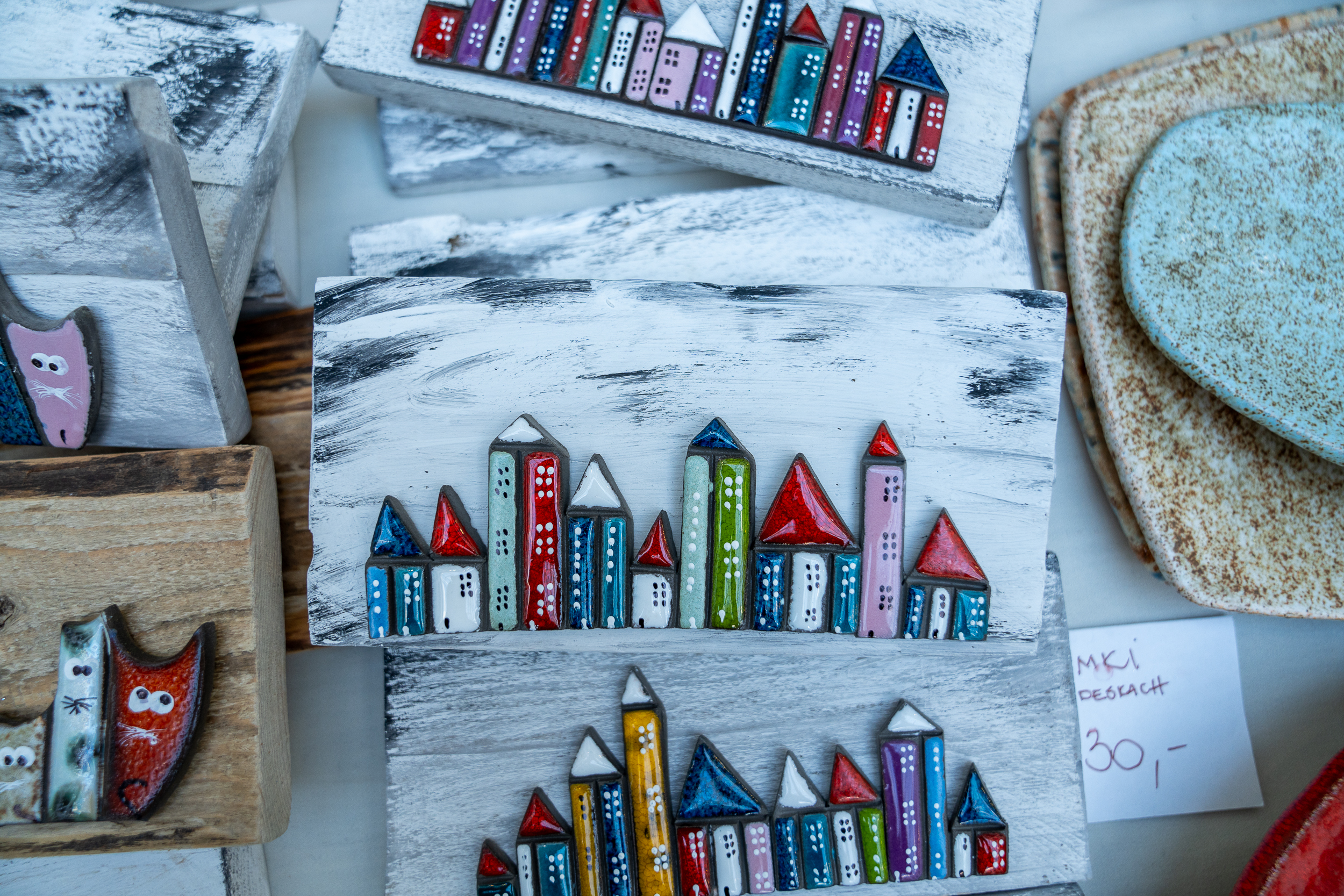 The first day of the Christmas fair at WNS was opened by the Occupational Therapy Workshop ‘TRATWA’. Despite the relatively small size of their stall, the workshop's charges presented a wide range of their works: from ceramics, to cotton bags, Christmas decorations, magnets - to artistic jewellery. There promises to be more traffic on Wednesday when there will be even more exhibitors in the WNS lobby. We decided to take advantage of a quieter moment and talk to Ewa Zduńska, in charge of the team from ‘TRATWA’ at the fair.