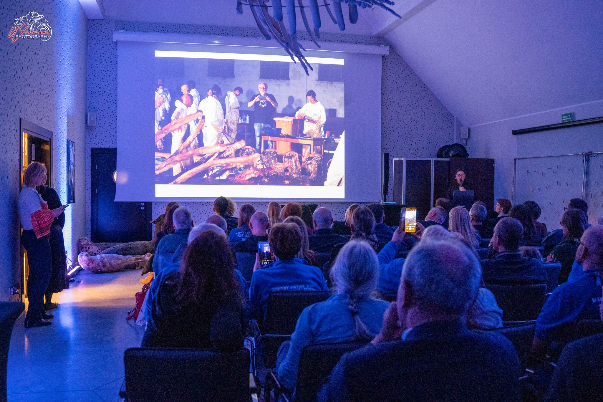 FRUG President Marzena Chojnacka and Station Manager Dr Iwona Pawliczka vel Pawlik welcomed the guests. During the event, the story of the fin whale, whose body was found on the beach in Stegna in 2015, was told. At that time it weighed about 23 tonnes and measured 17 metres and 20 centimetres. The body was examined and dissected by scientists from the Marine Station of the University of Gdańsk.