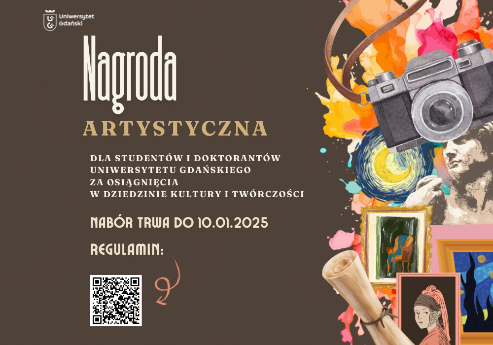 The University of Gdańsk announces the call for applications for the ‘Art Award for UG Students and Doctoral Students for Achievements in Culture and Creativity’, the originator of which is the UG Chancellor, dr hab. Aneta Oniszczuk-Jastrząbek, prof. UG.