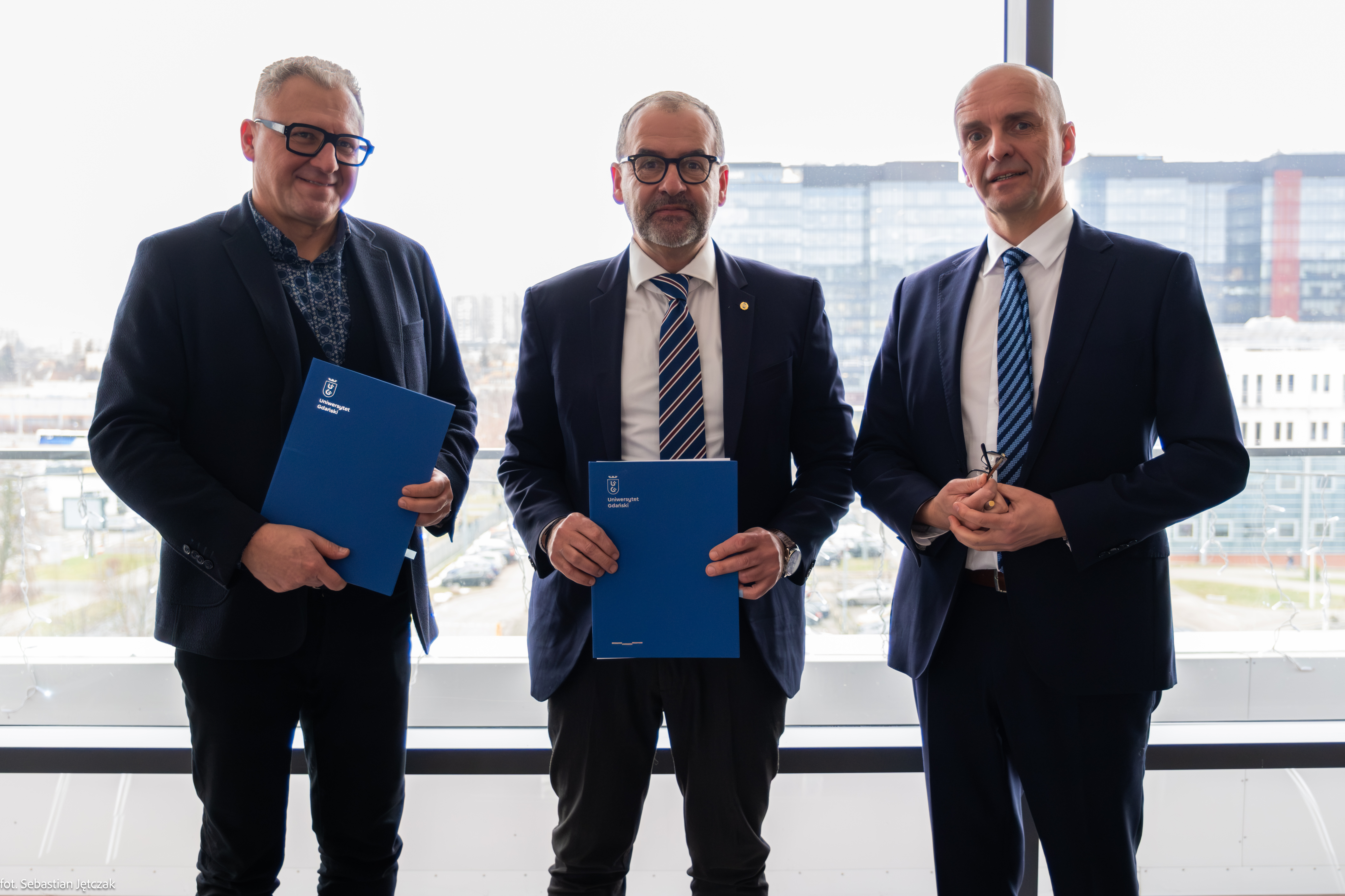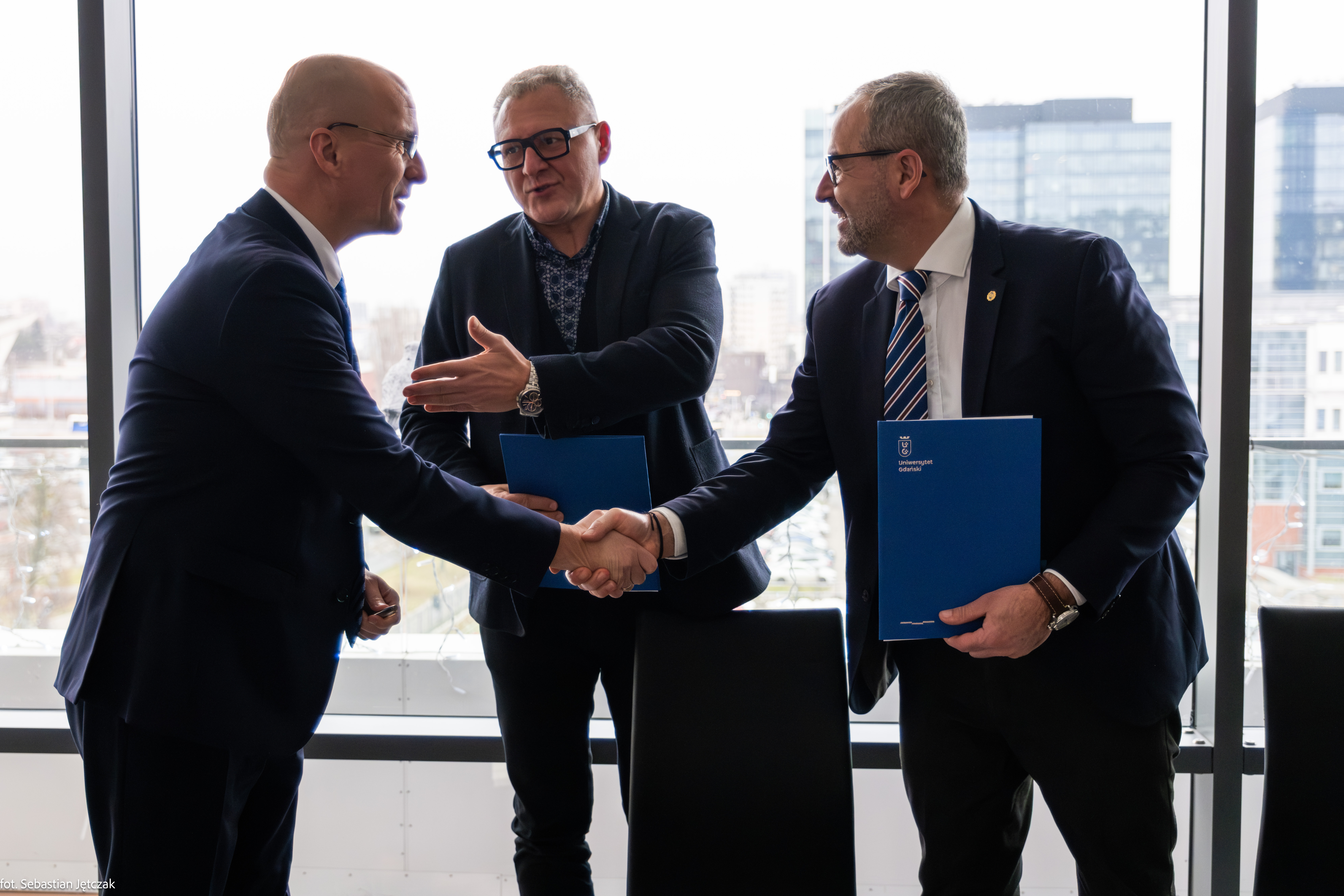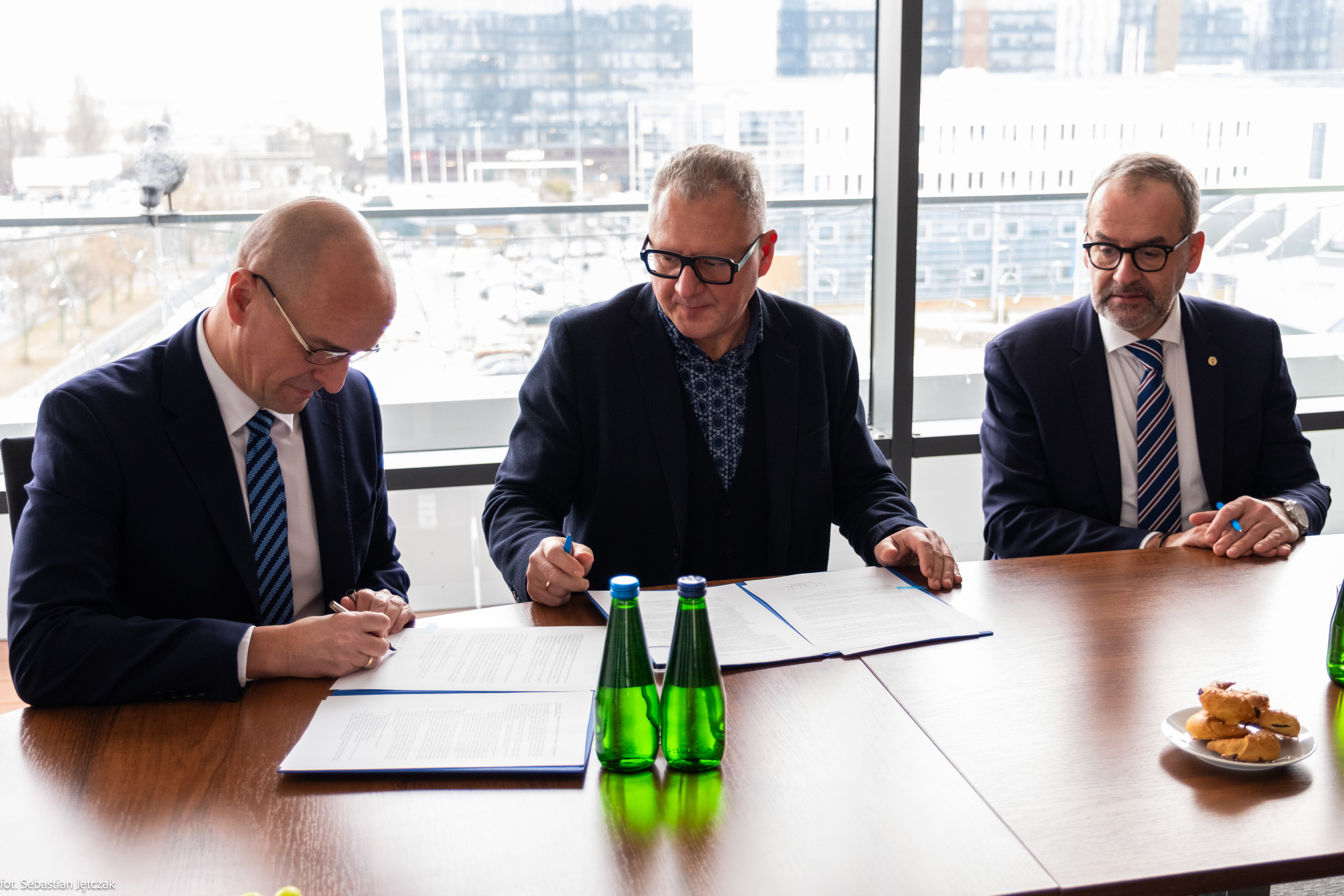 The agreement was signed by the Rector of the University of Gdańsk, prof. dr hab. Piotr Stepnowski, and representing the Pomerania Development Agency, President of the Management Board Sławomir Kosakowski and Vice-President of the Management Board Piotr Ciechowicz.