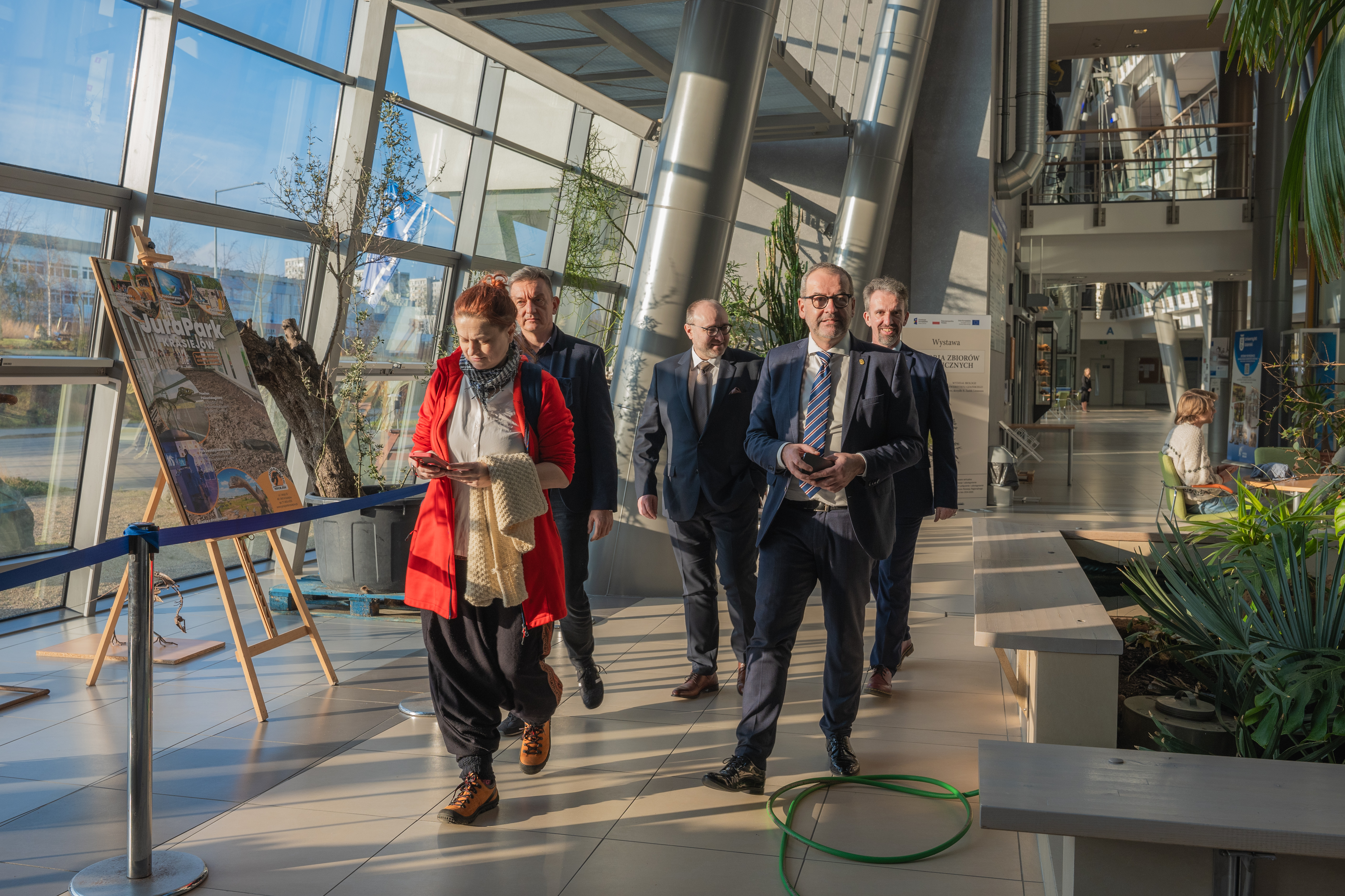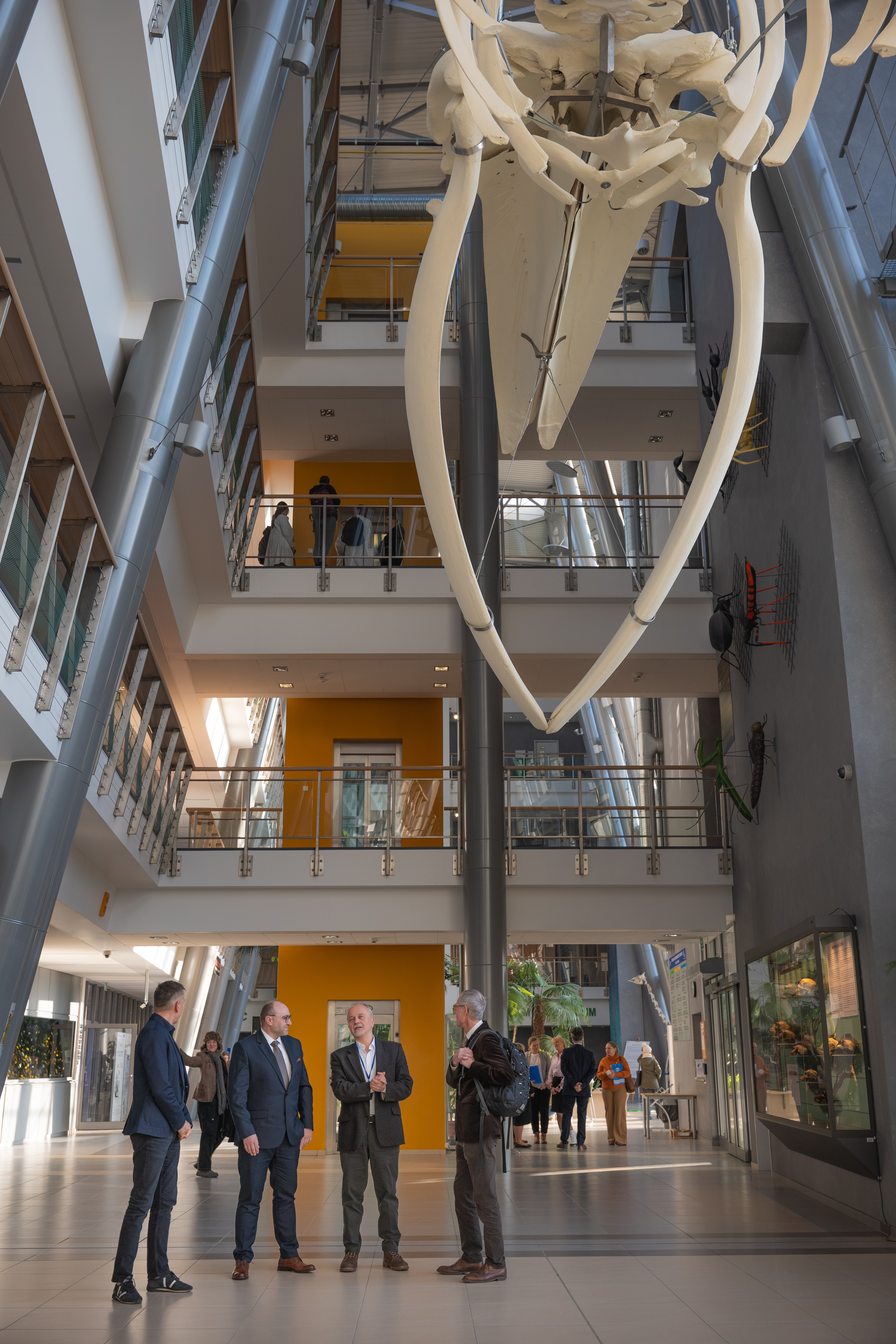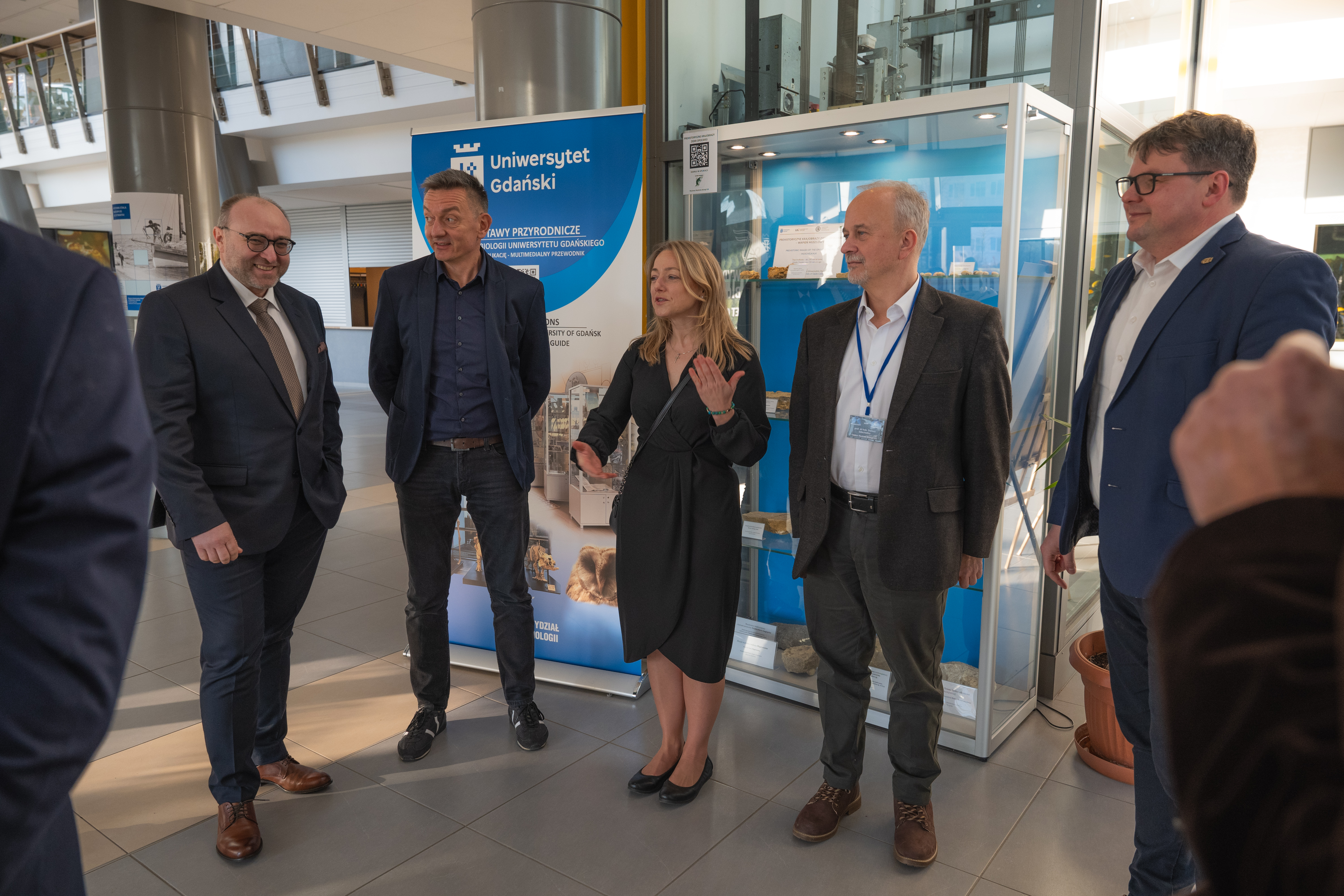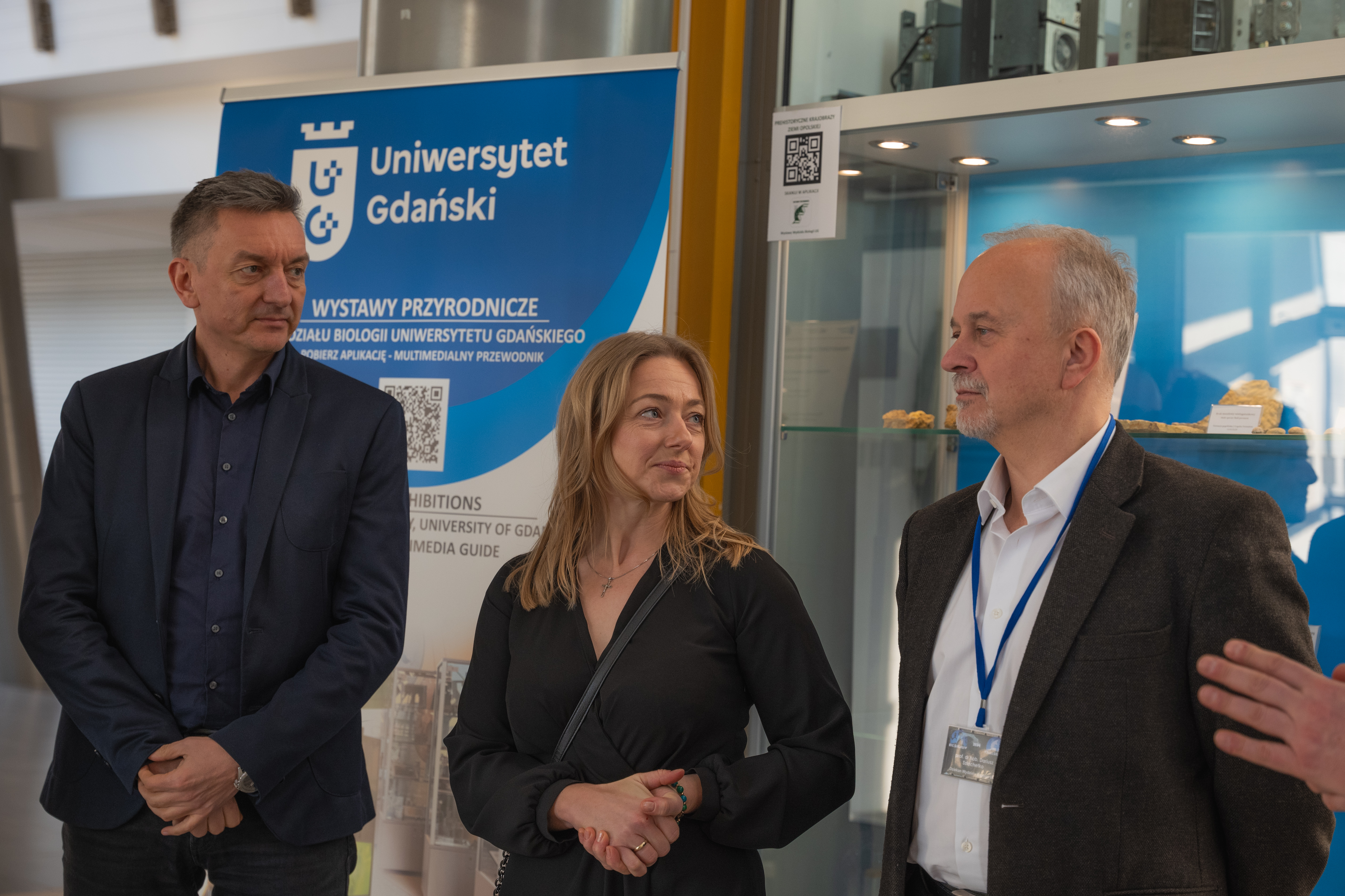 During a ceremonial meeting at the Marshal's Office, the project managers presented the project assumptions and planned activities. The guests then went to the UG campus in Oliwa to visit the educational exhibitions at the Faculty of Biology, accompanied by the Rector prof. Piotr Stepnowski, the Vice-Rector for Research prof. dr hab. Wiesław Laskowski and the Dean of the Faculty of Biology prof. dr hab. Dariusz Szlachetka. Dr Elżbieta Sontag told the audience about the Museum of Amber Inclusions and the fossil resin research conducted at the University of Gdańsk, as well as the fin whale skeleton on display in the building, which made a great impression on the guests.