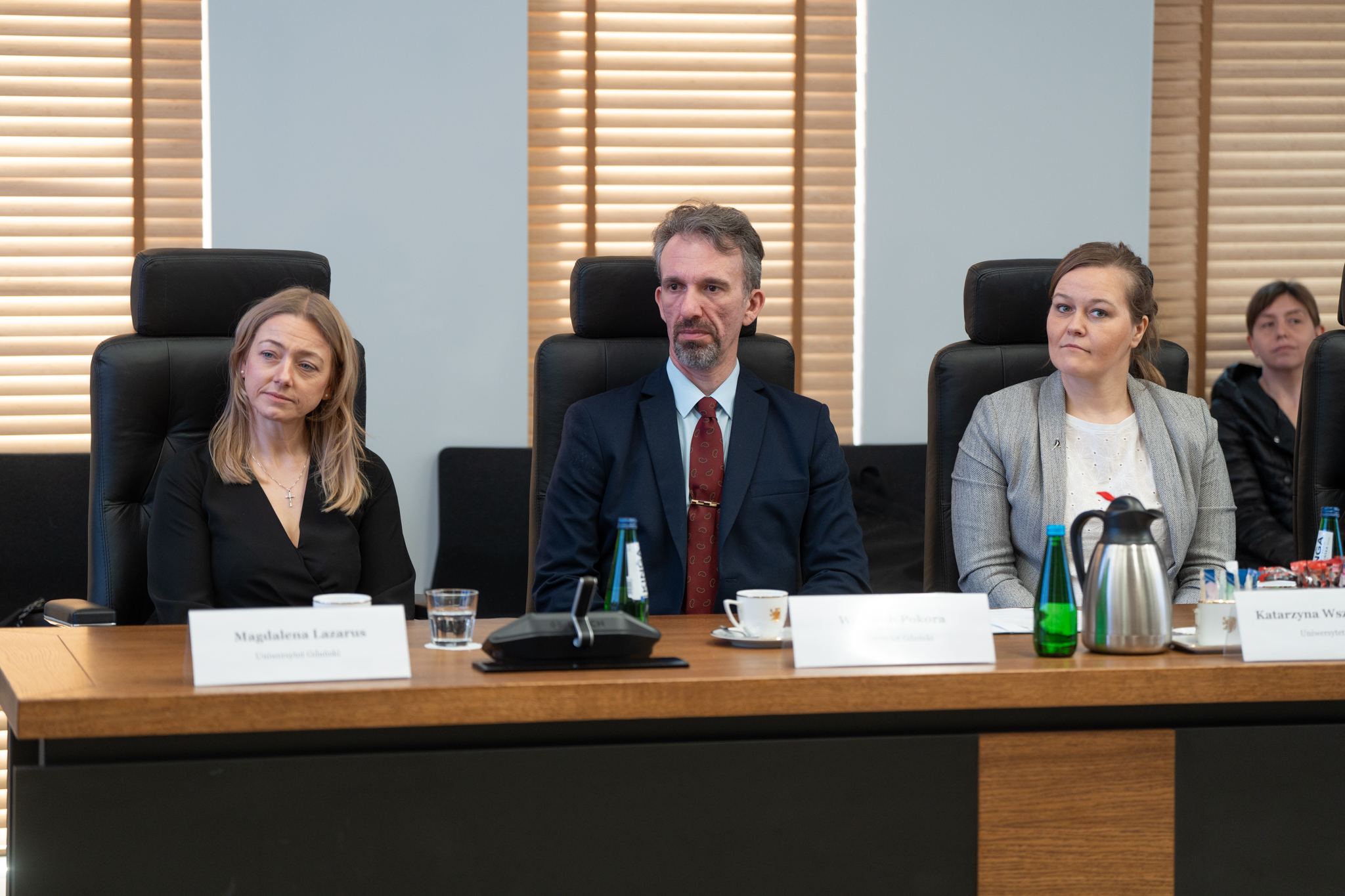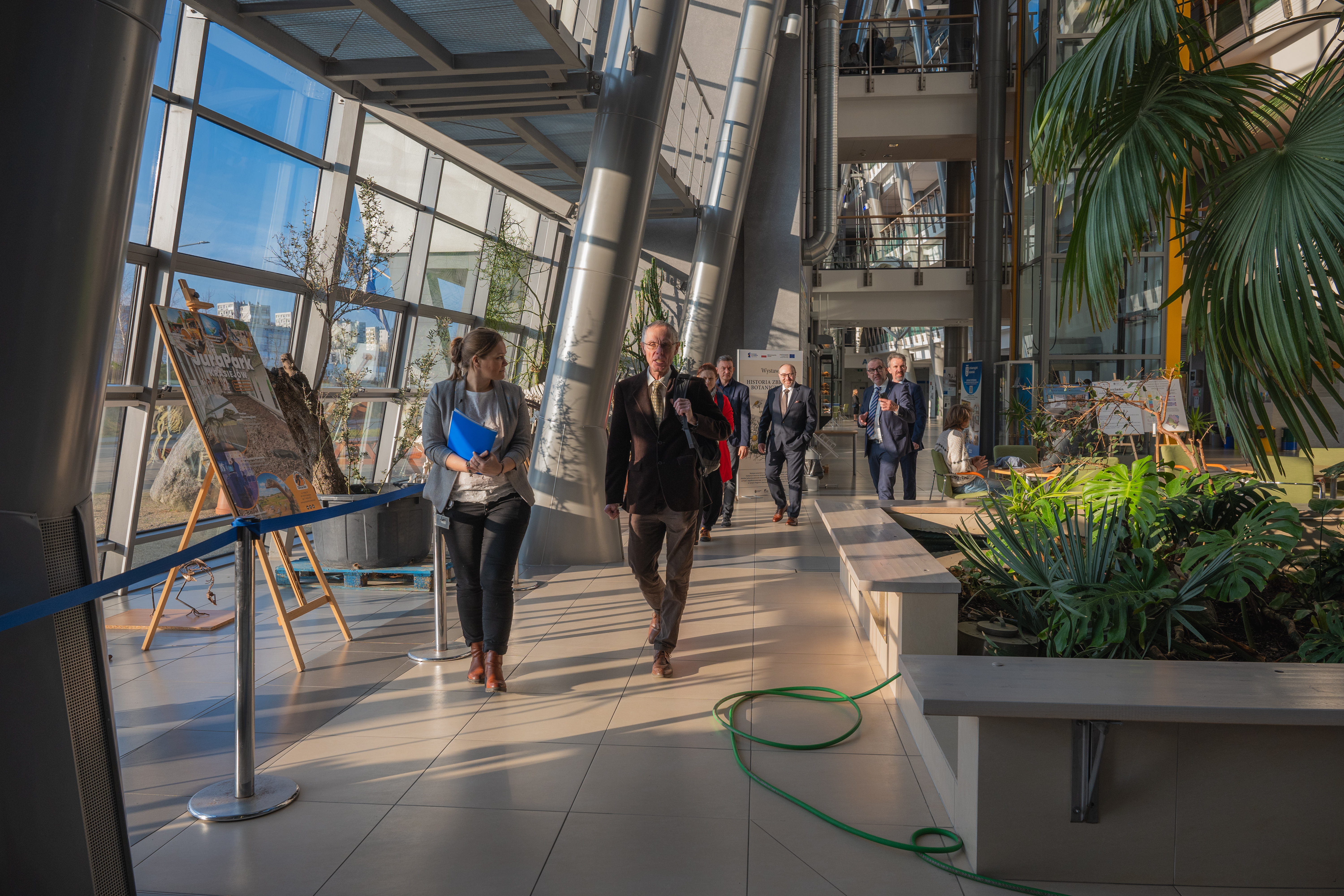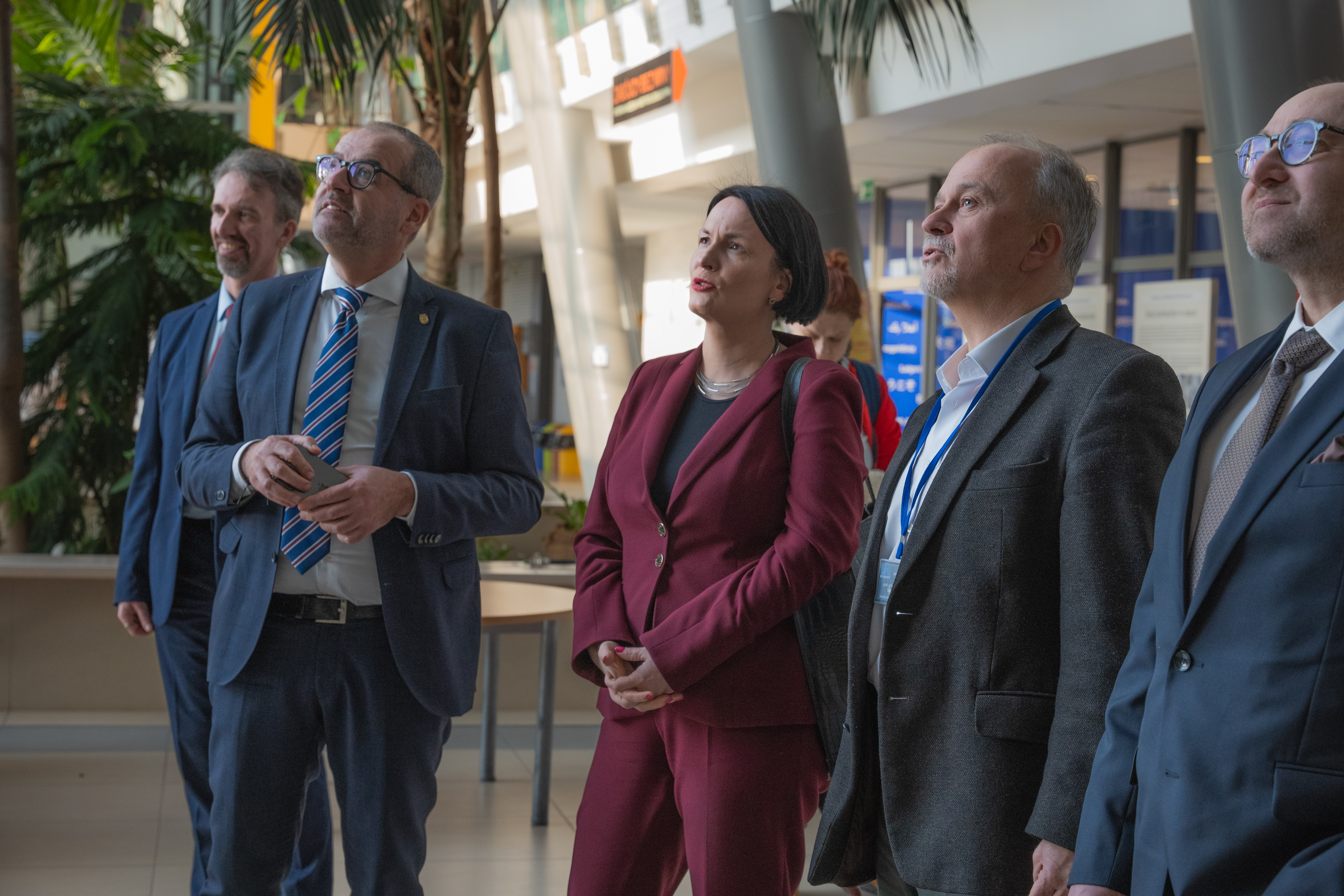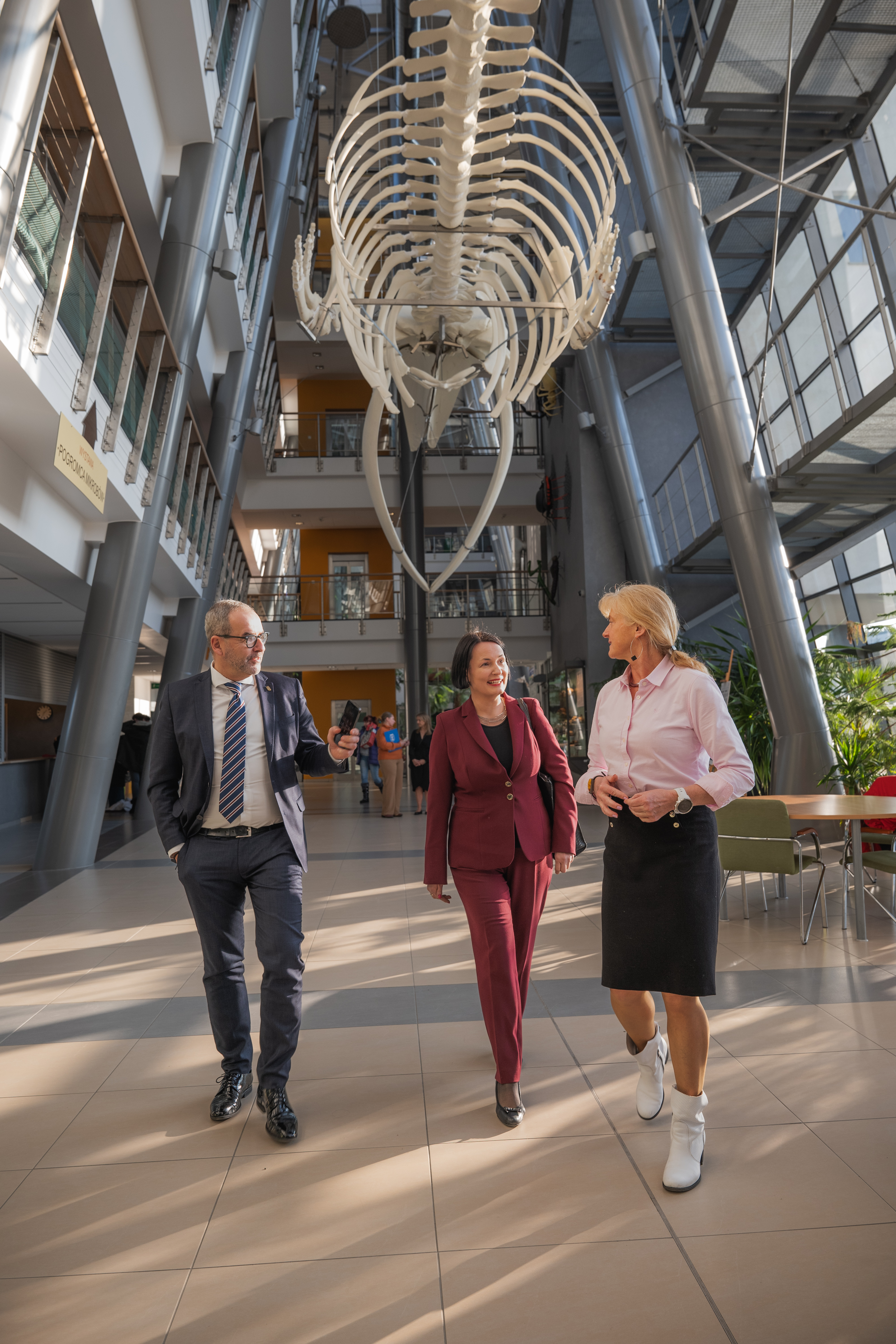 During a ceremonial meeting at the Marshal's Office, the project managers presented the project assumptions and planned activities. The guests then went to the UG campus in Oliwa to visit the educational exhibitions at the Faculty of Biology, accompanied by the Rector prof. Piotr Stepnowski, the Vice-Rector for Research prof. dr hab. Wiesław Laskowski and the Dean of the Faculty of Biology prof. dr hab. Dariusz Szlachetka. Dr Elżbieta Sontag told the audience about the Museum of Amber Inclusions and the fossil resin research conducted at the University of Gdańsk, as well as the fin whale skeleton on display in the building, which made a great impression on the guests.