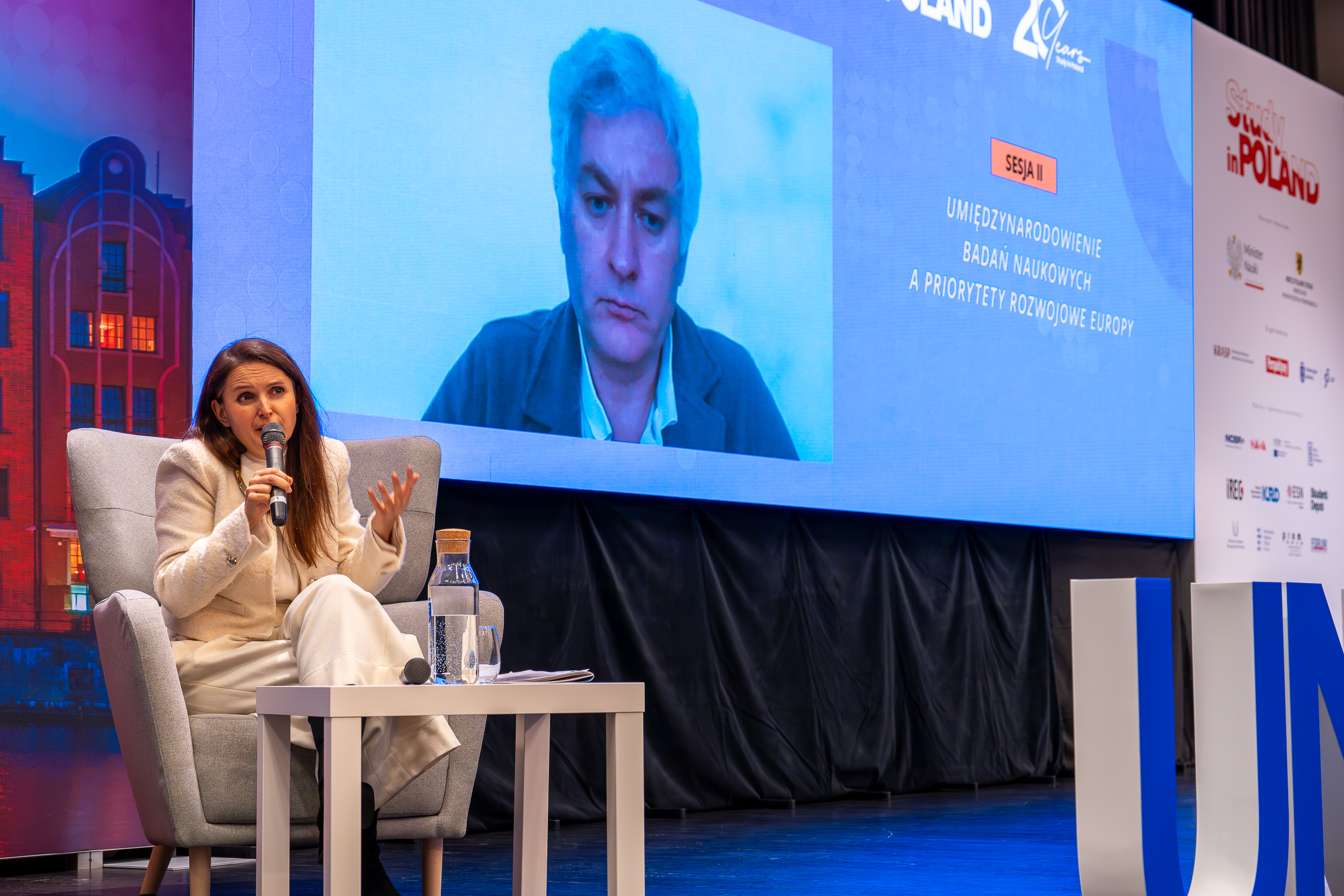 The second plenary session ‘Internationalisation of Research and Europe's Development Priorities’ discussed what changes Polish universities operating in an international environment can bring to change the way we think about the future in terms of Europe's development. Europe is facing the challenge of an urgent digital, energy or medical transformation, as confirmed by reports made in 2024. The conclusions of these reports were the starting point of the debate, which was attended by prof. Piotr Sankowski, University of Warsaw, MIM Solution, prof. Lucyna Woźniak, Vice-Rector of the Medical University of Łódź, Chairwoman of the Commission for Presidency and Cooperation with the European Commission of the CRASP, prof. Marcin Moniuszko, Rector of the Medical University of Białystok, prof. Jarosław Górniak, Vice-Rector of the Jagiellonian University for International Cooperation, and prof. Sebastian Werle, Vice-Rector for Science and International Cooperation of the Silesian University of Technology. A discussion was also held on how to nurture intellectual capital so that ambitious young people from abroad come to Poland, and so that Poles do not have to leave in pursuit of their own scientific dreams. The second plenary session was chaired by dr Bianka Siwińska, President of the ‘Perspektywy’ Educational Foundation, Head of the Quantum Computing Team at the Council for Digitalisation, Ministry of Digitalisation.