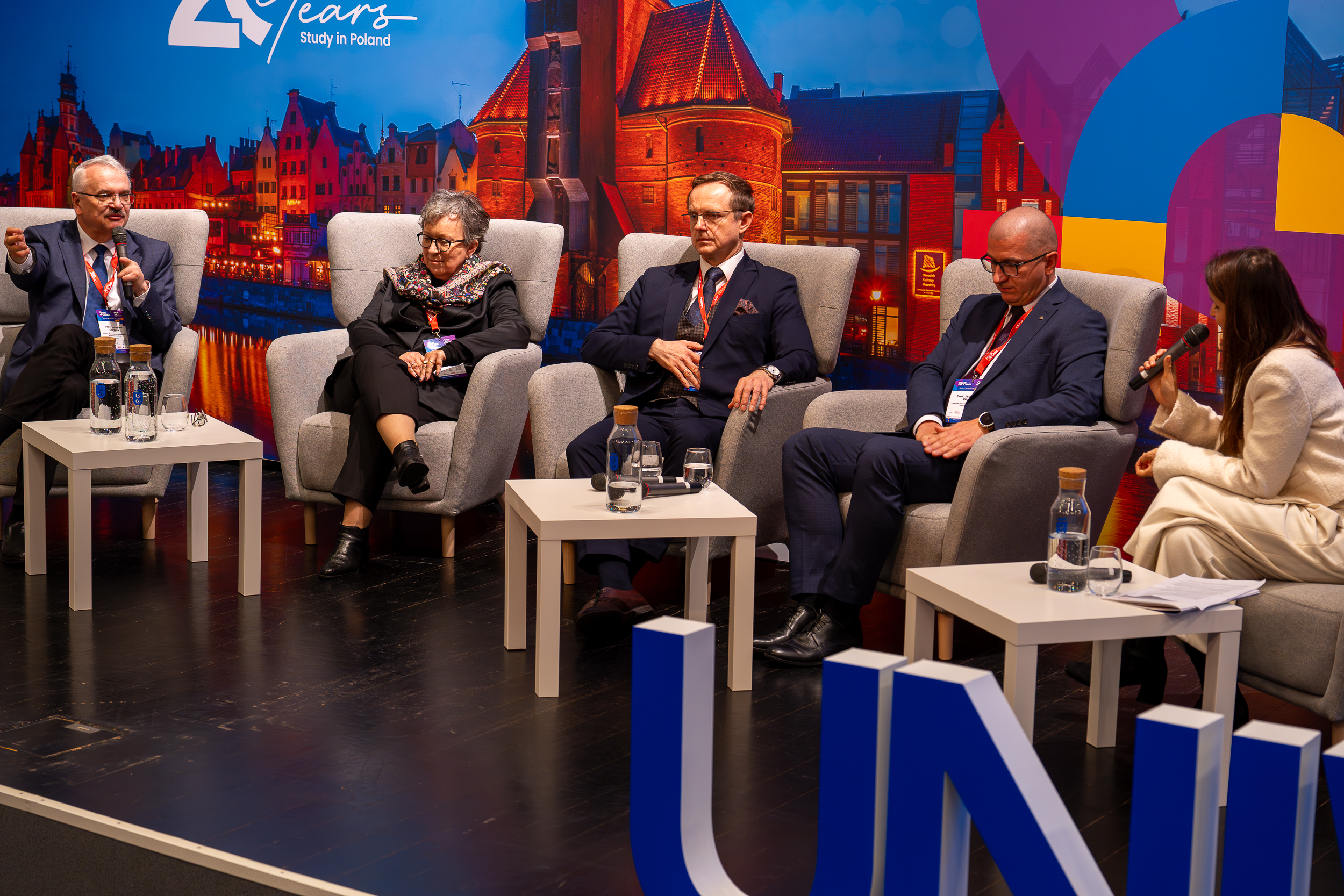 The guest of honour at the conference was Andrzej Szeptycki, Undersecretary of State in the Ministry of Science and Higher Education: - Today's conference is an attempt to summarise the previous year, which was quite dynamic and full of emotions for the academic community in connection with efforts to eliminate irregularities in the Polish visa system, in connection with work on Poland's migration strategy. This obviously had an impact on the recruitment of foreign students. A gigantic amount of work has been done in the last 20 years - we have gone from a level of a few thousand foreign students to an impressive 100,000, achieving a European average internationalisation rate of 8.7% of international students in the past year. The Minister also spoke about the crucial importance of international accreditation, the work on the European Diploma, the internationalisation of doctoral schools and the quality of service provided to international students: -It is very important that the presence of foreign students in Polish universities has a direct impact on the quality of the teaching provided in higher education institutions. Finally, he declared the readiness of the Ministry of Science and Higher Education to cooperate for the benefit of internationalisation.