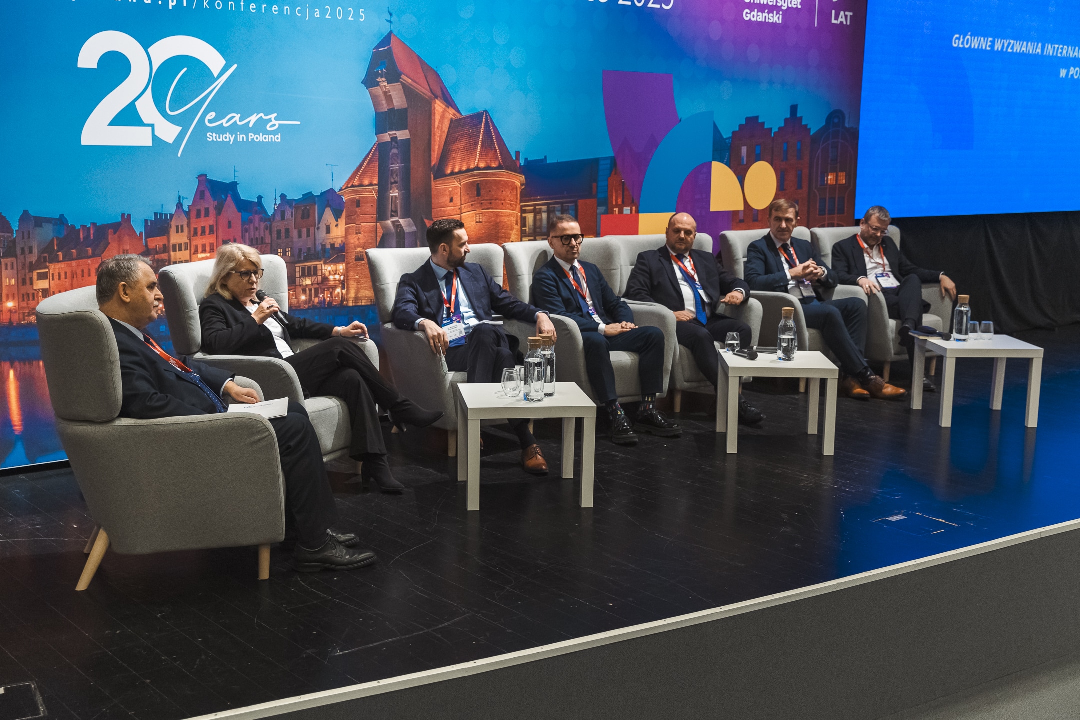 'Winter of internationalisation or just the changing conditions of internationalisation? - A look from the perspective of the NIK, the Ministry of Foreign Affairs, the Ministry of Internal Affairs and the Border Guard’ was the topic of the final plenary session held on the first day of the conference. During the session, representatives of the Ministry of Foreign Affairs, the Ministry of Interior and Administration, the Border Guard and the Supreme Chamber of Control presented an up-to-date picture of student migration to Poland, as well as identified risks and problems associated with this area. The starting point for the discussion was the difficult and responsible task of, in the context of global migration tensions, streamlining the visa process and harmonising the interests of universities with national security rationales. The introduction to the session was made by Marian Banaś, President of the Supreme Chamber of Control, which conducted a comprehensive audit of the MFA's supervision of consular activities and the visa policy implemented by the ministry in 2024. The panel also included: Justyna Chrzanowska, Director of the Consular Department, Ministry of Foreign Affairs, Tomasz Cytrynowicz, Head of the Office for Foreigners and Capt. Dorota Skrzypczyk, Deputy Director of the Board for Foreigners of the Border Guard Headquarters. The discussion was chaired by dr hab. Marta Mendel, prof. SGGW, Vice-Rector for Internationalisation, 1st Deputy Rector, Warsaw University of Life Sciences.