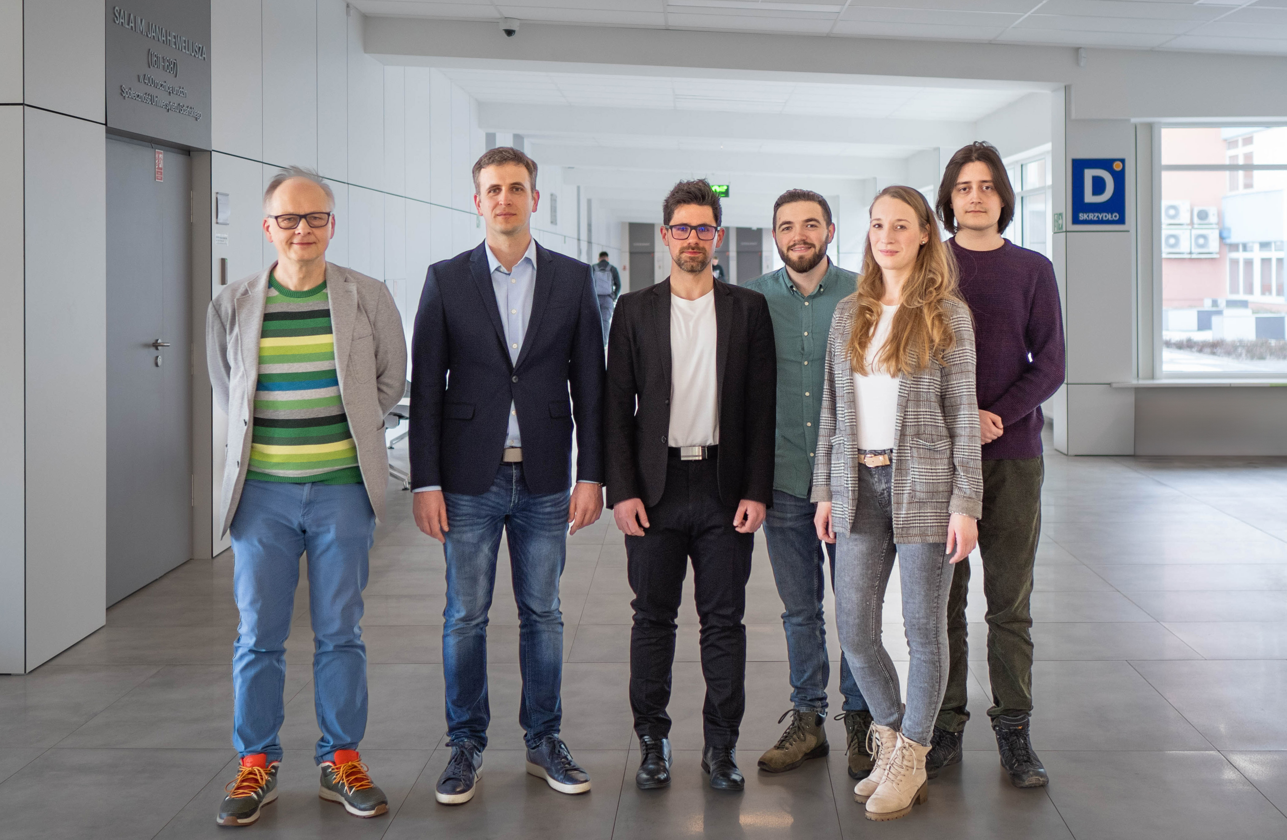 A team of researchers from the Faculty of Mathematics, Physics and Computer Science (dr Michał Mońka, dr hab. Illia Serdiuk, prof. Piotr Bojarski and mgr Radosław Rogowski) and the Faculty of Chemistry at the University of Gdańsk (dr Daria Grzywacz and dr hab. Artur Sikorski) in cooperation with Durham University and the Silesian University of Technology has made significant progress in OLED technology. Their latest article in the prestigious journal ASC Applied Materials & Interfaces (200 points) describes the details of the invention, which has a chance to be implemented in the so-called fourth generation of OLEDs. Dr Michał Mońka talks about the innovation.