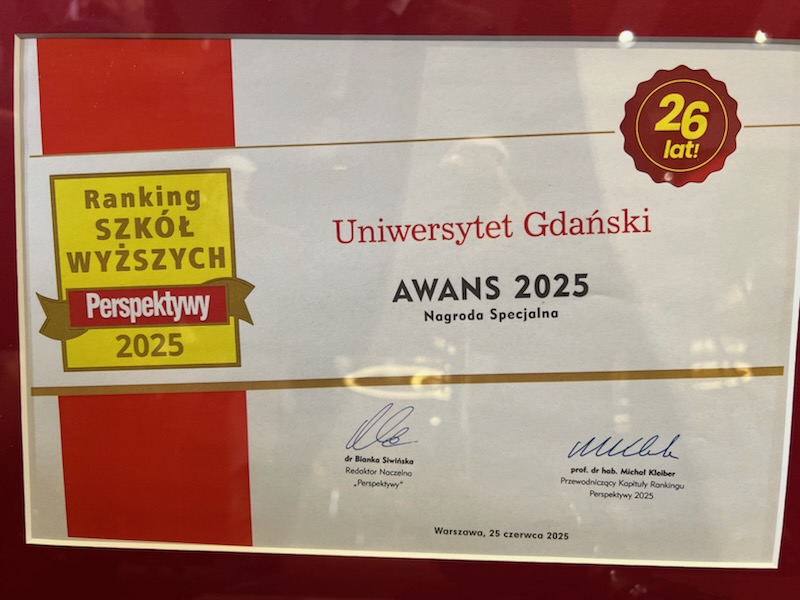 ‘I would like to thank the entire academic community of the University of Gdańsk for this success - it is our joint achievement and the foundation for future challenges!’ summed up Rector prof. Piotr Stepnowski.