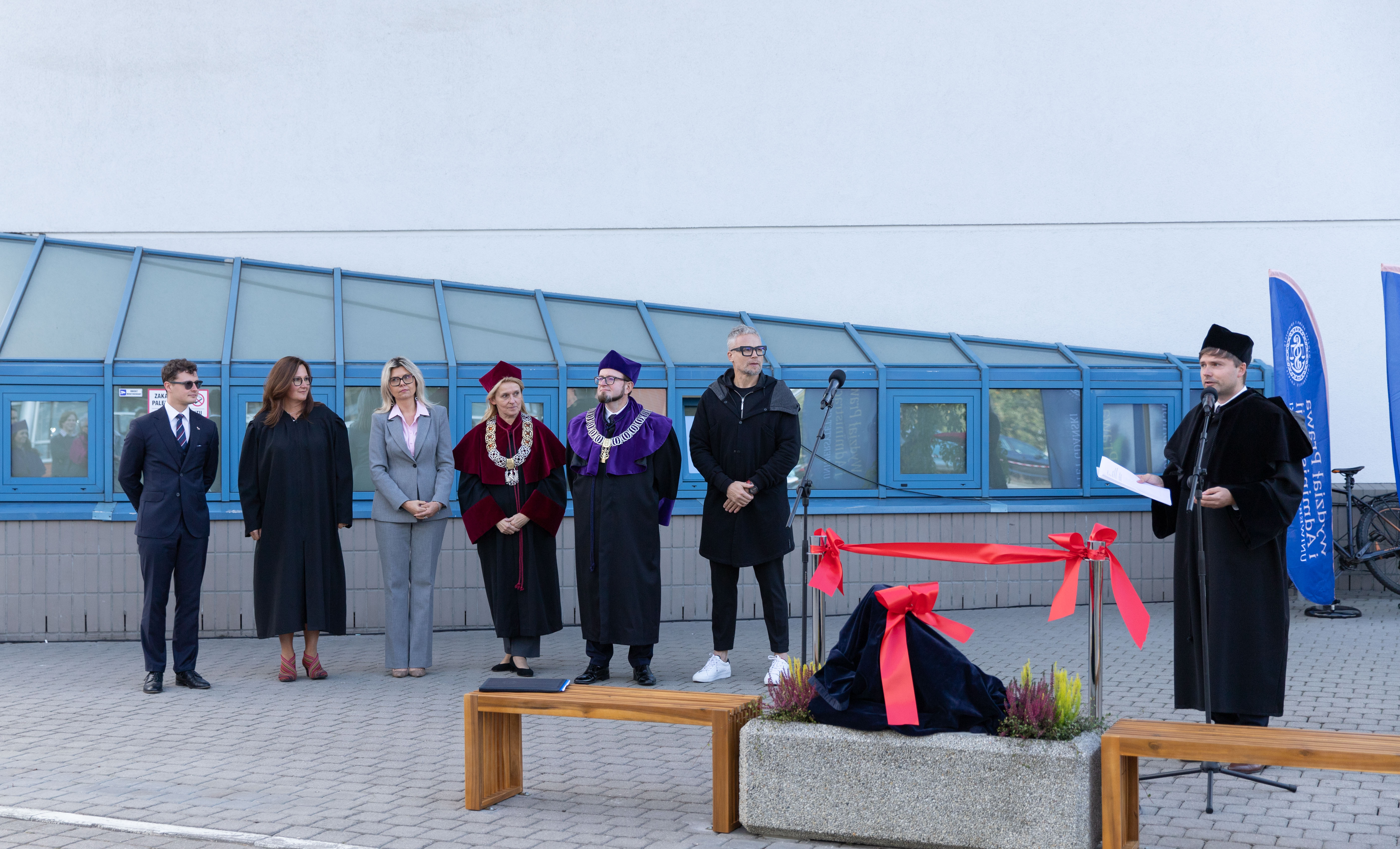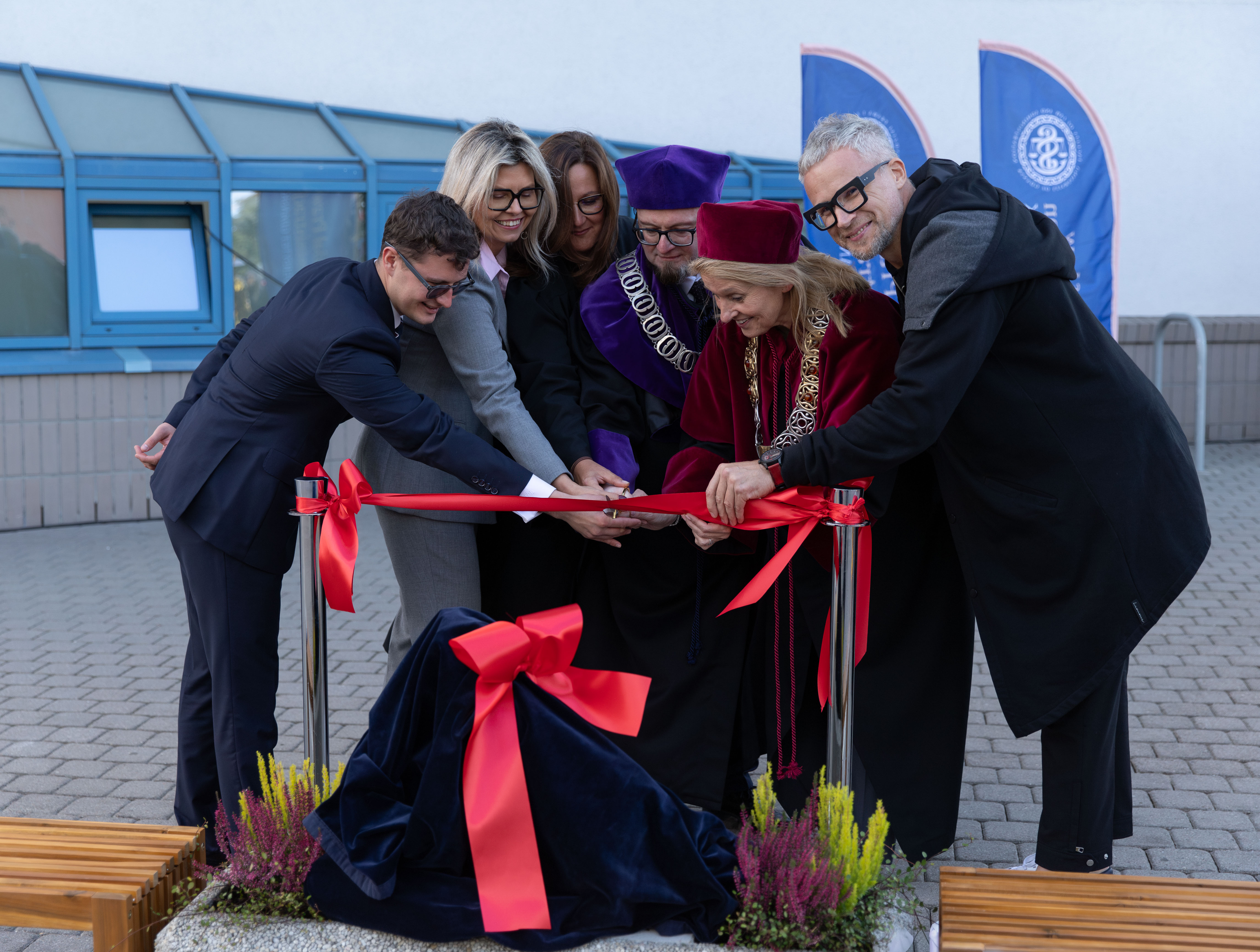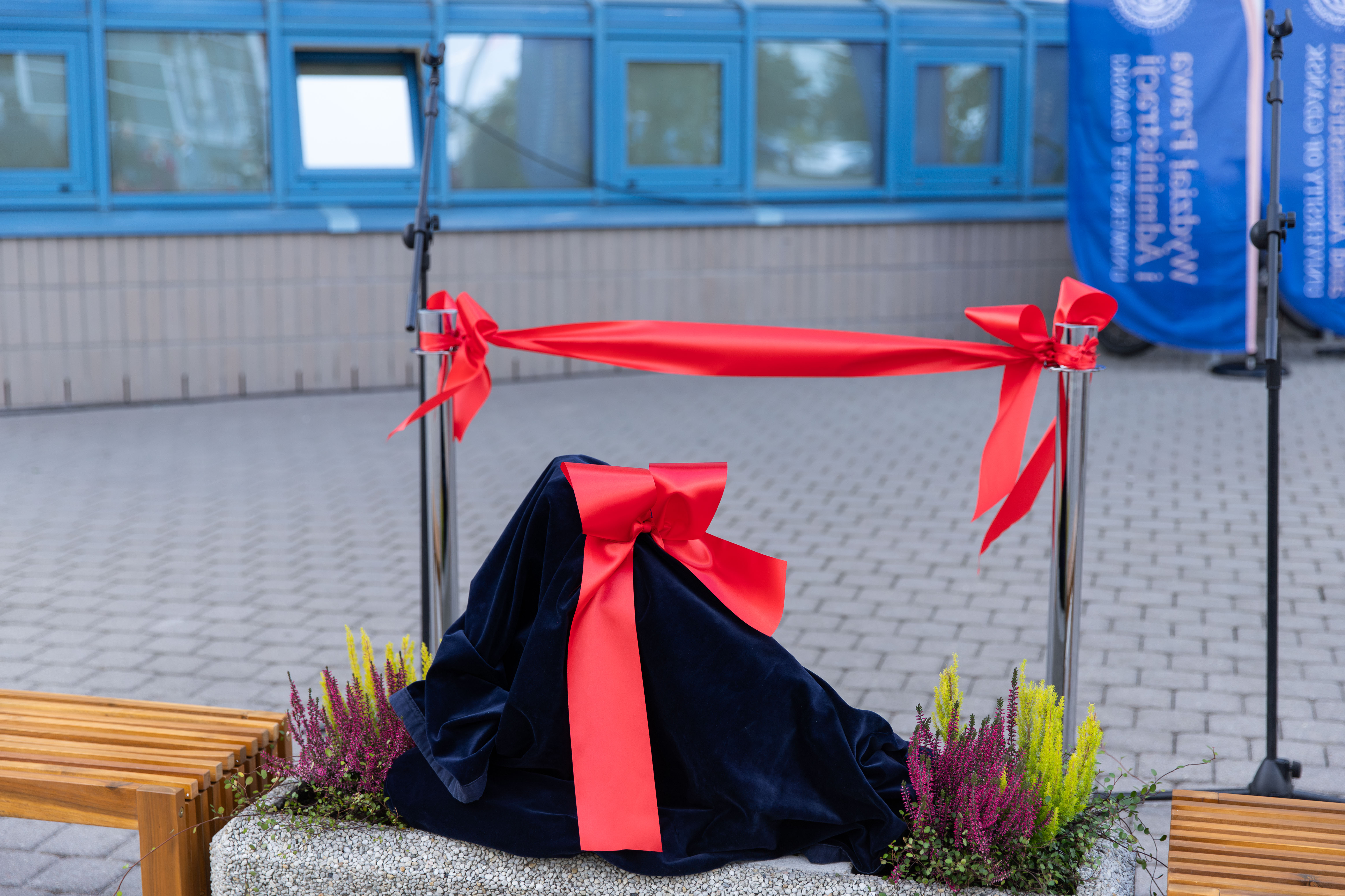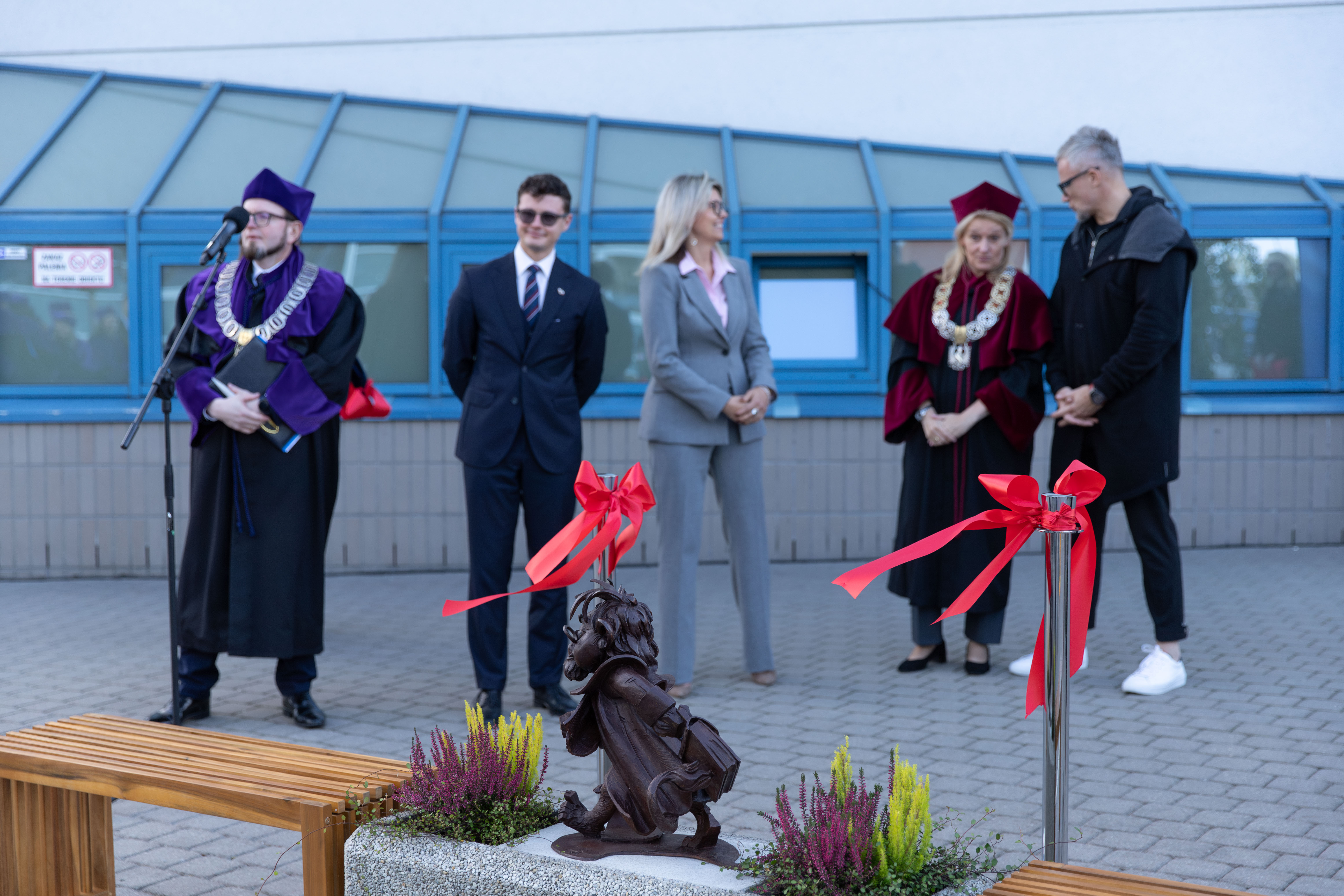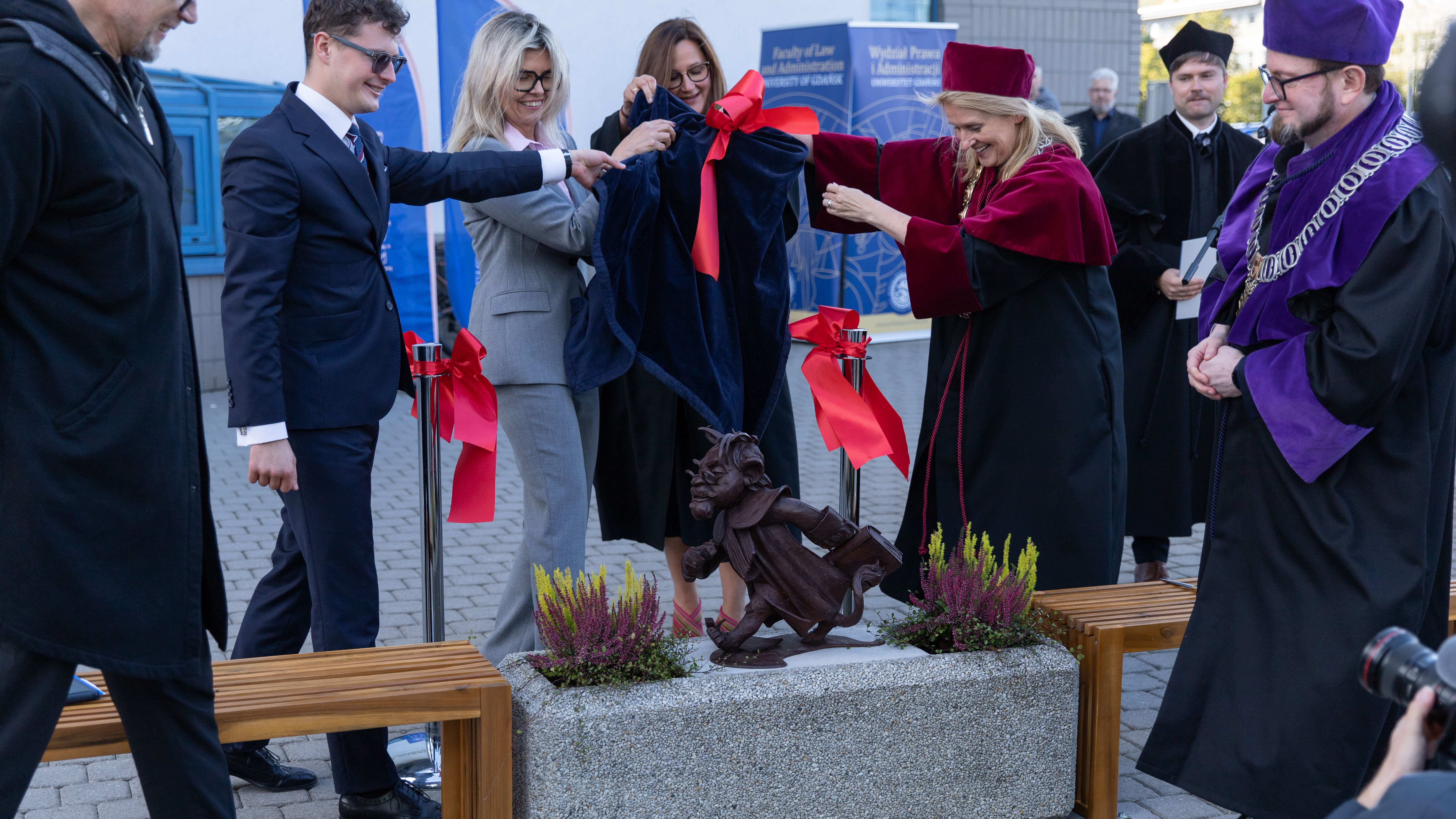 The unveiling of Hewelion was attended by, among others: Vice-Rector for Student Affairs dr hab. Urszula Patocka-Sigłowy, prof. UG, Chancellor of the University of Gdańsk dr hab. inż. Aneta Oniszczuk-Jastrząbek, prof. UG, Dean of the Faculty of Law and Administration dr hab. Wojciech Zalewski, prof. UG, Vice-Dean for Education at the Faculty of Law and Administration dr hab. Małgorzata Balwicka-Szczyrba, prof. UG, Head of the Dean's Office at the Faculty of Law and Administration Katarzyna Rynkowska, and a representative of the Student Council Wiktor Jakiel.
