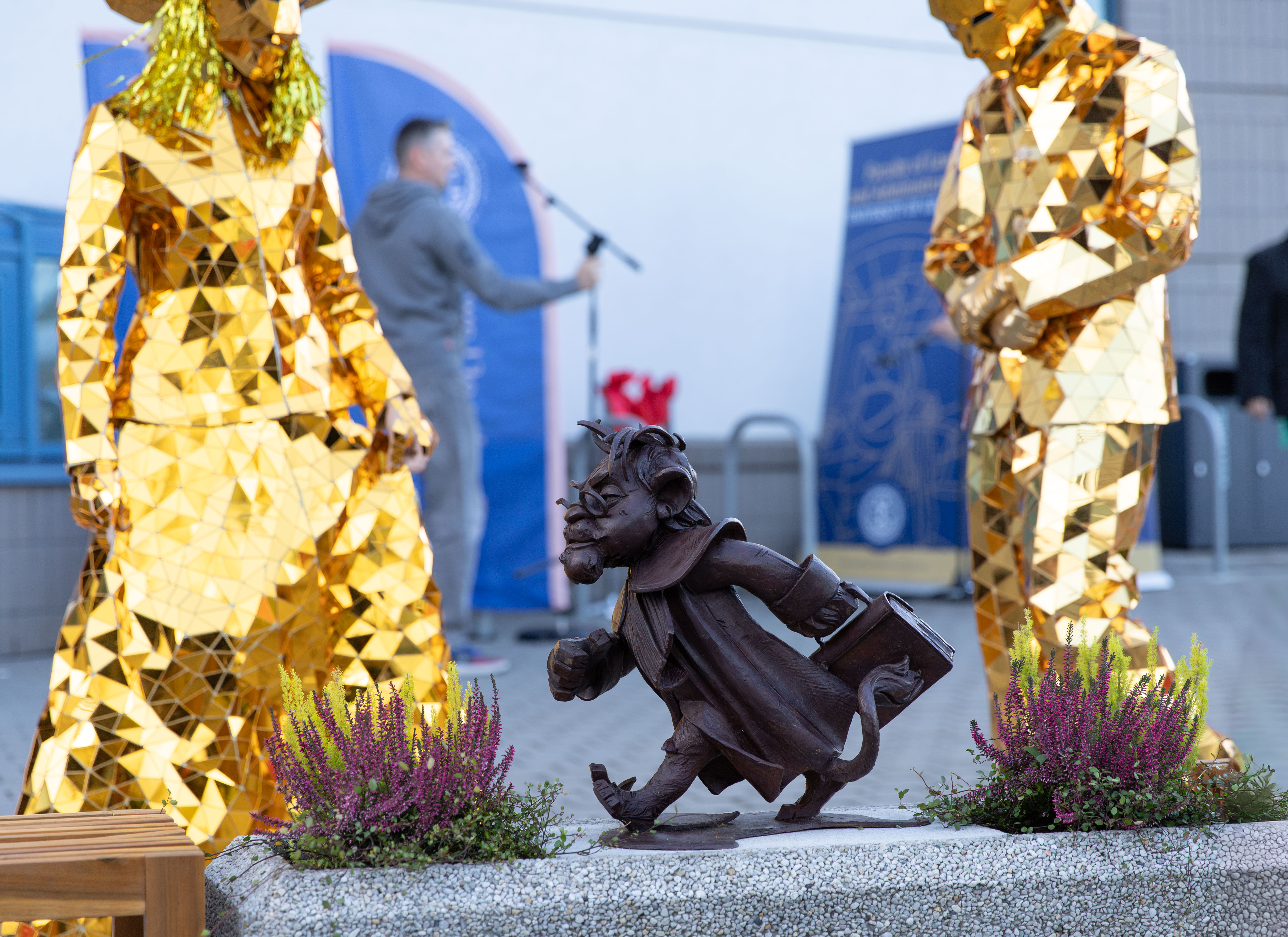 ‘Tomasz Radzewicz is a wonderful artist with a vision,’ said dr hab. Wojciech Zalewski, prof. UG, Dean of the Faculty of Law and Administration, during a conversation with the Communication and Promotion Centre. ‘He is able to perfectly capture the movement and dynamics of the characters. Our lion has windblown hair, a windblown toga, he is carrying a briefcase, he is depicted in a dynamic pose. This sculpture tells a whole story. He had to stand in front of the faculty like this, because our faculty is also dynamic.’