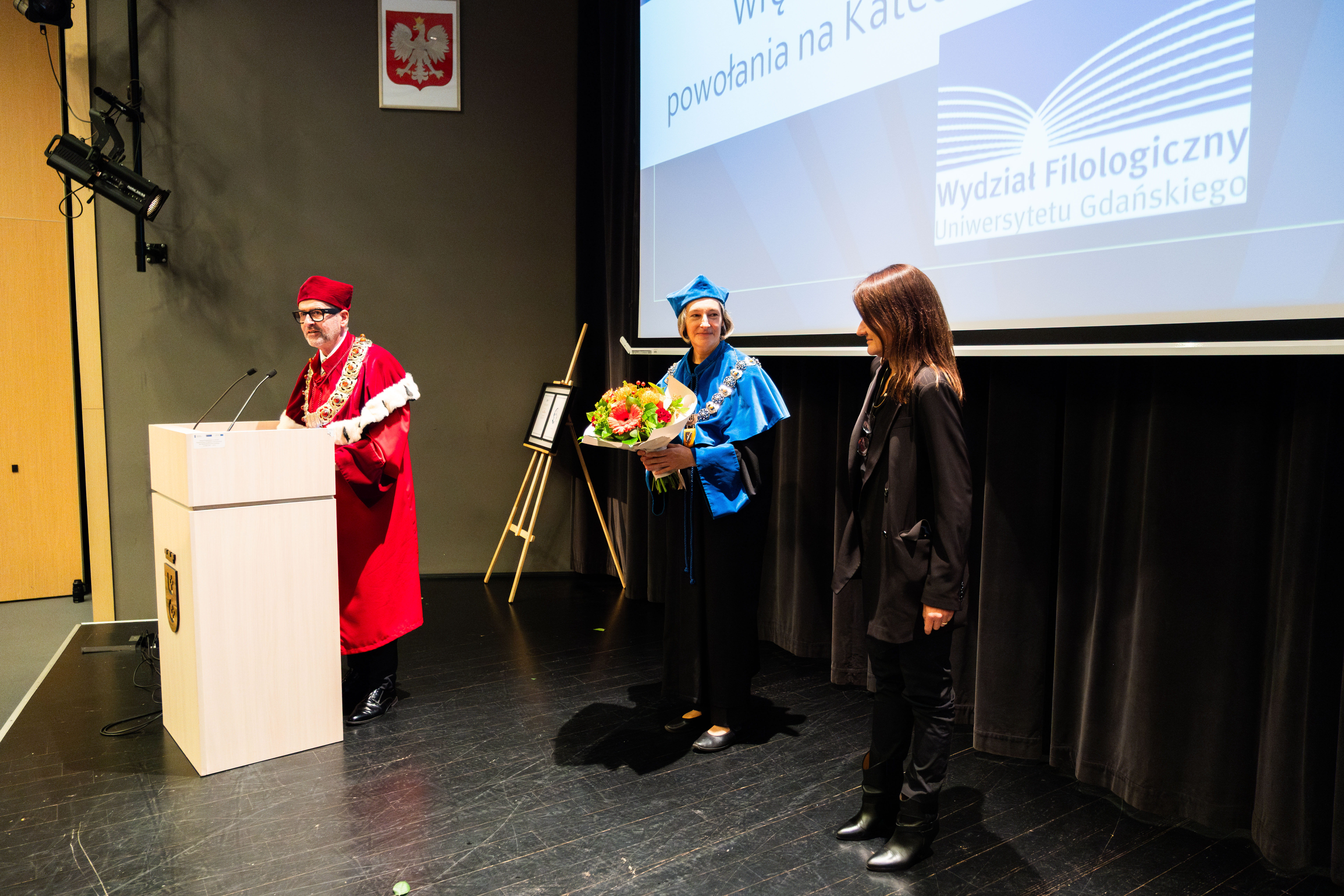 Prof. Dorota Sajewska, an outstanding theatre scholar, has taken over the Named Chair of Honour of Prof. Maria Janion at the University of Gdańsk. The ceremonial bestowal of the Chair took place after the inauguration of the academic year at the Faculty of Languages of the University of Gdańsk in a unique location: the Prof. Jerzy Limon Theatre Hall.