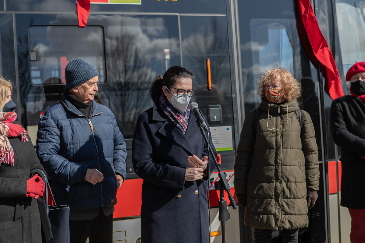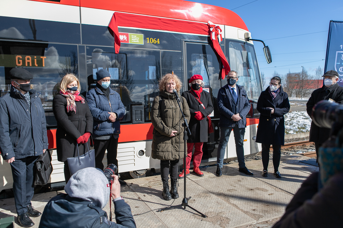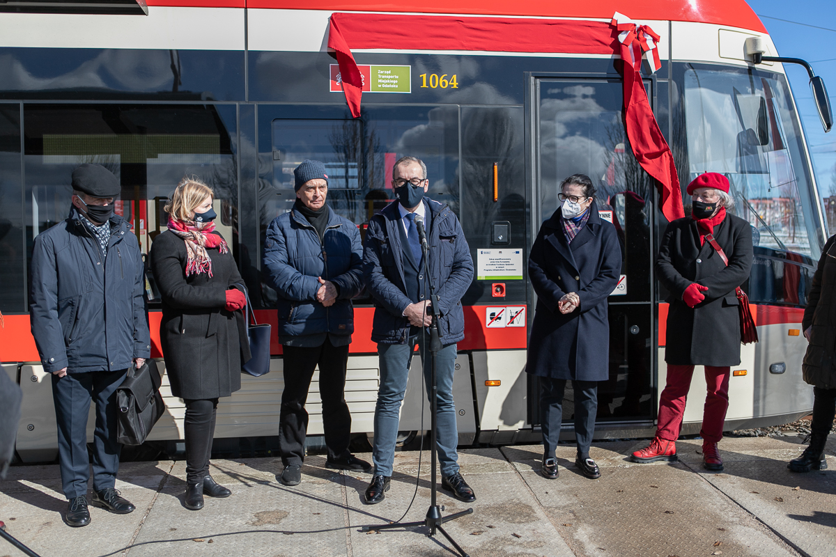 The ceremony of naming the tram after prof Janusz Sokołowski. Photo: Arkadiusz Smykowski / UG