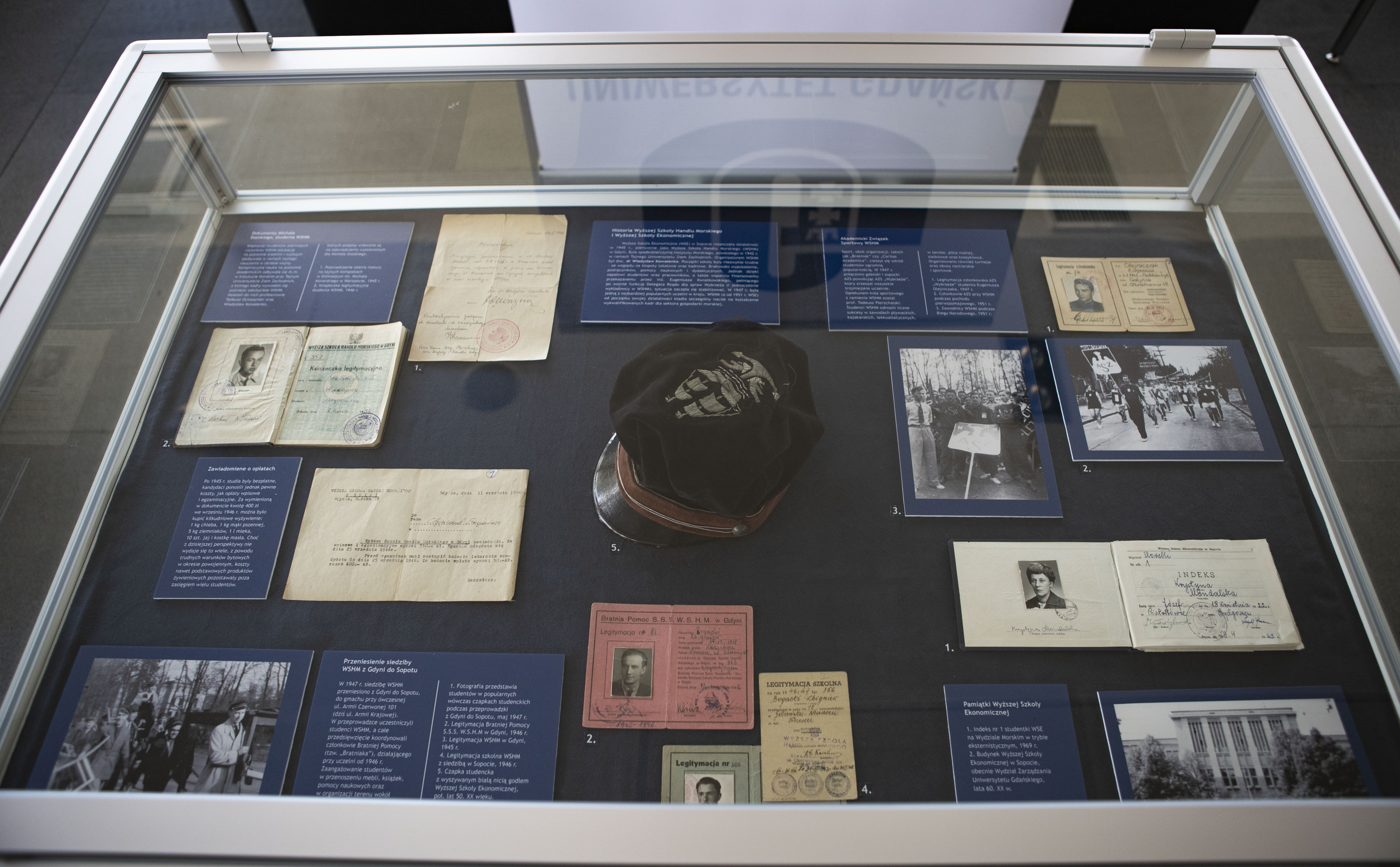 The latest temporary exhibition, prepared by the University of Gdańsk Museum, entitled 'Droga do Uniwersytetu. Uniwersytet Gdański i jego poprzedniki 1945-1970', presents selected fragments of the history of the Higher School of Education in Gdańsk, the Higher School of Maritime Commerce, the Higher School of Economics in Sopot and the first year of operations of the University of Gdańsk. Symbolically, it concludes the celebrations of the 50th anniversary of the University of Gdańsk.