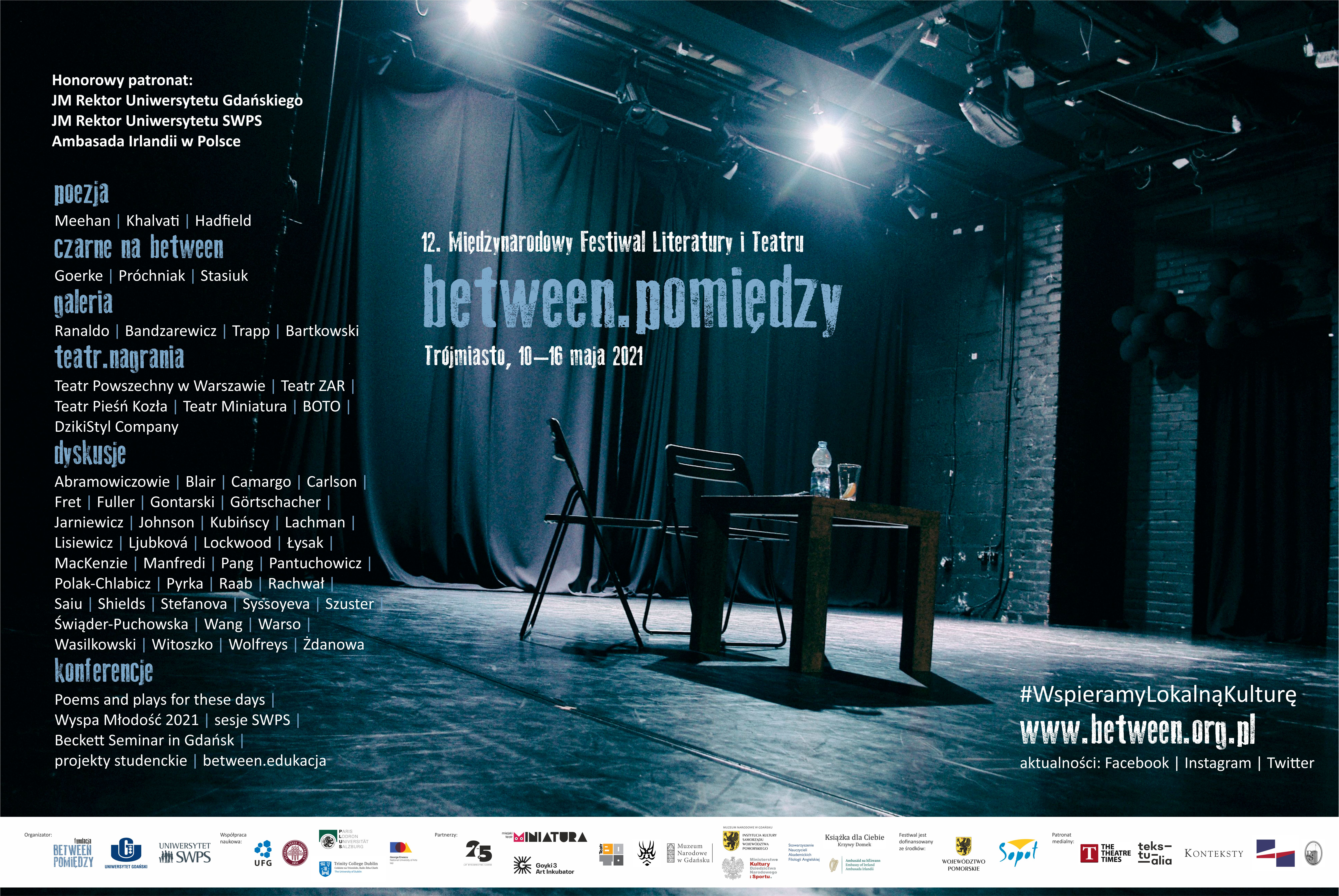 Festiwal Literatury i Teatru Between Pomiędzy po raz drugi odbędzie się w przestrzeni wirtualnej. W 12 edycji wydarzenia od 10 do 16 maja 2021 zaplanowano spotkania autorskie z poetami, pisarzami i tłumaczami, prezentacje nagrań teatralnych, premierę słuchowiska radiowego, dyskusje, a także projekty studenckie, konferencje i seminaria. Festiwal upowszechniania badania humanistyczne oraz współpracę artystów, badaczy i wszystkich zainteresowanych literaturą i teatrem.
