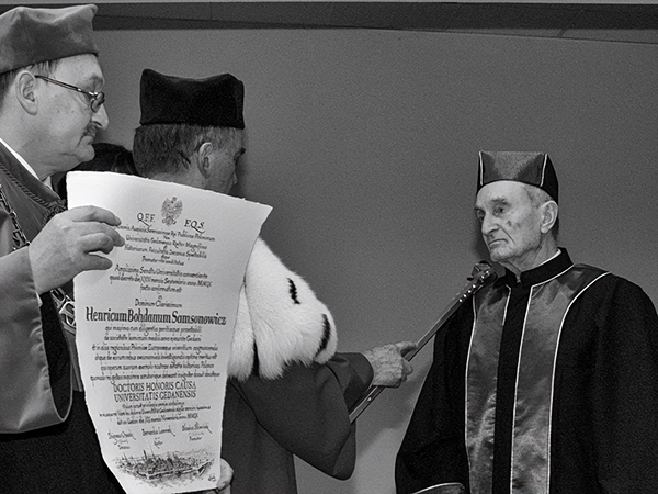 19 listopada 2009 roku, na Wydziale Historycznym UG, na uroczystym posiedzeniu Senatu UG, profesorowi dr hab. Henrykowi Samsonowiczowi, nadano tytuł doktora honoris causa Uniwersytetu Gdańskiego. Było to uznanie „wybitnego wkładu w poznanie dziejów społecznych i gospodarczych późnośredniowiecznego Gdańska, Polski i Europy oraz wiodącej roli w kształtowaniu nowoczesnej polskiej nauki historycznej”. Laudatorem w przewodzie doktorskim był profesor dr hab. Błażej Śliwiński (Uniwersytet Gdański).