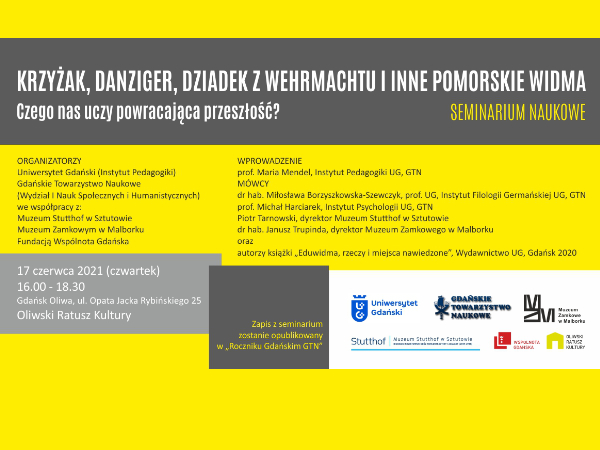 - Tematyka seminarium wyrażona jest w jego tytule: „Krzyżak, Danziger, Dziadek z Wehrmachtu i inne pomorskie widma. Czego nas uczy powracająca przeszłość?”. Głosy zaproszonych do dyskusji osób, wśród nich dyrektorów pomorskich muzeów, czy znawczyni danzigerskich pamiętników, pozwolą na rozwinięcie refleksji wokół postawionej w tytule kwestii. Istotne w dyskusji będzie rozumienie widm, w szczególności ich edukacyjnego działania, przedstawione w książce „Eduwidma, rzeczy i miejsca nawiedzone” (Wydawnictwo UG, Gdańsk 2020), której autorzy również zabiorą głos podczas seminarium – mówi prof. dr hab. Maria Mendel, kierownik Zakładu Pedagogiki Społecznej Wydziału Nauk Społecznych Uniwersytetu Gdańskiego.