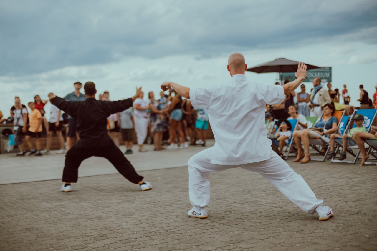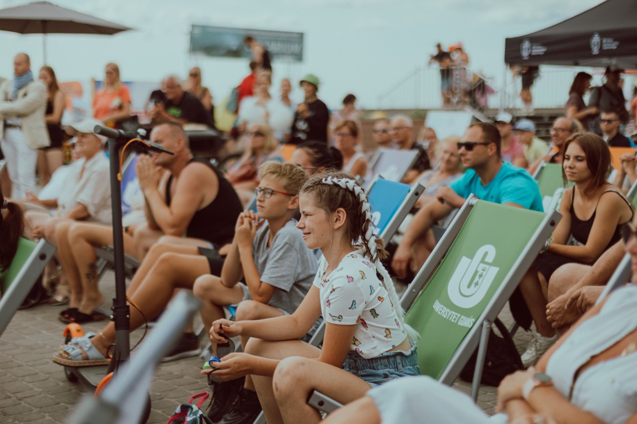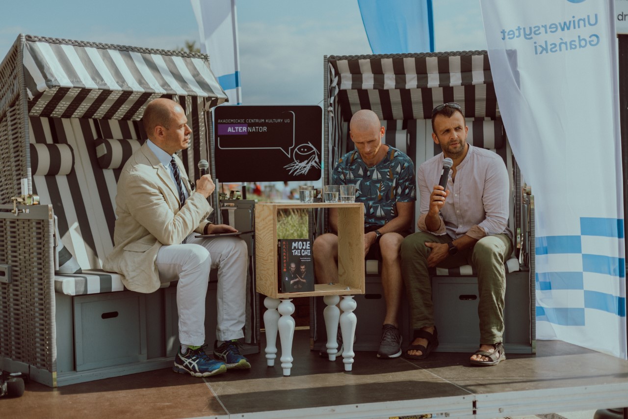 Dla starszych natomiast, atrakcją były spotkania autorskie, które zaczęły się od pokazu tai-chi w wykonaniu dr hab. Pawła Antonowicza, prof. UG oraz Mateusza Kajnatha. Zainteresował on ogromną liczbę osób, które obserwowały występ. Po pokazie obaj panowie opowiadali także o swojej książce pt. Moje tai-chi. Podczas kolejnych spotkań autorskich wystąpił prof. Jerzy Zajadło z Wydziału Prawa i Administracji UG, opowiadając o swoich ostatnich publikacjach pt. Sędziowie i niewolnicy oraz Minima Iuridica. Z kolei o swoich książkach rozmawiali z publicznością także Rafał Król i Wojciech Przylipiak. Ich najnowsze książki były dostępne na letnim stoisku Wydawnictwa UG. Spotkania zorganizowane przez ACK z UG były miłą odskocznią od turystycznego zawirowania w Helu w szczycie sezonu i miejscem wytchnienia na kolorowych, uniwersyteckich leżakach.