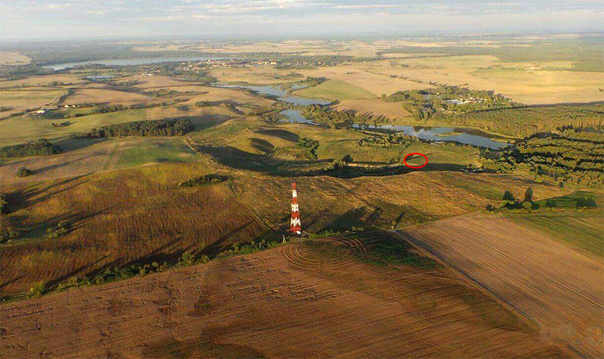 - Obiekt, o którym mówimy, to okrągła budowla o średnicy około 50 m, w formie wału o konstrukcji z dębowych pali tworzących szkielet wypełniony gliną i osłonięty od góry dachem. Otaczał ją głęboki rów o przekroju w kształcie litery V o głębokości obecnie około 2 m i szerokości w górnej części około 2,5 – 3m, ale pierwotnie mógł być nawet o 1 m głębszy i proporcjonalnie szerszy. W wale oraz otaczającym rowie znajdują się trzy przerwy, które były kiedyś bramami wejściowymi, ale też otworami, przez które o określonej porze roku wpadały promienie słoneczne wyznaczając daty świętowania i nadając ceremoniom dodatkowej, kosmicznej mocy. W sumie jest to ogromny, nawet według współczesnych kryteriów obiekt ceremonialny, którego konstrukcja wymagała ścięcia co najmniej 500 solidnych drzew, dostarczenia około 800 ton gliny i wykopania kilkuset metrów rowu a wszystko to przy pomocy kamiennych i kościanych narzędzi. Jednak przyglądając się temu przedsięwzięciu powinniśmy skierować uwagę nie tylko na jego stronę techniczną i ogromny wysiłek, lecz przede wszystkim na motywację, którą kierowali się ówcześni ludzie budując coś tak w sumie mało praktycznego. Wracając do Pani pytania, odkrycie nastąpiło przypadkowo dzięki wykonanym z dużej wysokości fotografiom. W 2016 roku obiekt ten zauważył miejscowy paralotniarz, który na wykonanych przez siebie fotografiach dostrzegł tajemnicze kręgi widoczne w zbożu. Przyczyną takiego efektu jest większe nagromadzenie wody w rowach otaczających rondel a wykopanych 7 tysięcy lat temu, która w okresie suszy sprawia, że zboże jest nieco wyższe i bardziej zielone. Niemal jednocześnie, dzięki tym samym efektom, obiekt ten ukazał się na mapach satelitarnych w portalu Google i tam dostrzegł go archeolog Marcin Dziewanowski, obecnie członek zespołu badającego rondel.