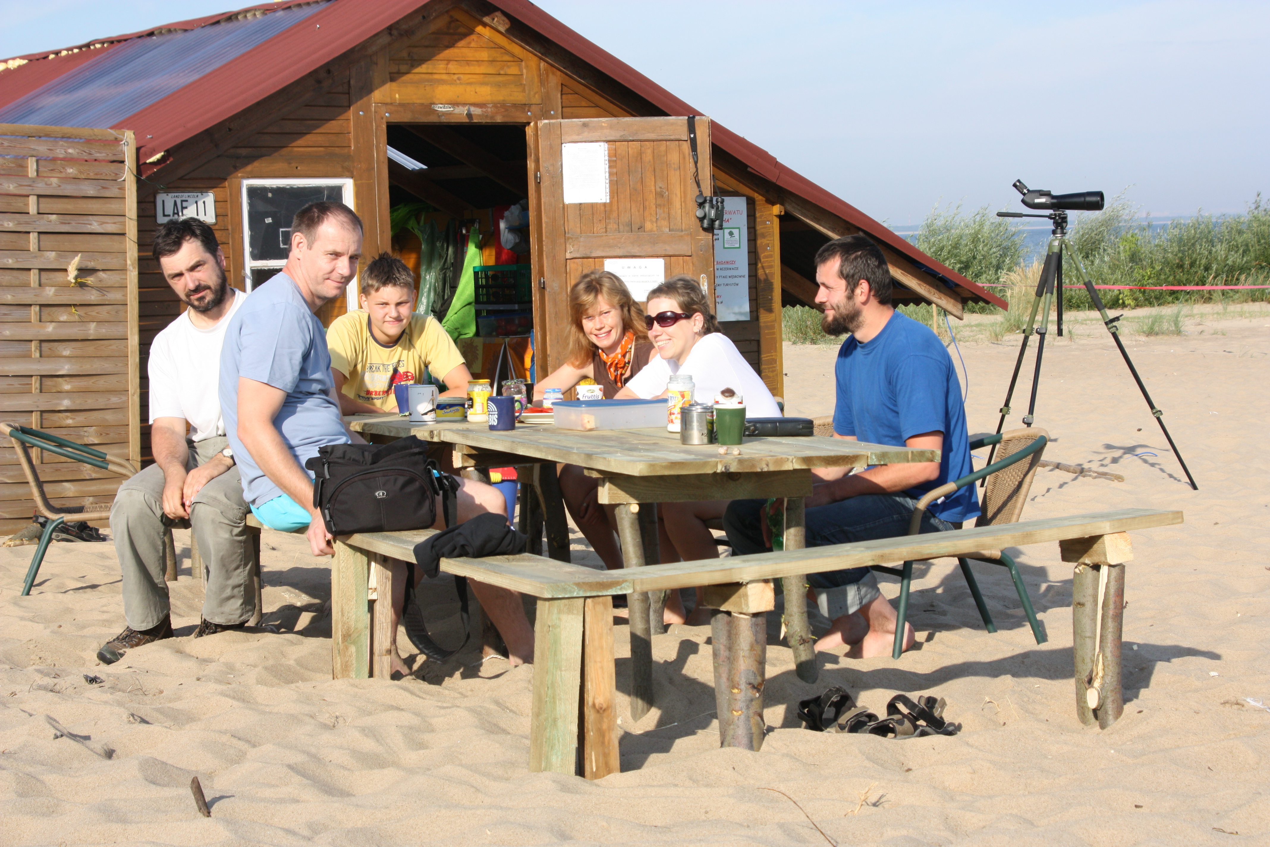 Prace terenowych stacji obrączkowania na całym świecie opierają się na pomocy wolontariuszy i tak też jest w przypadku obu naszych uniwersyteckich zespołów. Przez punkt badawczy w ujściu przekopu Wisły koło Świbna co roku w okresie od lipca do września przewija się w sumie około 60 osób, które na co dzień pracują w kilkuosobowych grupach pod okiem doświadczonych ornitologów i pomagają w zbieraniu danych do różnych projektów naukowych, w tym do prac licencjackich, magisterskich, a także do rozpraw doktorskich i habilitacji. Ptaki chwytane są tutaj w specjalne pułapki zwane tunelowymi, które są sprawdzane co 2 godz. Schwytanym ptakom zakładana jest obrączka metalowa z niepowtarzalnym, indywidualnym numerem, który pozwala zidentyfikować tego osobnika przy kolejnym schwytaniu. W niektórych projektach do obrączki metalowej dokładana jest większa, ale lekka plastikowa obrączka, umożliwiająca identyfikację danego osobnika bez potrzeby jego ponownego schwytania. Przed wypuszczeniem ptaka dokonywanych jest szereg pomiarów biometrycznych, są one też ważone i określane są różne wskaźniki opisujące np. stadium wymiany piór, cechy barwne upierzenia, czy też wielkość zgromadzonych zapasów tłuszczowych.