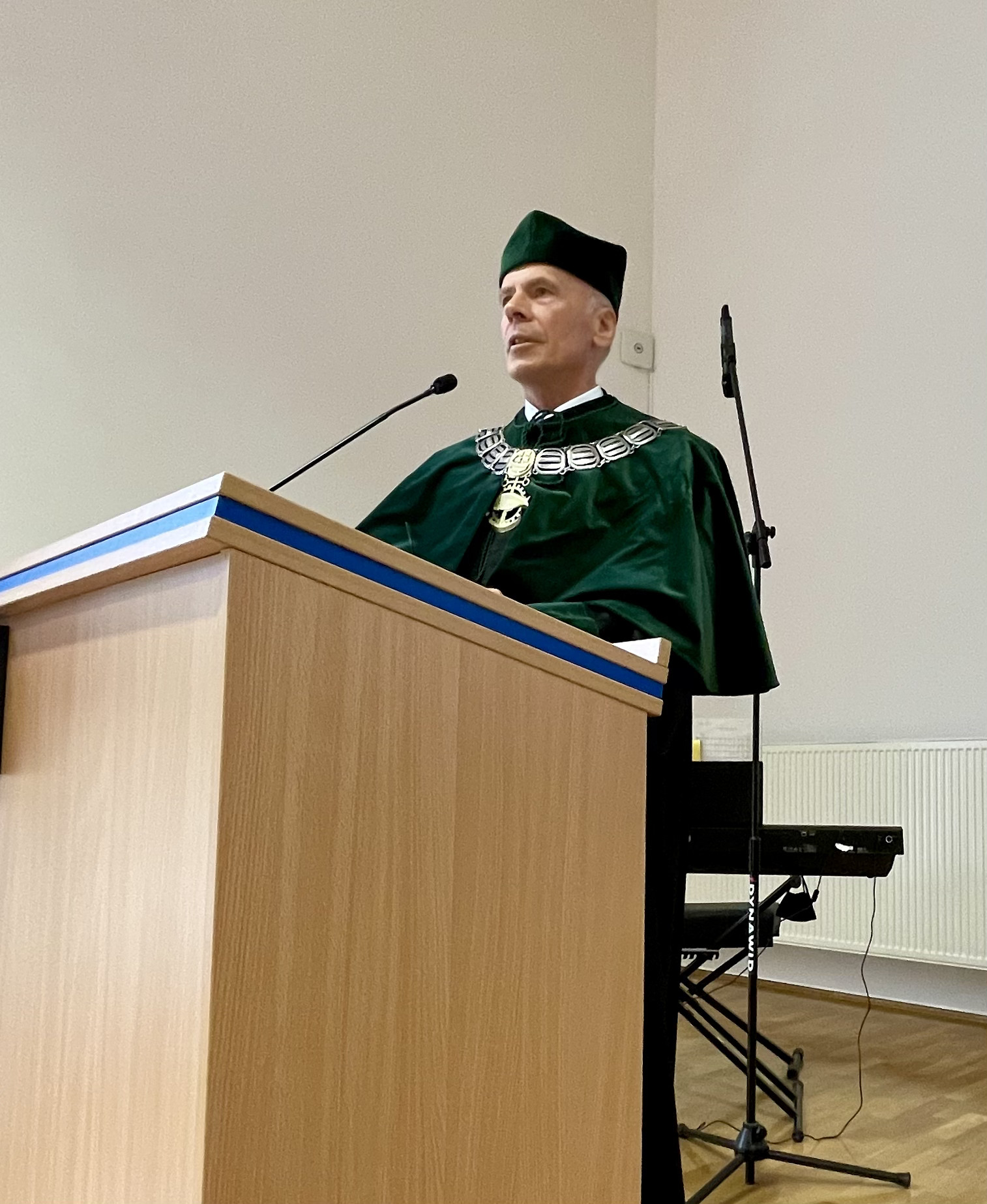 Immatrykulację studentów I roku poprowadził Prodziekan ds. Jakości Kształcenia i Studiów Stacjonarnych dr hab. Krzysztof Najman, profesor uczelni.