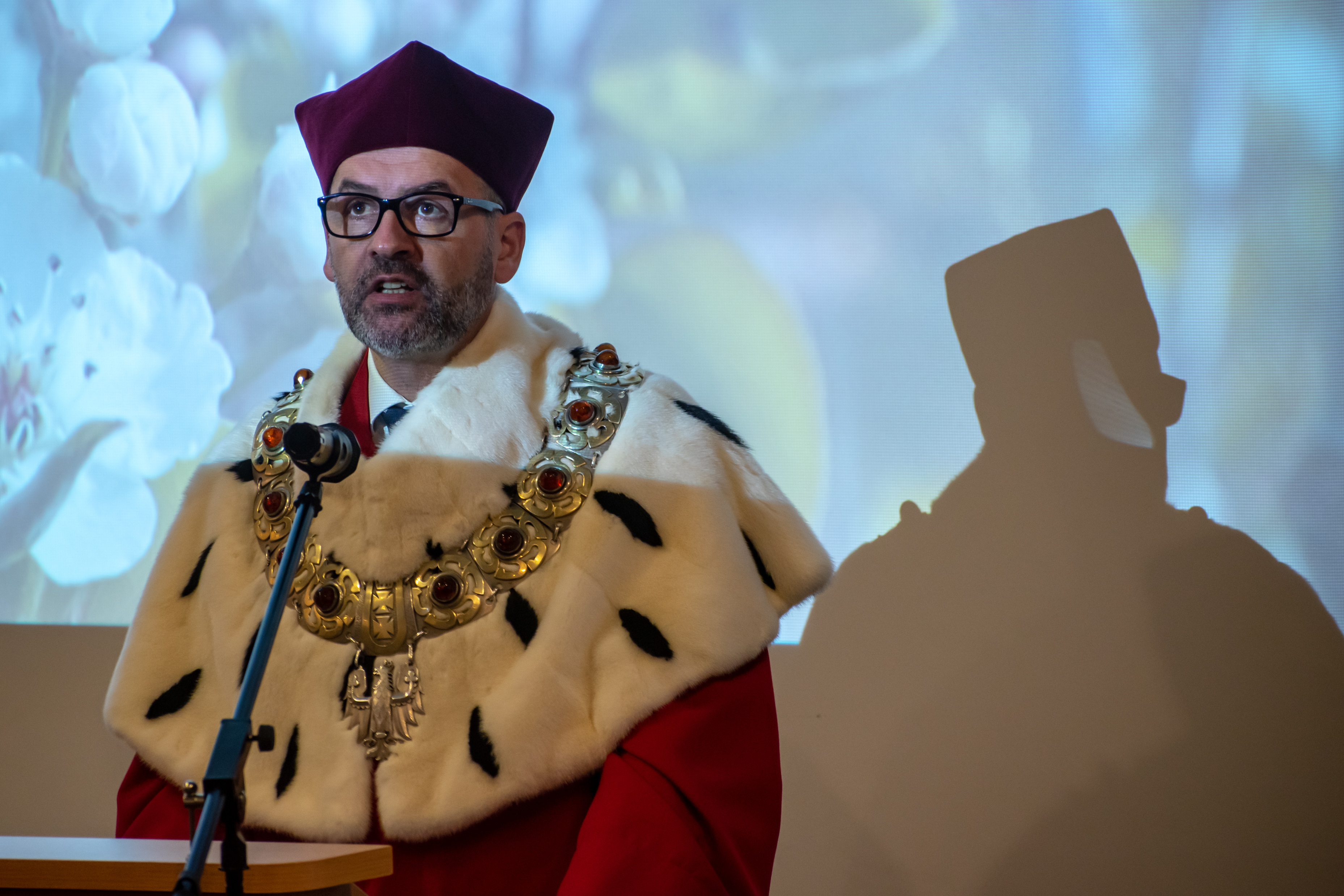 Po przemówieniu Dziekana głos zabrał Rektor UG, prof. dr hab. Piotr Stepnowski. W swoim wystąpieniu odniósł się do perspektywy całej Uczelni podkreślając jej dynamiczny rozwój i wskazując na wyzwania i cele do osiągnięcia w ciągu najbliższych latach. Studentom, doktorantom i pracownikom Wydziału Biologii Rektor UG życzył m.in. pomyślności w badaniach naukowych oraz dalszych sukcesów dydaktycznych.