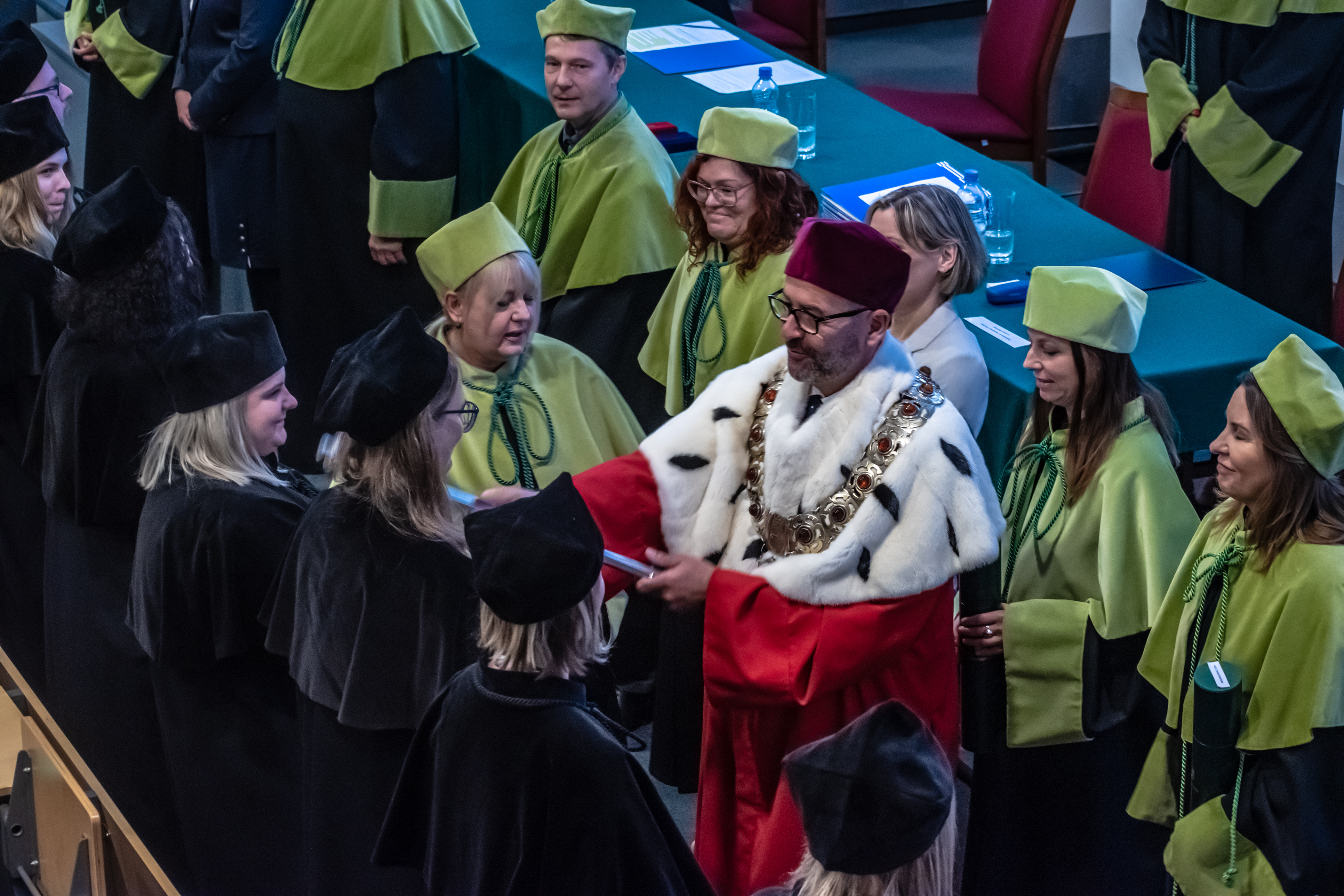 - Nie żegnamy się, a witamy Państwa po drugiej stronie, gdzie czeka wiele nowych możliwości i wyzwań. Płyńcie po morzach i oceanach nauki, bo wg słów Żeromskiego, nauka jest jak niezmierne morze. Nie obawiajcie się przy tym wypływać na wody nieznane i głębokie i nie dajcie się zatrzymać - powiedziała do doktorantów dr hab. Joanna Izdebska, prof. UG.